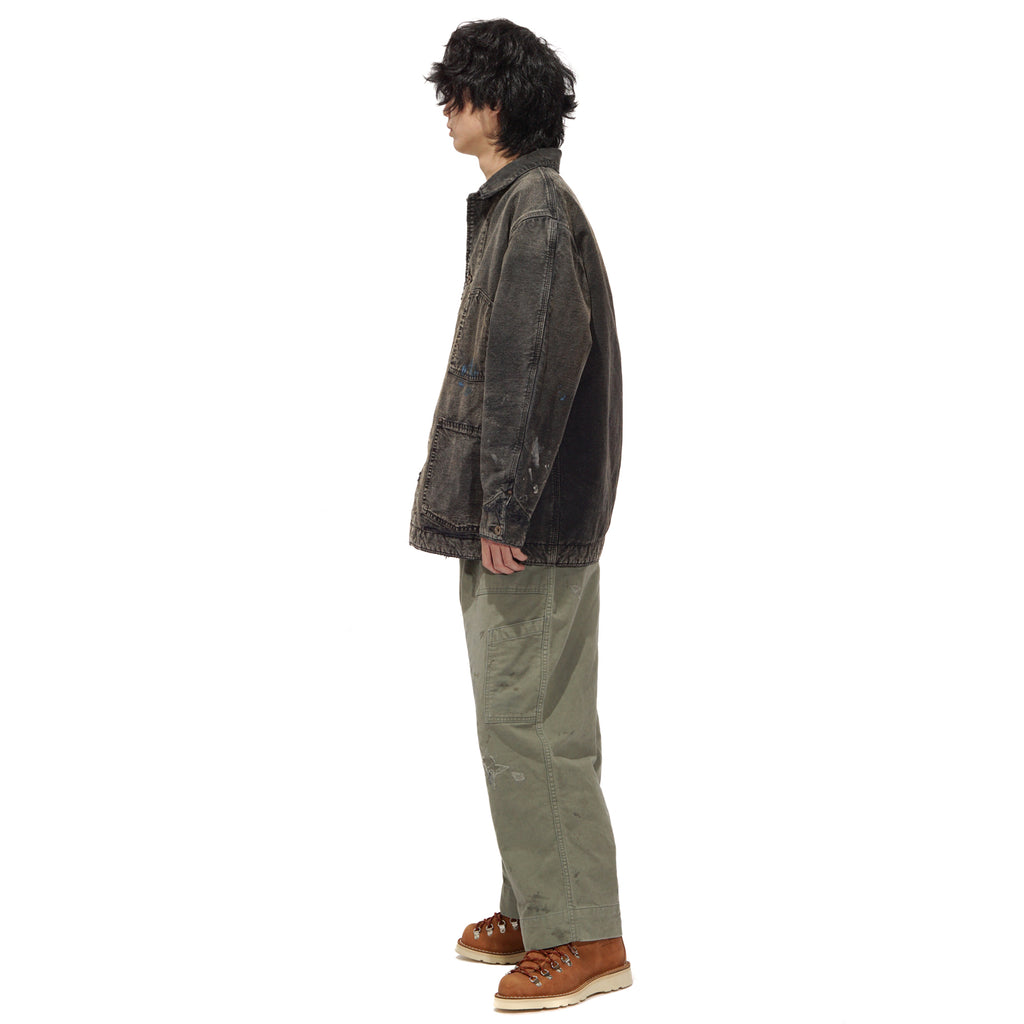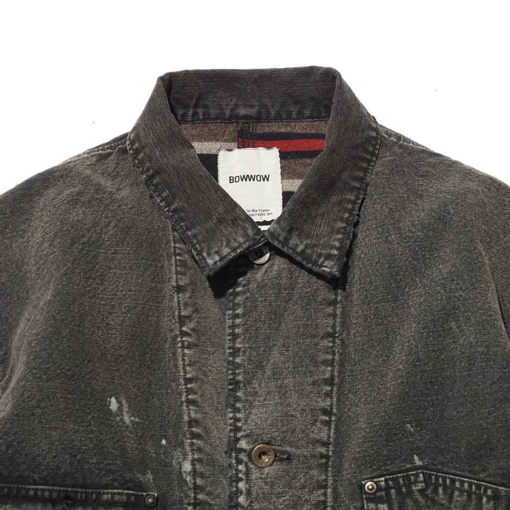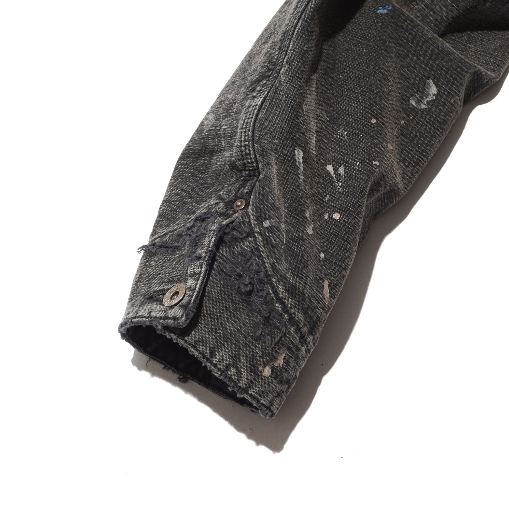 This piece channels that atmosphere—reviving the essence of refined workwear for the modern day. The body is constructed from heavy-ounce duck fabric, paired with a warm blanket lining. The garment is treated to faithfully reproduce the paint splatters, scuffs, and distinctive wear accumulated through daily labor.