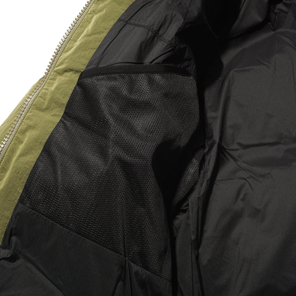 - Constructed from solution-dyed ripple nylon, giving the shell a subtle textured surface with deeper colour saturation and improved colourfastness compared to traditional dyeing. It’s insulated with high-loft Cleandown and lined with lightweight Pertex Quantum for warmth without bulk, while a water-repellent finish adds everyday weather protection. Design details carry over Goldwin’s ski DNA — including the signature Spur Line paneling — balanced with practical elements like a two-way Vislon front zip, seam-integrated hand pockets, and adjustable cuffs/hem, resulting in a technical yet refined cold-weather outerwear piece that holds up for lifestyle and city use.