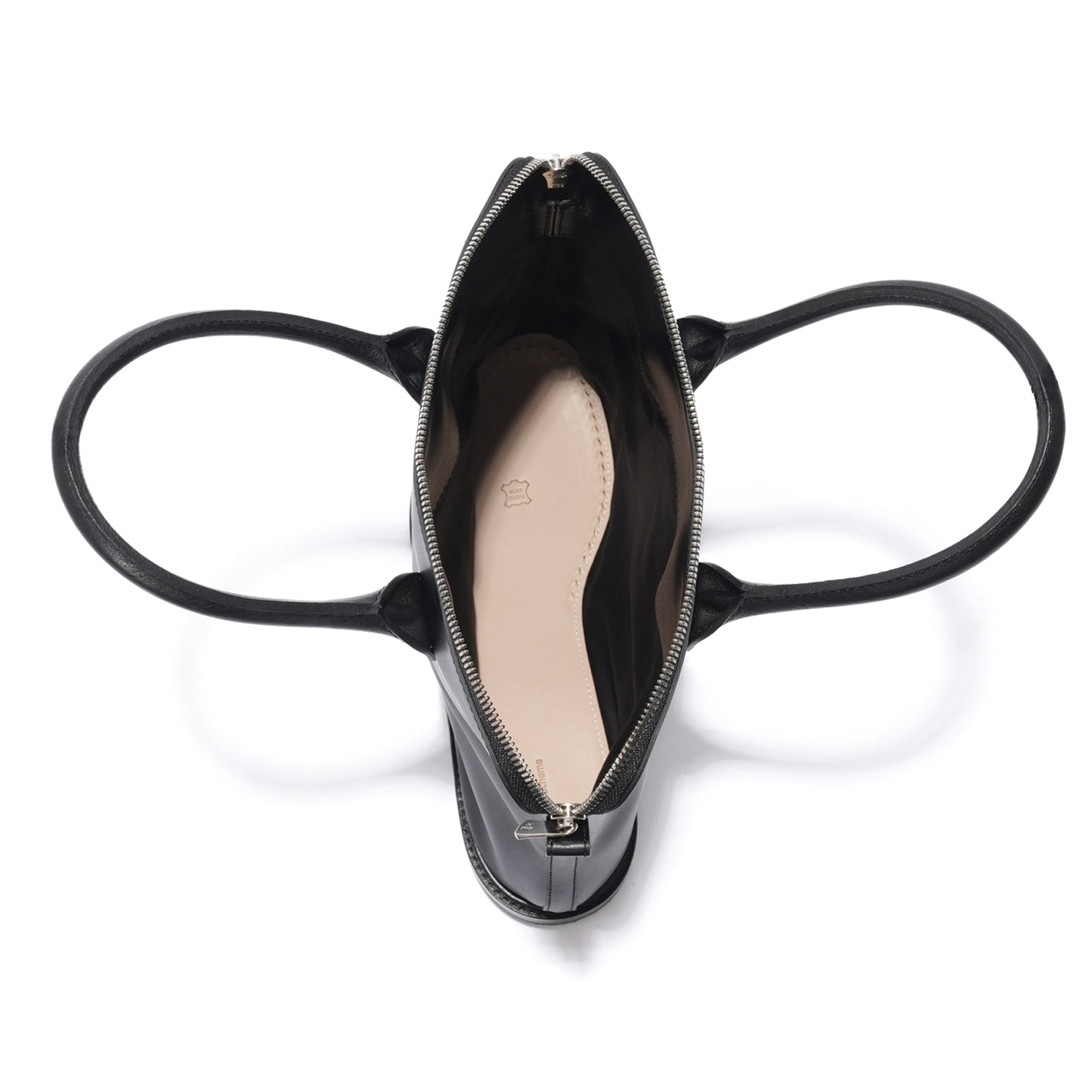 - An intriguing design that brings to mind the Air Jordan 3 bag from 20 years ago, but executed with a more sophisticated and elegant approach. The concept uses the shoe sole as the base of the bag, highlighting Hender Scheme’s signature DNA of leather, shoes, and bags. It features a Riri zipper closure and a silver-embossed logo inside. When opened, the bottom reveals the leather sole of the shoe.