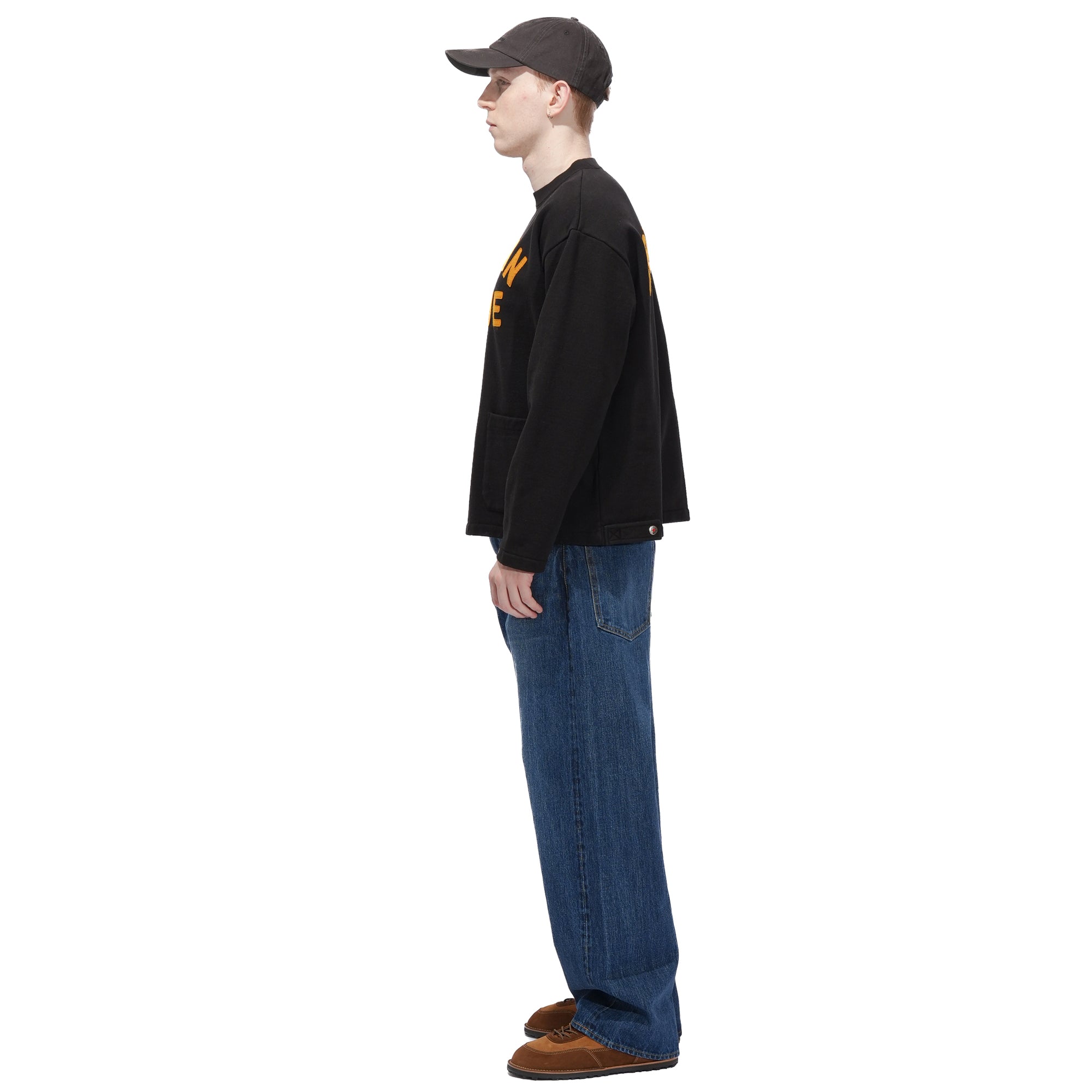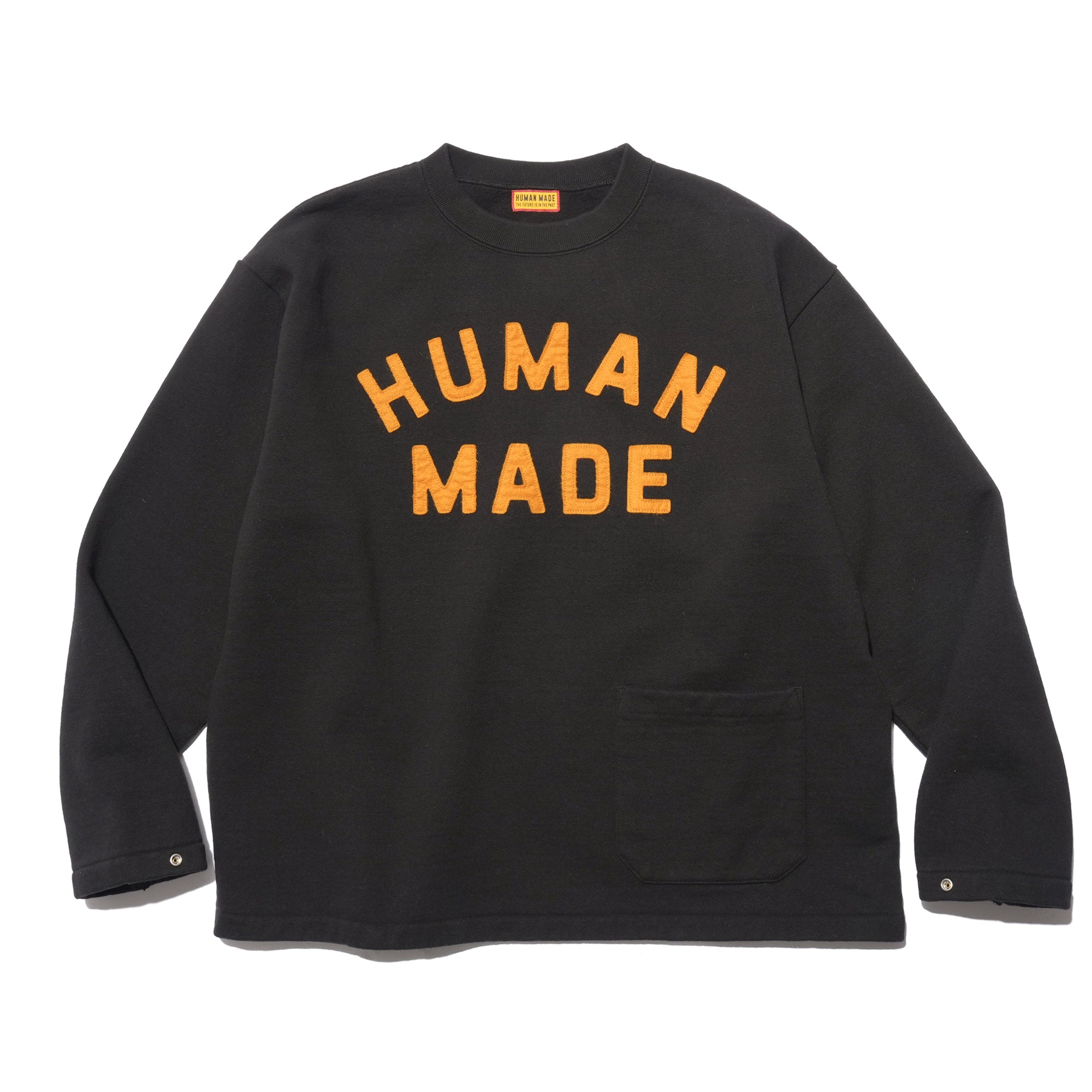 - A warm, fleece-lined sweatshirt crafted from soft, comfortable cotton for everyday ease. Designed with a relaxed silhouette and a cropped fit, it features snap buttons on the cuffs and adjustable hem tabs to customize the shape. Felt graphic patches on the front and back add tactile detail, as well as a front patch pocket.