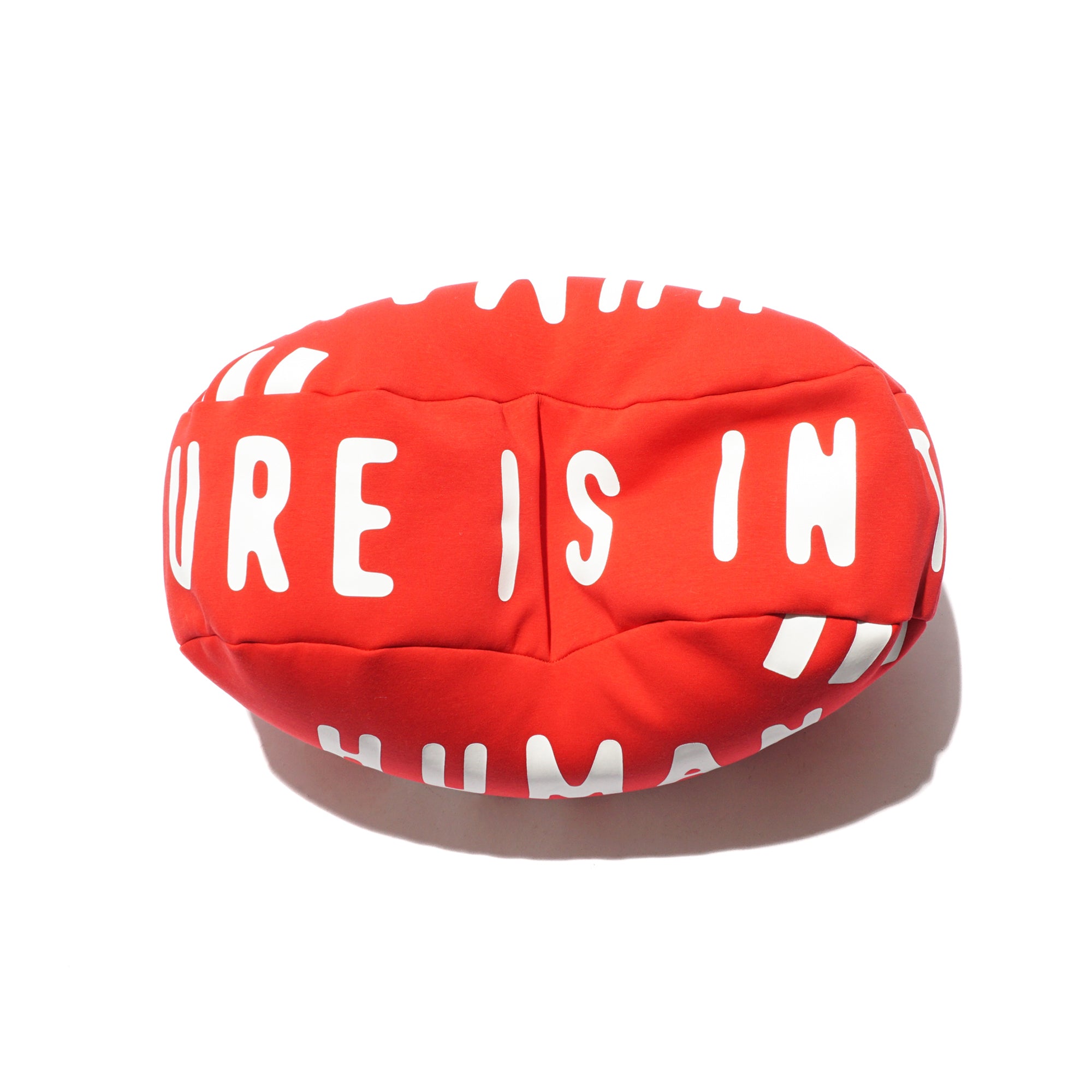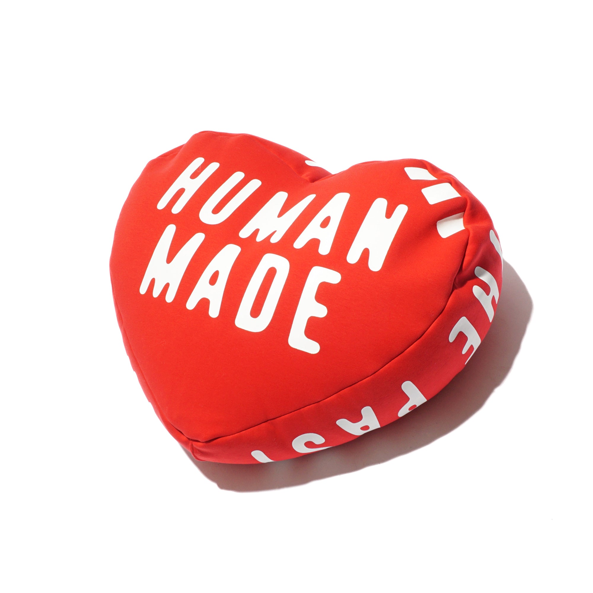 - A heart-shaped bead cushion featuring the Human Made logo on both sides, accented with the “The Future Is In The Past” slogan on one side, designed as a soft, comfortable, and playful home accessory.