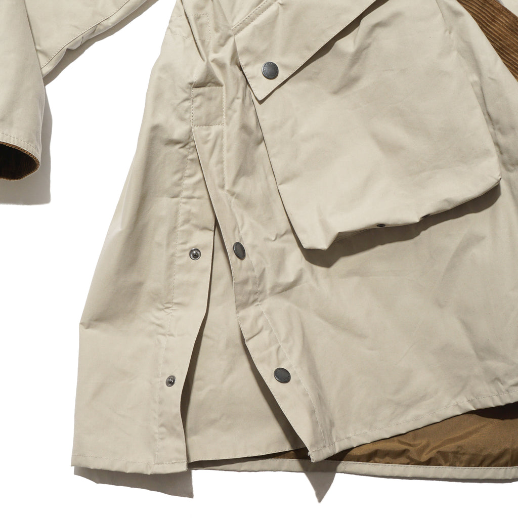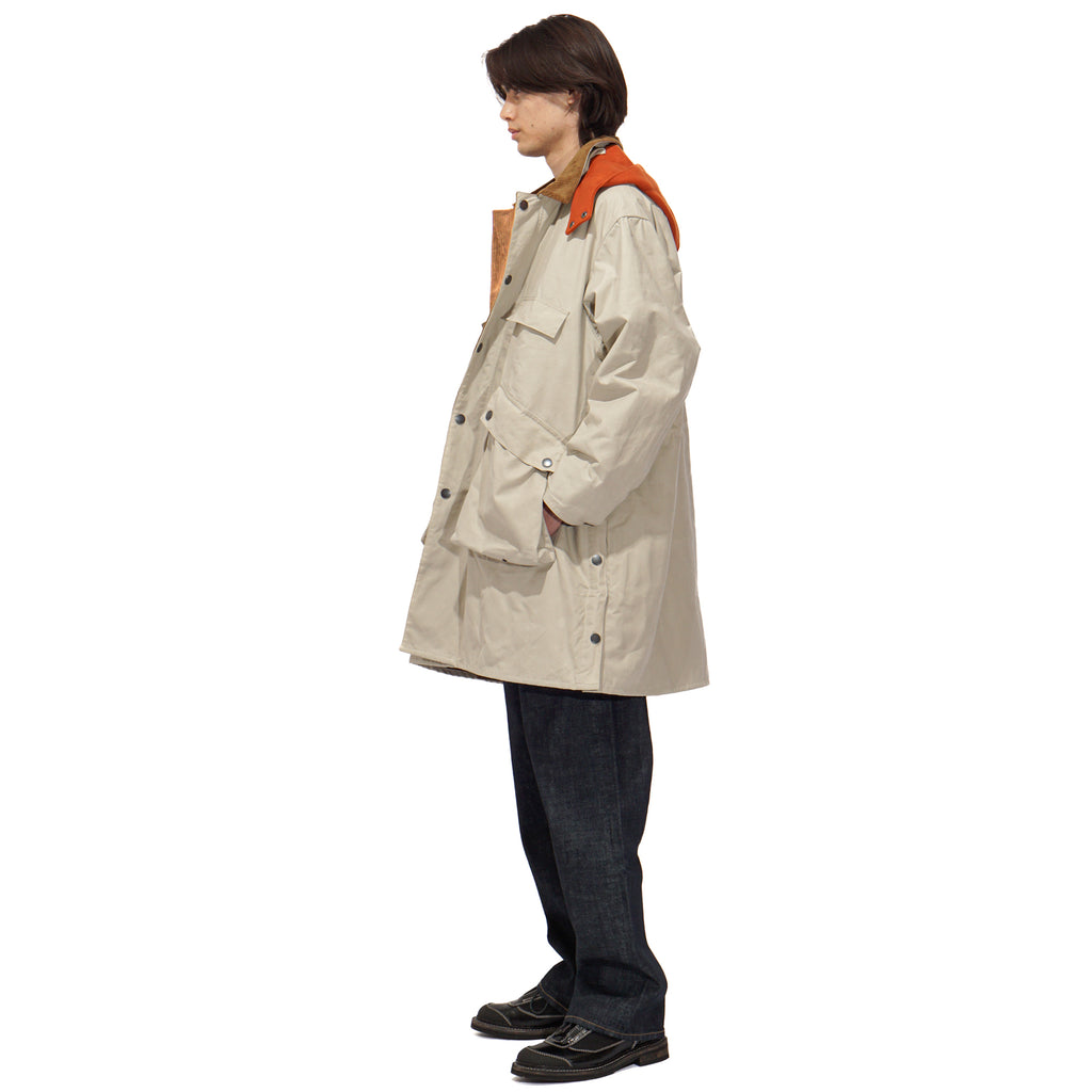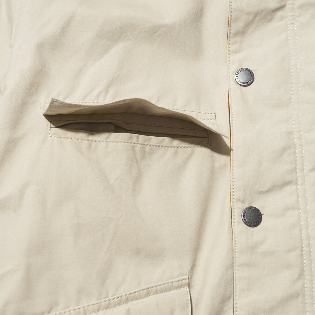 - This cruiser jacket is made from dry waxed cotton, offering the durability of traditional waxed fabric without the typical stickiness, making it easier to wear and maintain. A standout detail is the contrasting melton hood, which sets off the body with a distinctive color. Designed with a relaxed fit, it also comes with a detachable hood for added versatility.