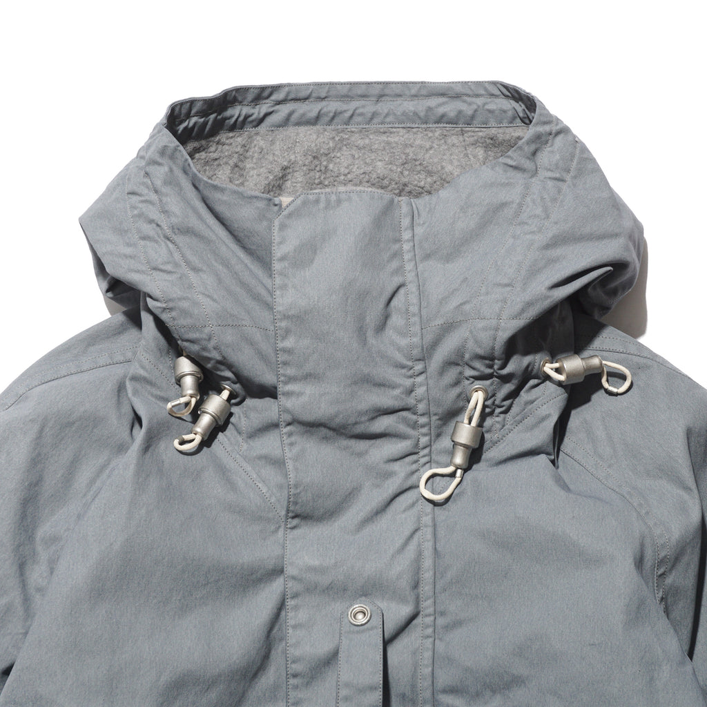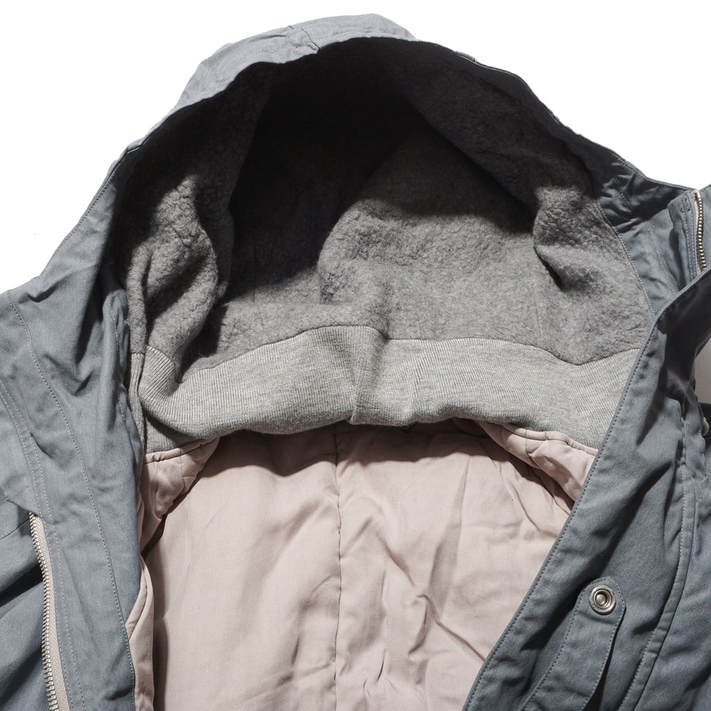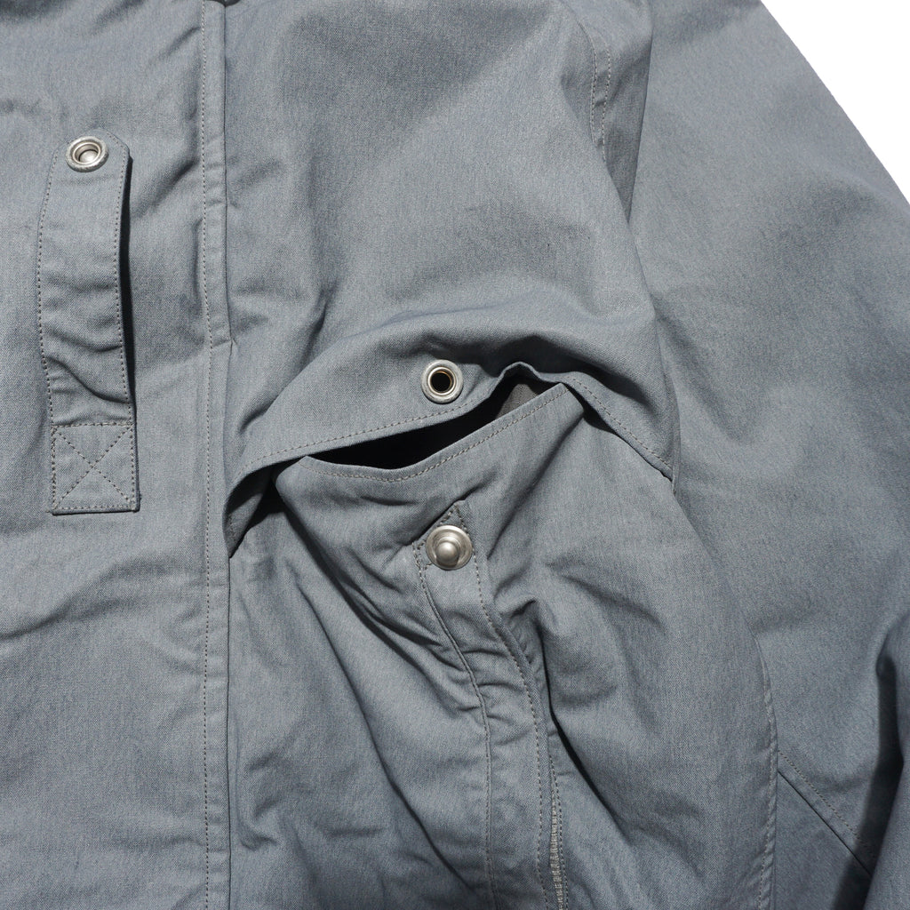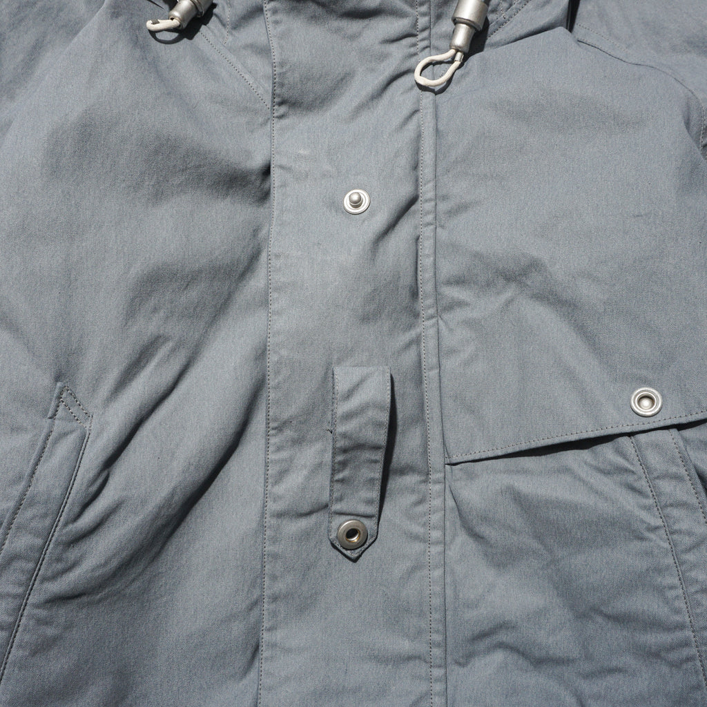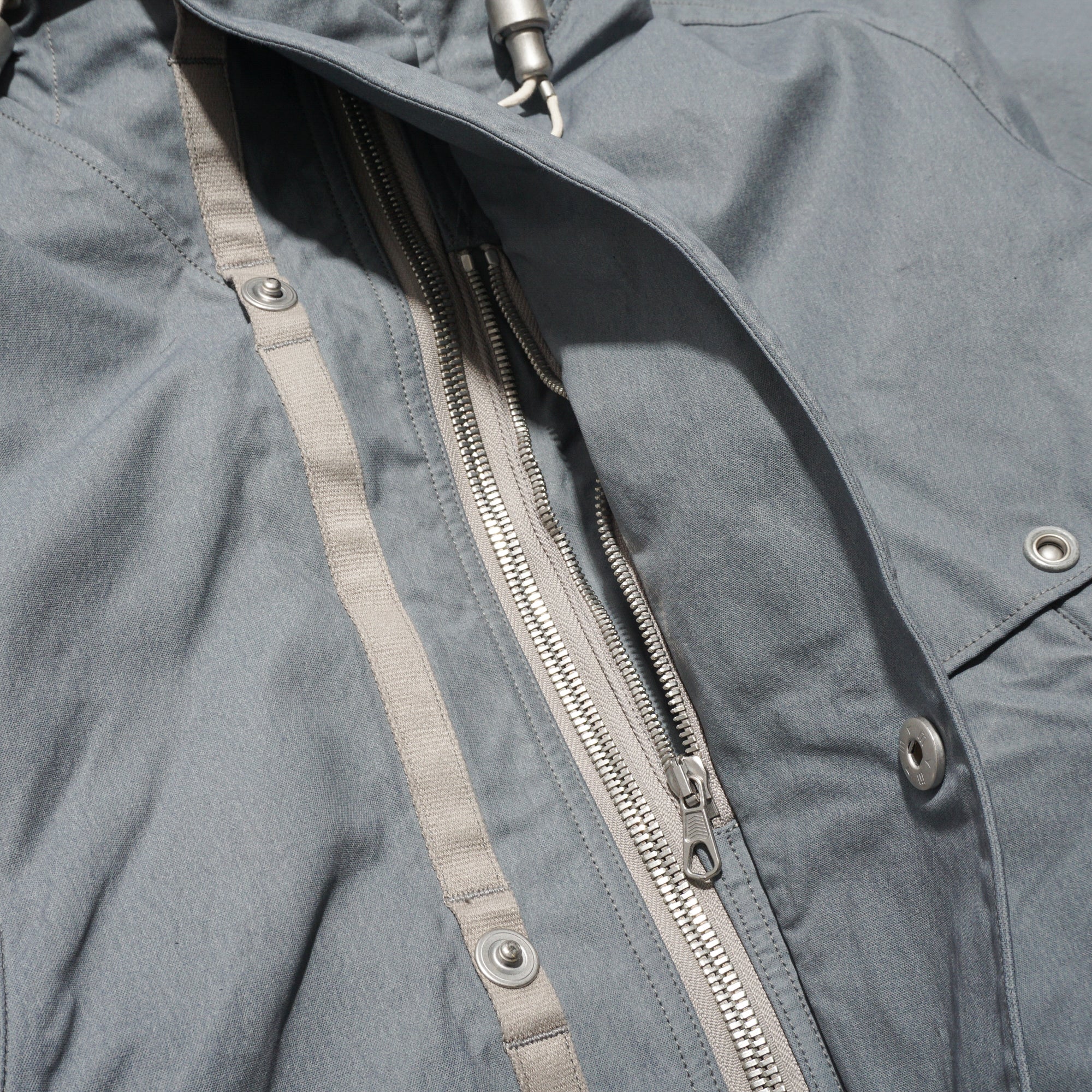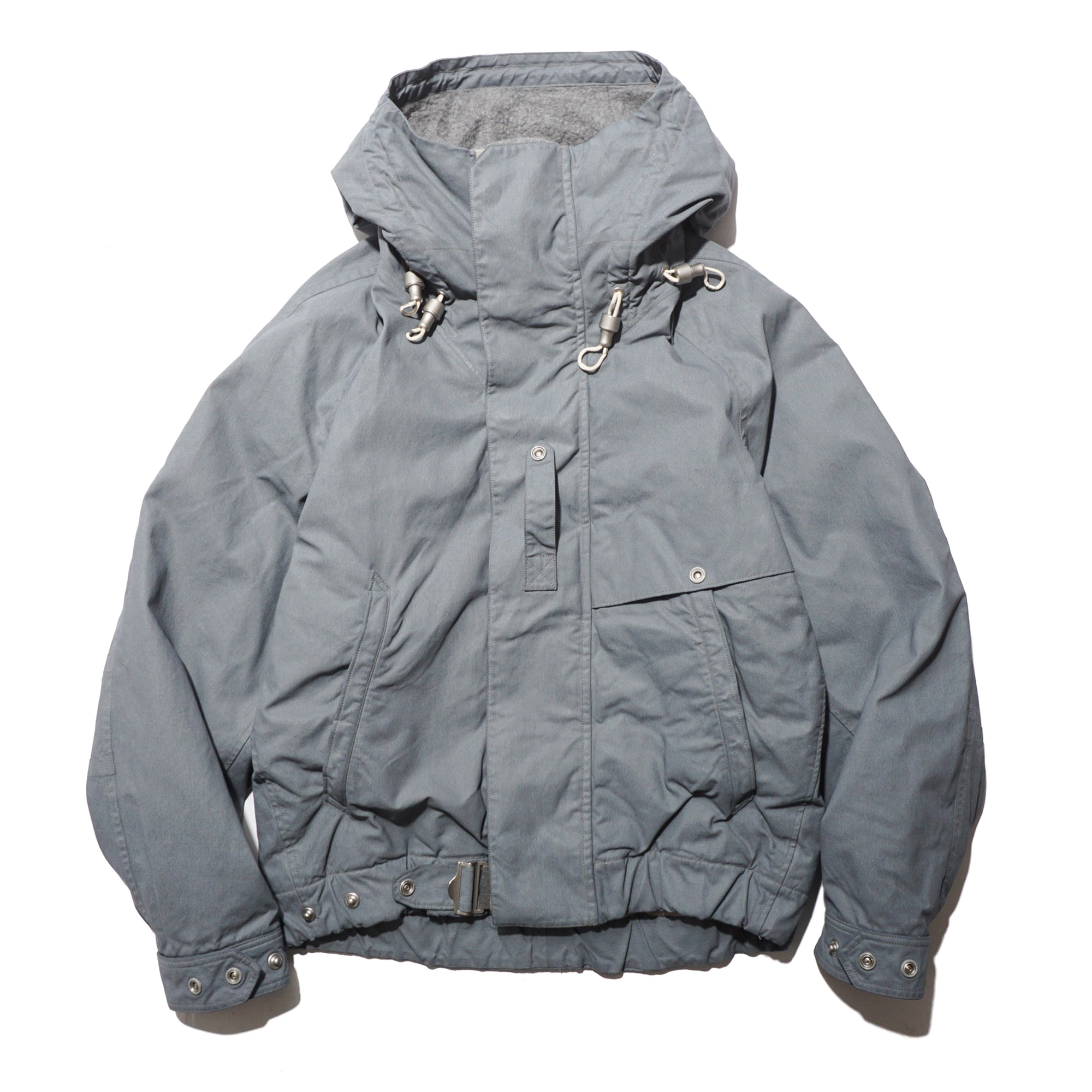 Crafted from Halley Stevensons’ military-finish waxed cotton, this jacket uses 100% cotton fabric treated with the British mill’s latest coating technique. After a simple wash, the fabric develops a vintage patina reminiscent of mid-century garments, while retaining the water-repellent qualities of traditional waxed cotton. For this season, Halley Stevensons created a new high-contrast coating exclusively for us, enhancing the worn-in, mottled effect. Inspired by Soviet tanker jackets, the cropped silhouette features an adjustable drawstring hood with Canadian military-style rope fasteners, ergonomically cut raglan sleeves, a map pocket with an additional quick-access hidden pocket on the left front, and ribbed hand-warmer pockets designed to block wind.