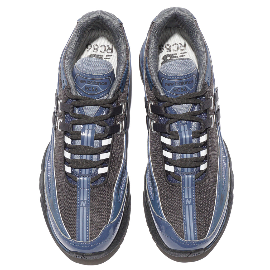 - Inspired by New Balance archival cross-country running shoes from the early 2000s, the RC56 features bold overlays, dynamic print lines, and a distinctive low-profile tooling design unique to the brand. These elements reference the speed-driven aesthetics of early-2000s performance models, reinterpreted through a contemporary lens.