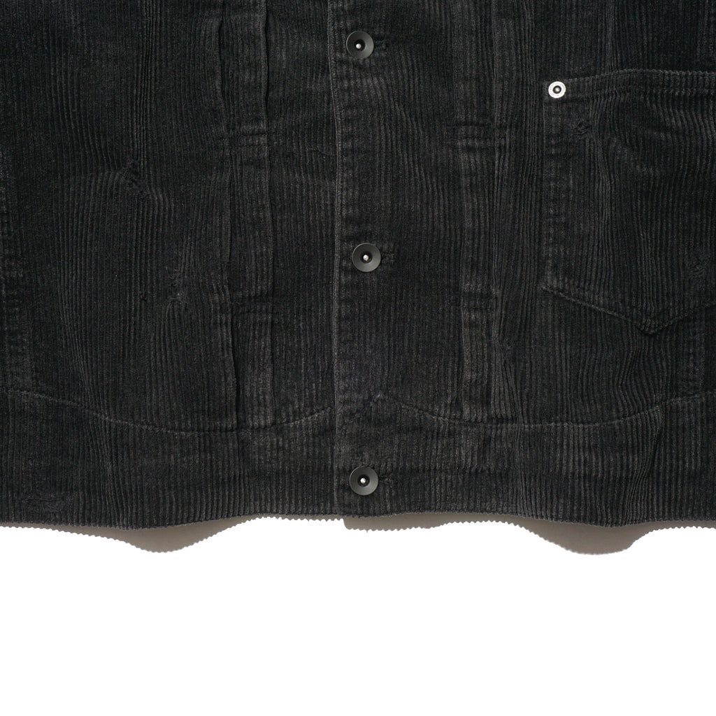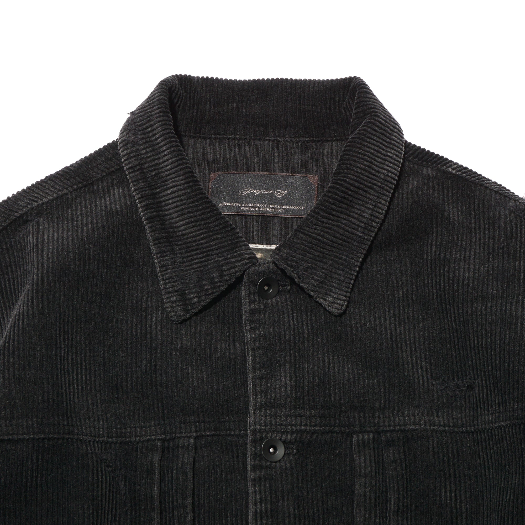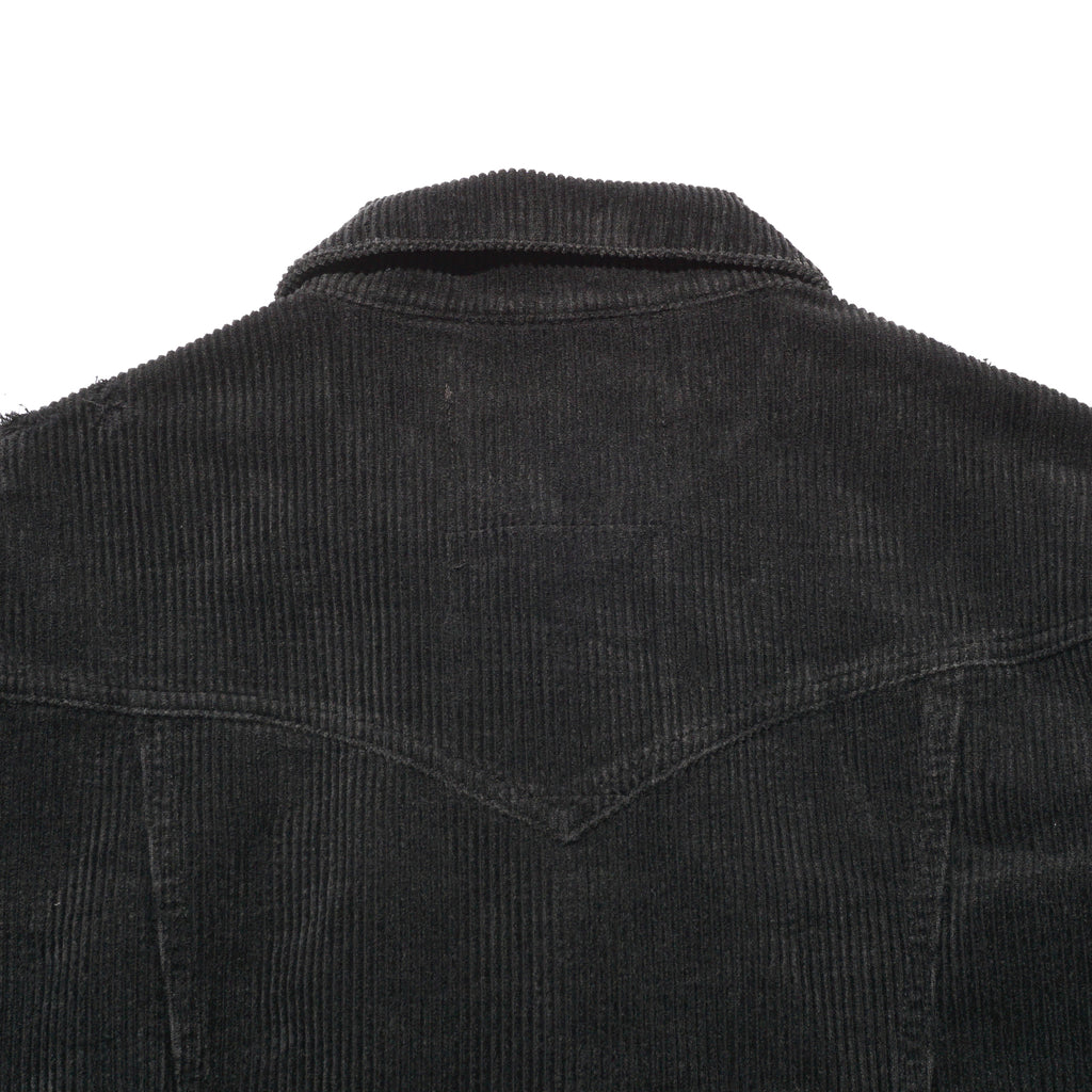 A Type I trucker crafted from cotton corduroy, featuring an updated pointy Western-style back shoulder panel—a signature of Professor.E’s aesthetic. Includes a two-way buckle with custom engraved details and a relaxed fit