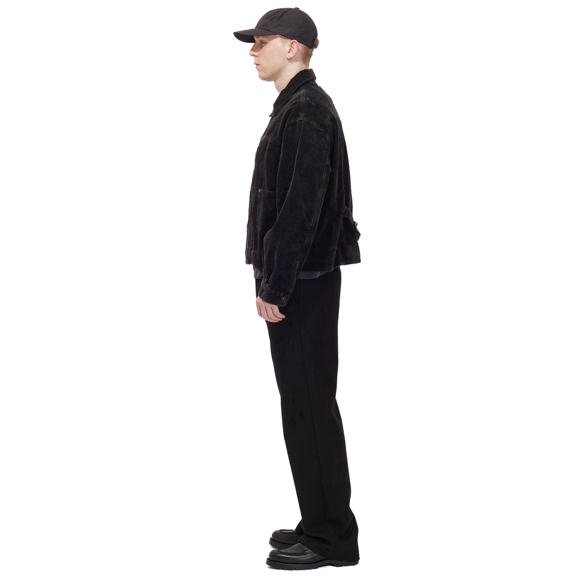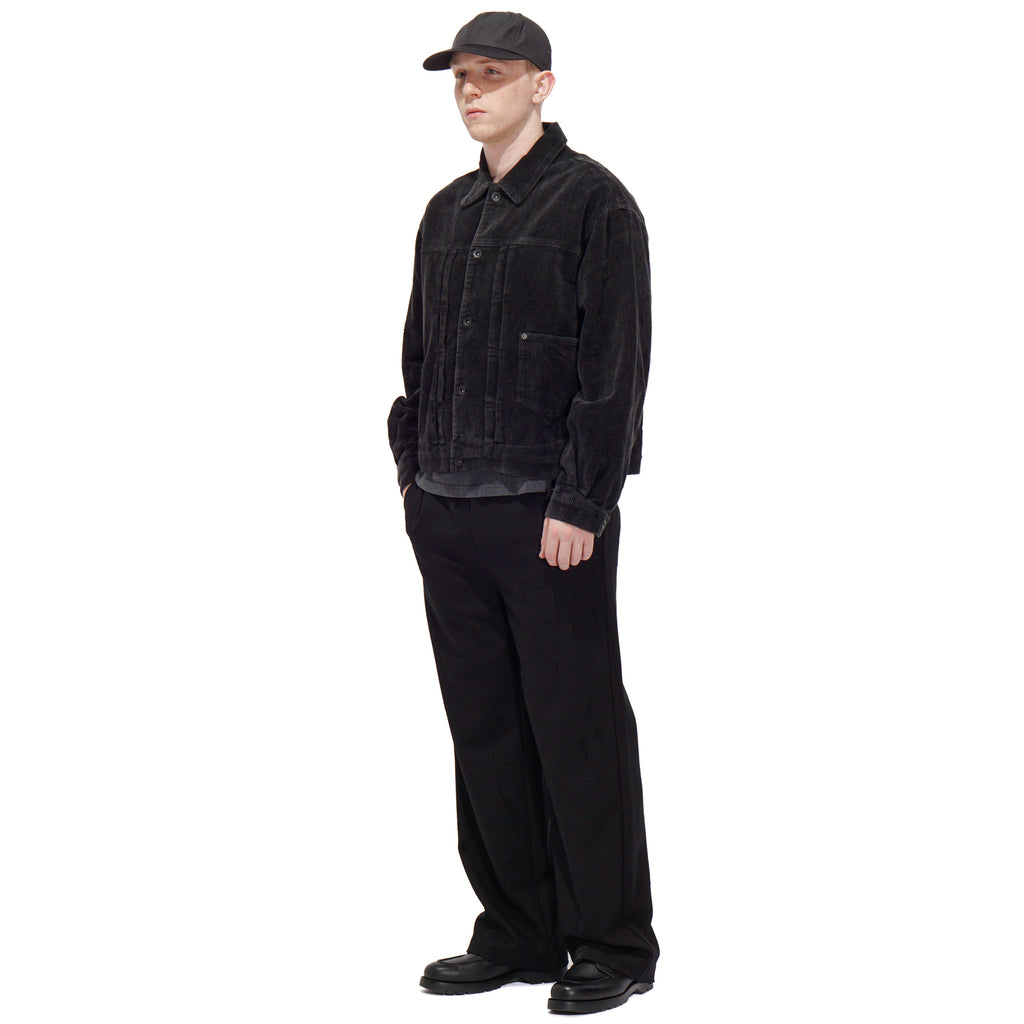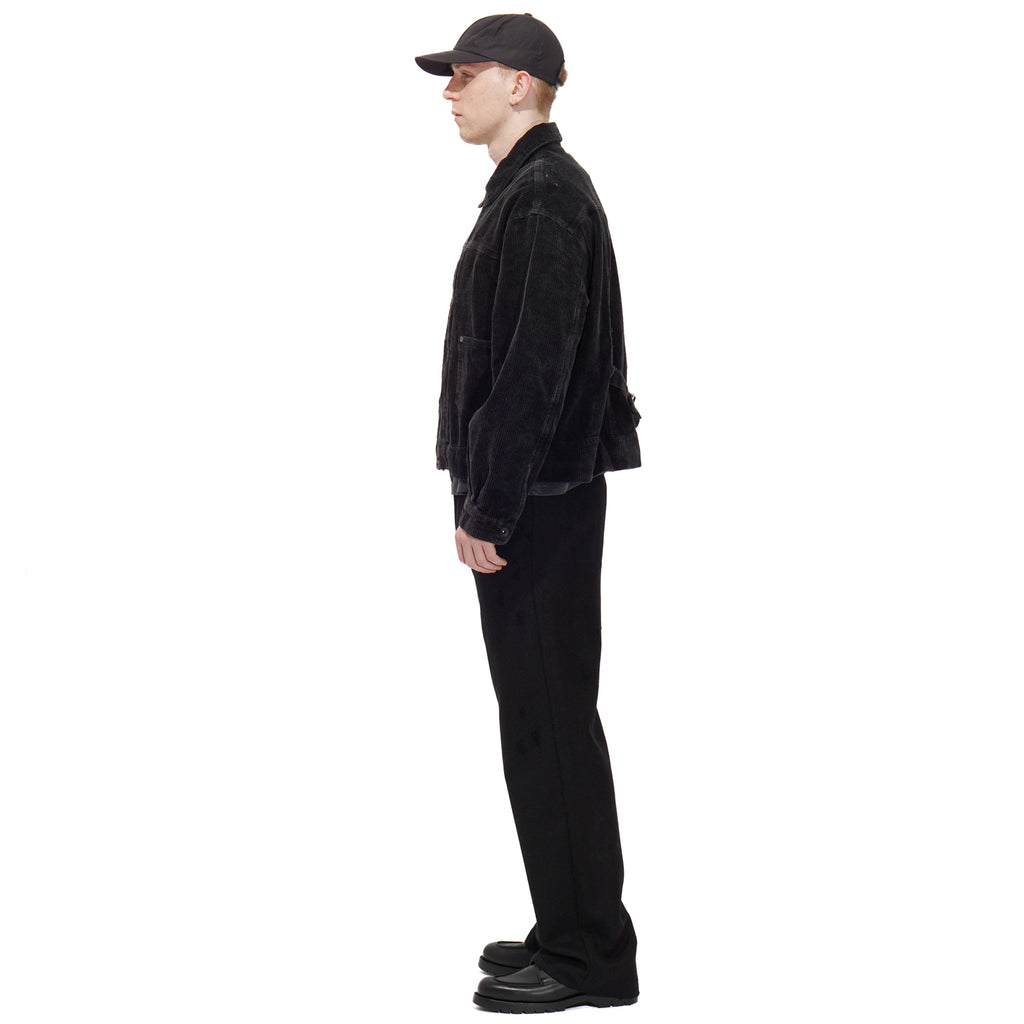 A Type I trucker crafted from cotton corduroy, featuring an updated pointy Western-style back shoulder panel—a signature of Professor.E’s aesthetic. Includes a two-way buckle with custom engraved details and a relaxed fit