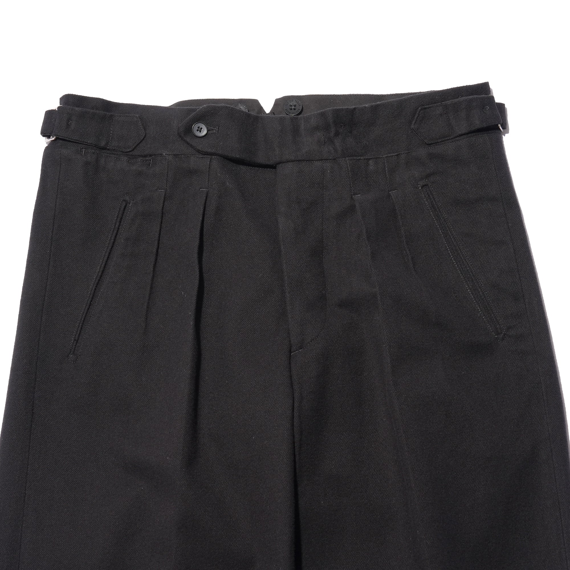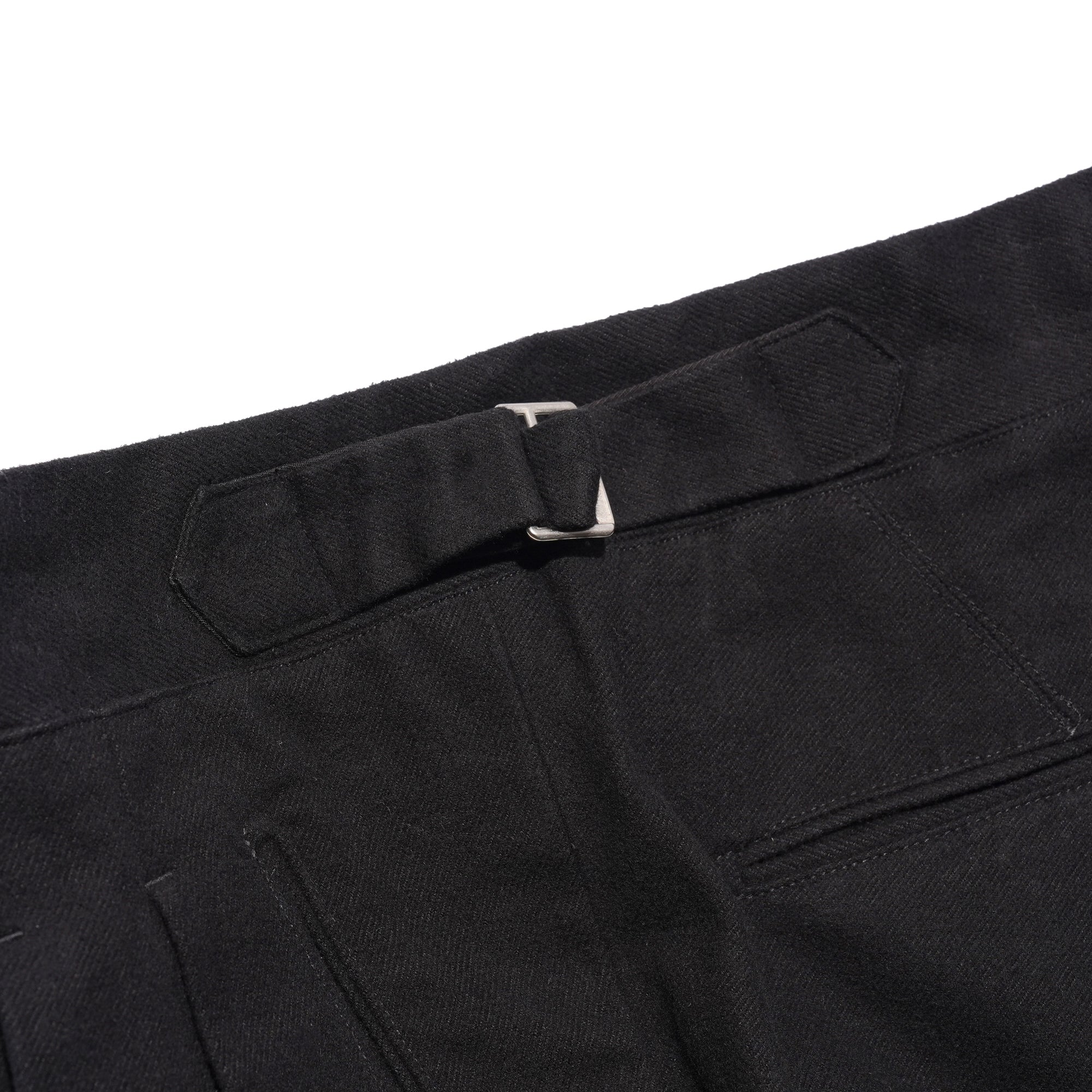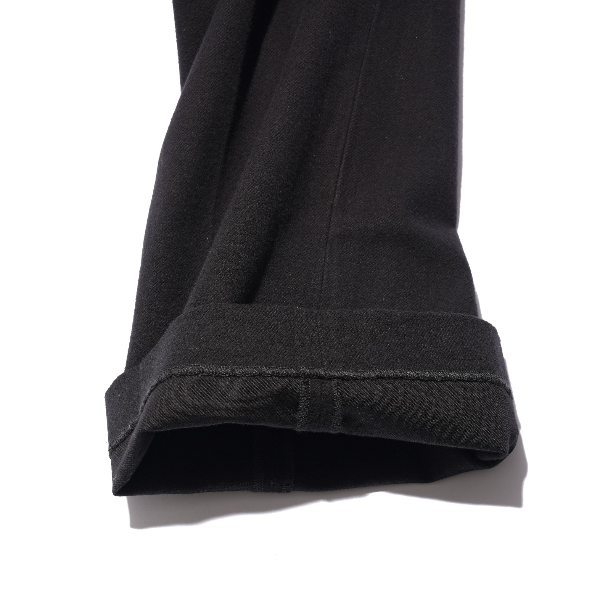 - Inspired by tailored trousers from the 1930s, this design is reimagined with refined, timeless detailing. A minimalist beltless waistband, hand-finished coin pocket, D-shaped bartack, and high-rise double-pleated construction form a modern straight-leg silhouette with a quietly distinctive presence. Crafted from a dense cotton flannel with a long, suede-like brushed nap, the fabric offers deep warmth and rich texture.
