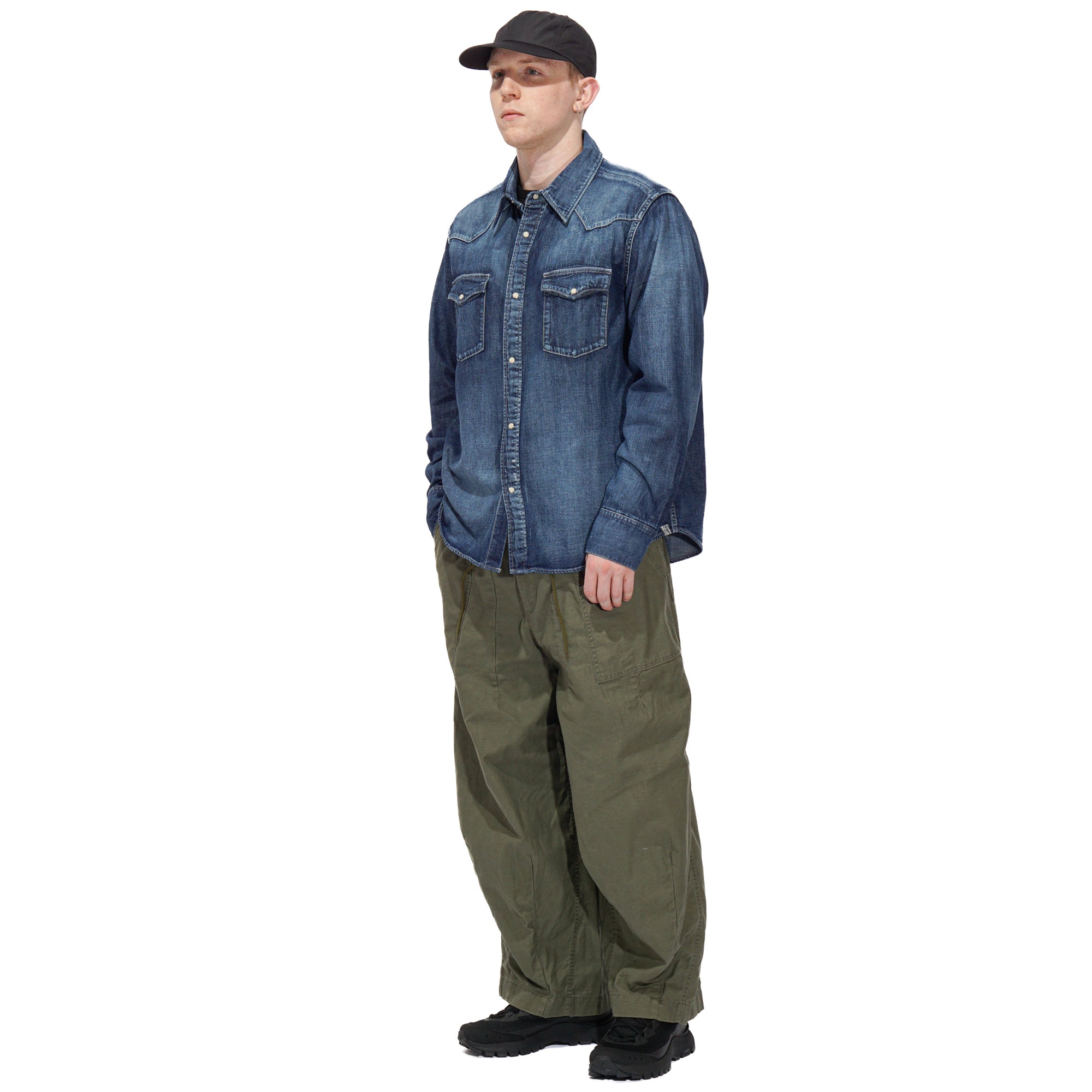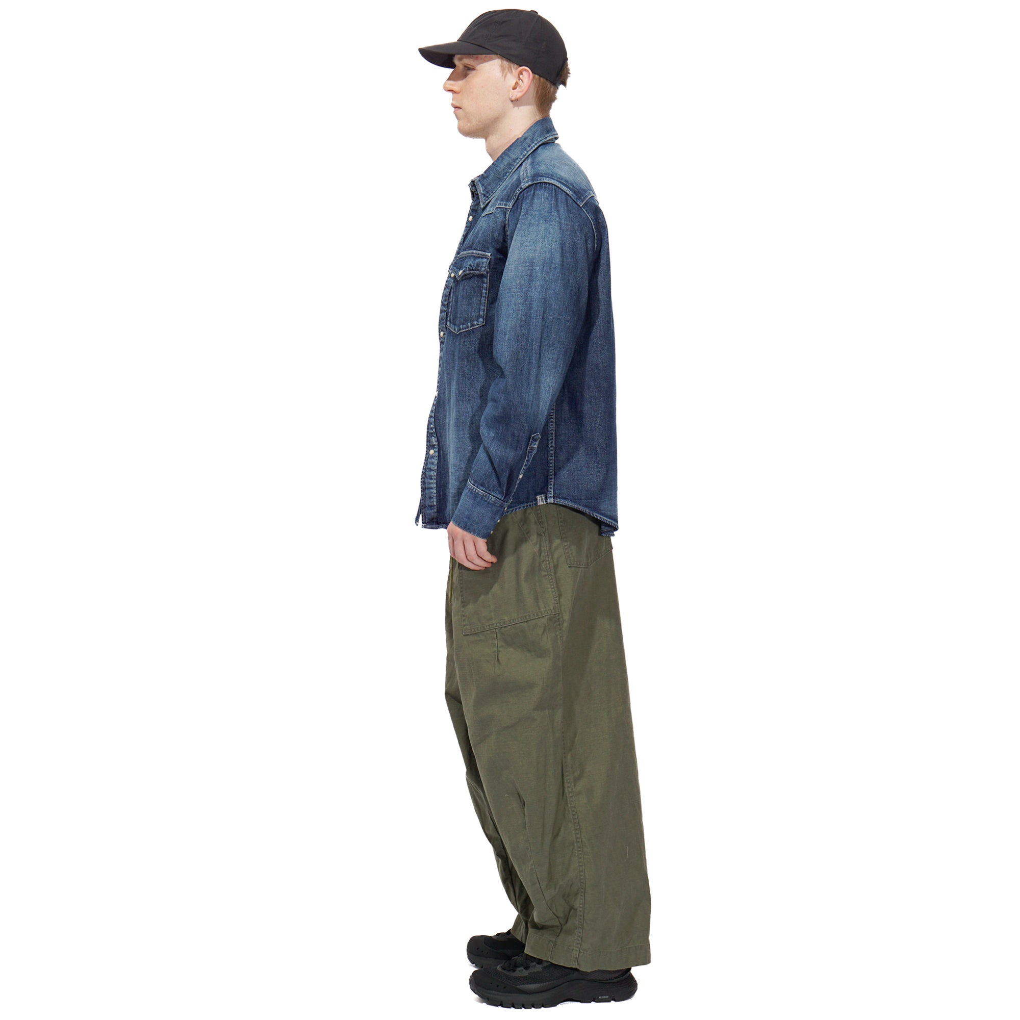 - A staple style from Needles, the H.D. Fatigue Pant are an oversized military inspired pant produced in a durable cotton fabric. The pants feature darts at the waist and hem creating a high volume, exaggerated silhouette. Two patch hand pockets, and two buttoned back pockets provide storage, and buttoned sized tabs and a drawstring at the waist allow for an adjustable fit. The bold, wide leg silhouette make the H.D. Fatigue Pants a unique addition to any collection.