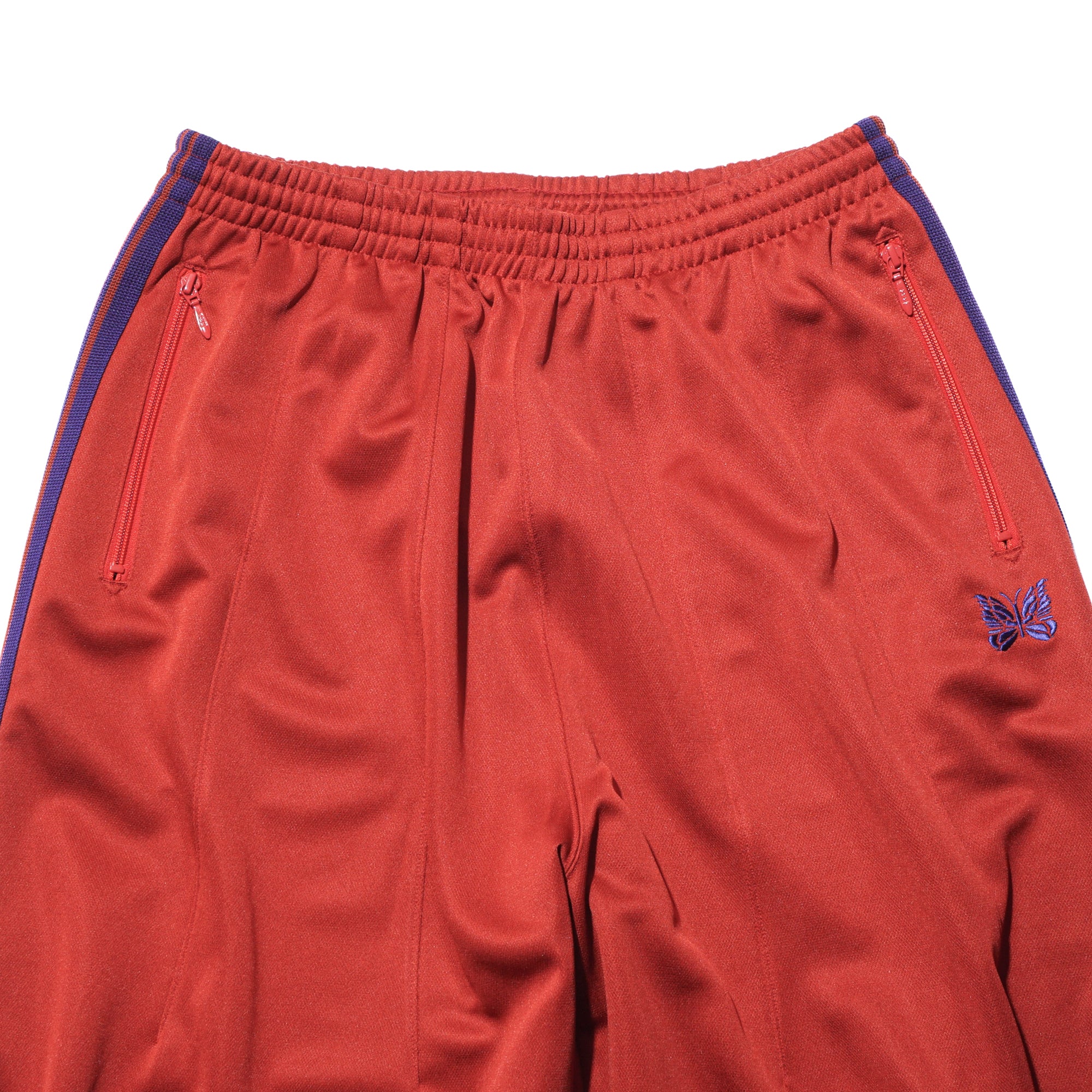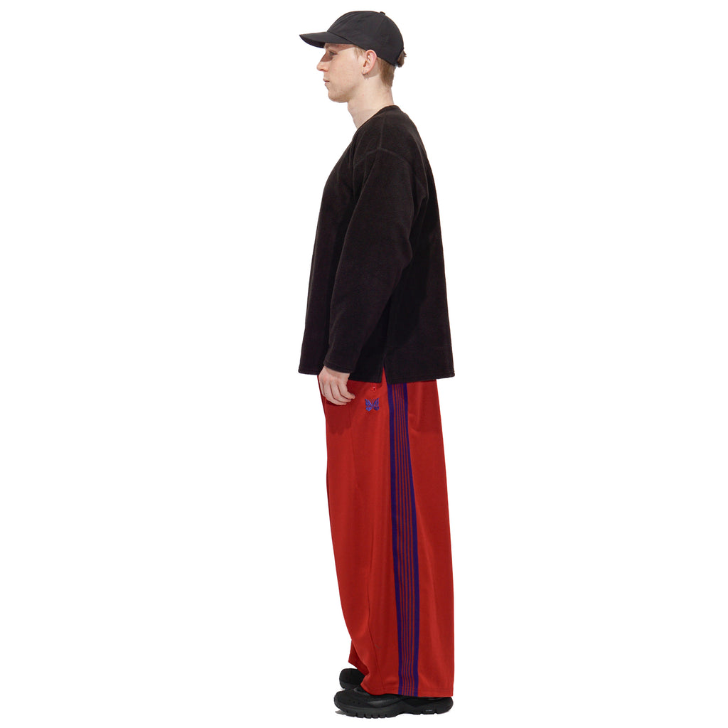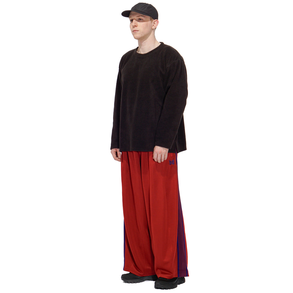 - A fusion of two iconic Needles pants, this highly comfortable item is crafted from polyester jersey material known for its high stretchability and breathability. Featuring exaggerated volume with side strip and embroidery design.