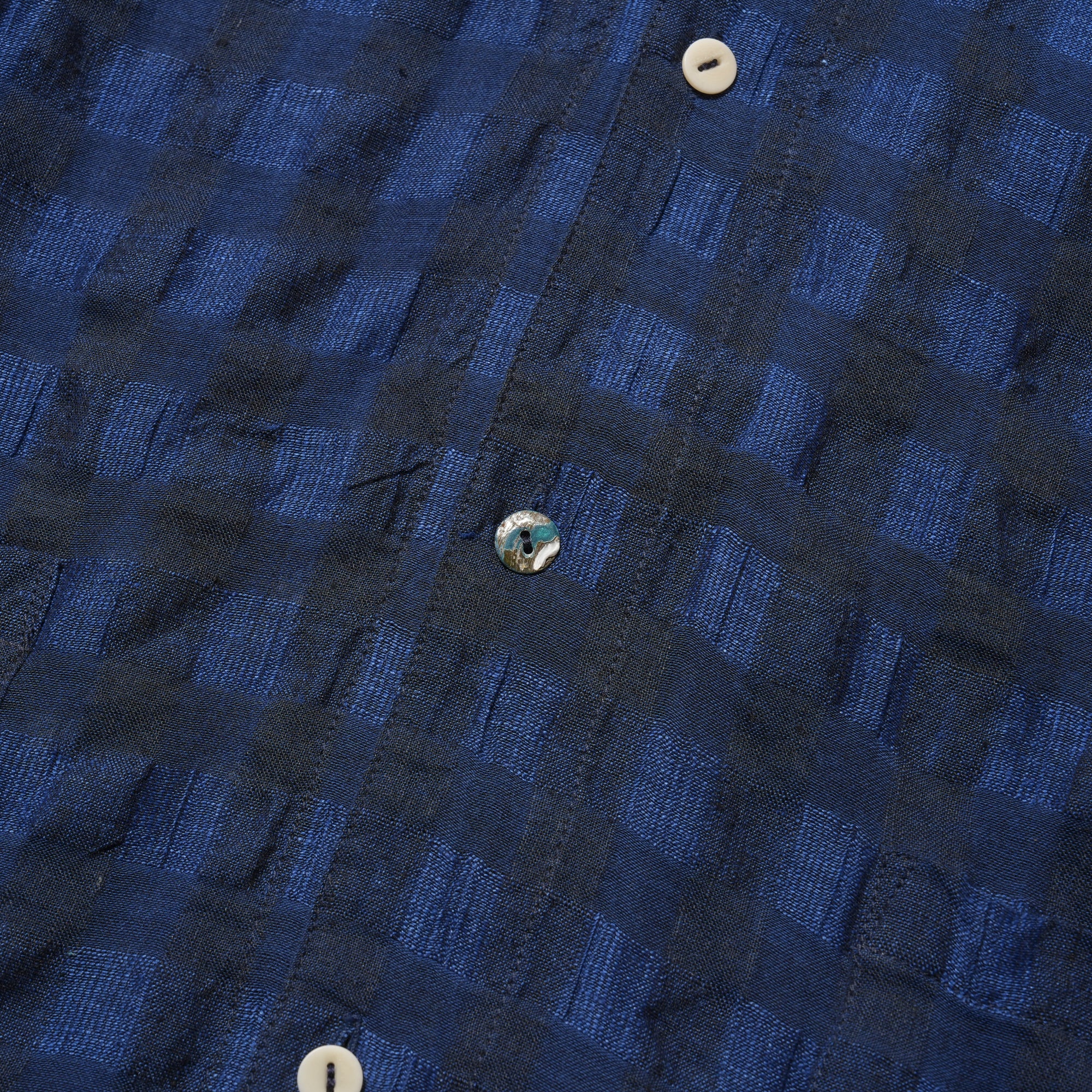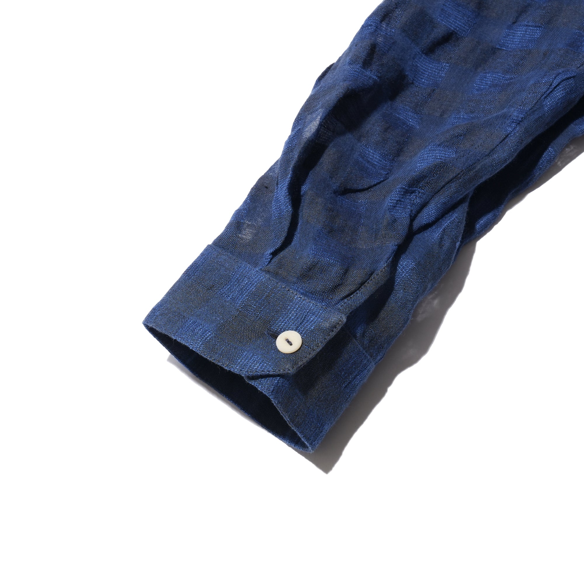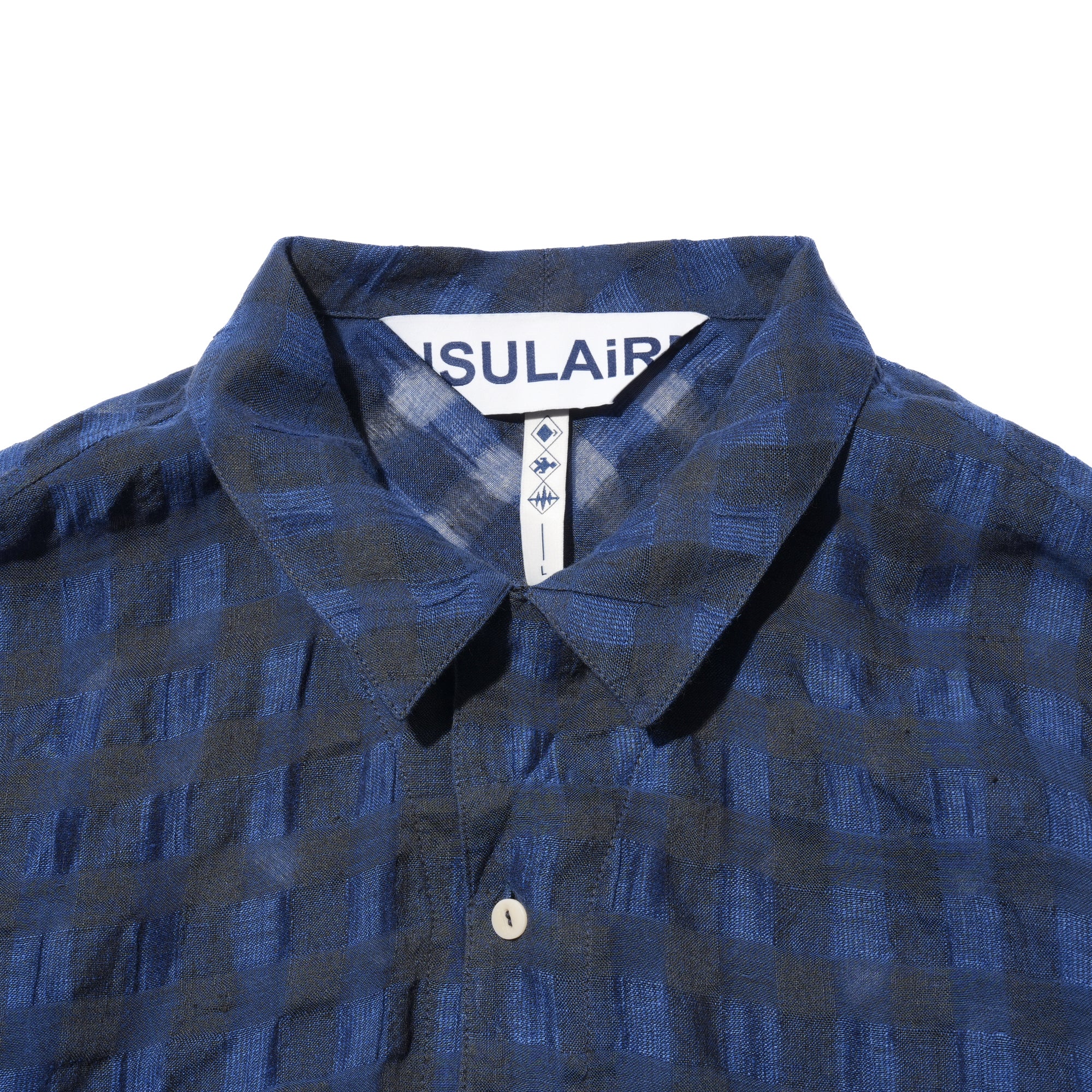 - Crafted from INSULAiRE's exclusive custom-developed linen-cotton woven fabric, this shirt combines the natural breathability, textured slub, and lightweight qualities of linen with the softness and durability of cotton. The result is a fabric that feels cool and comfortable while maintaining subtle structure and a relaxed, flowy look. Hollow structure, created by the combination of varying thicknesses of warp and weft yarns. After washing, the warp and weft shrink differently, producing natural wrinkles. The design is finished with a single shell button for a refined touch.