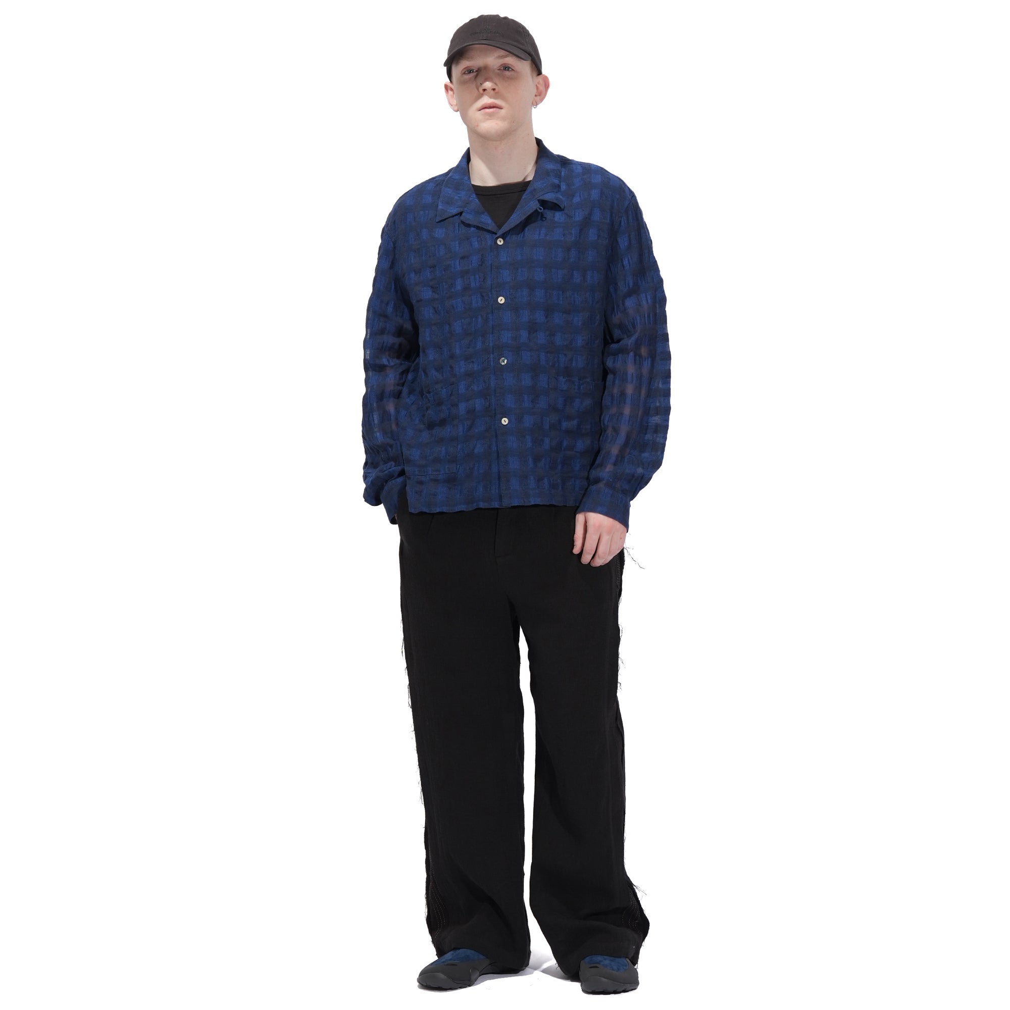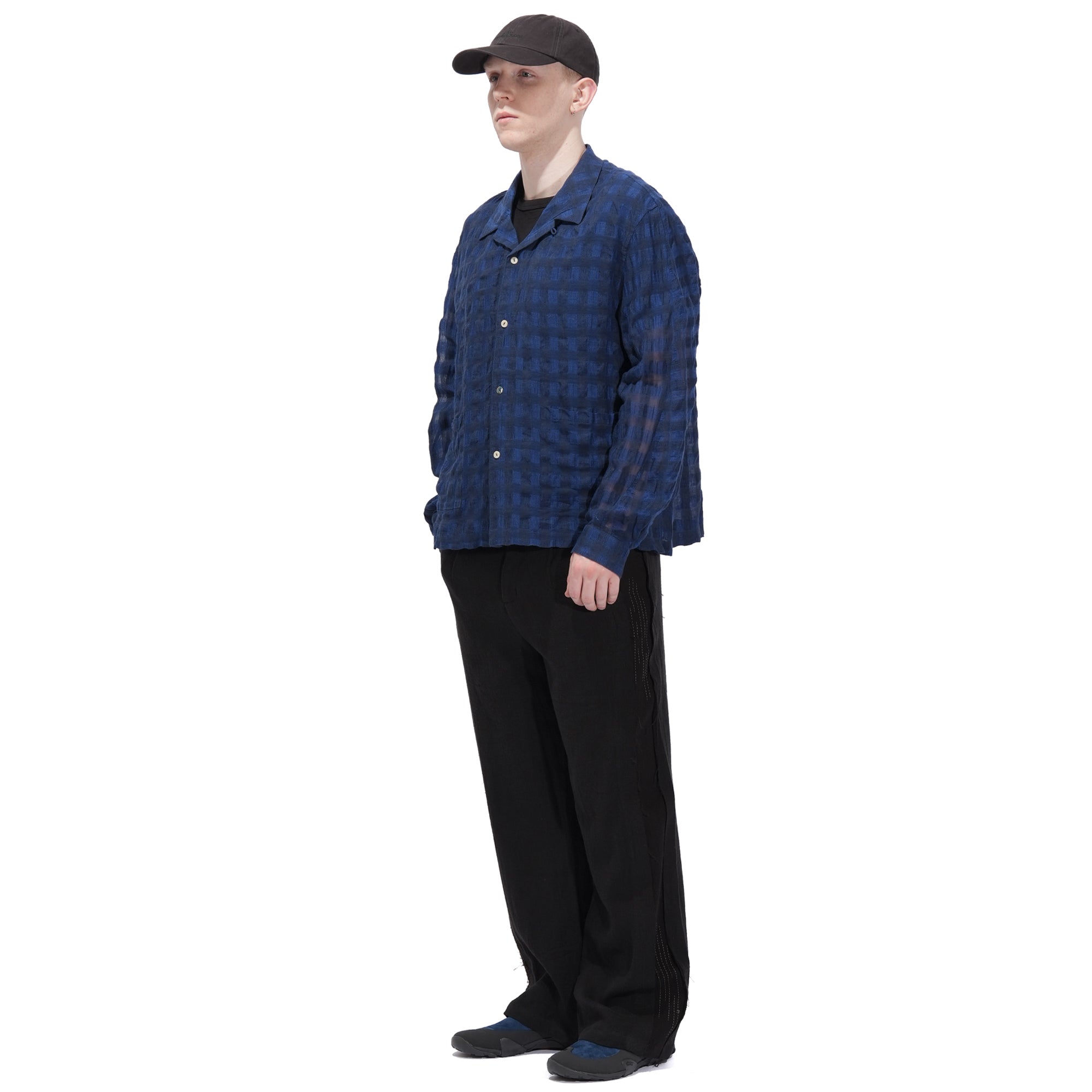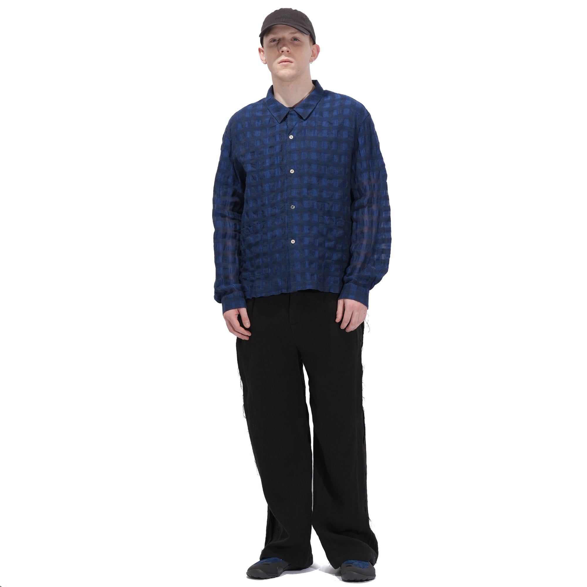 - Crafted from INSULAiRE's exclusive custom-developed linen-cotton woven fabric, this shirt combines the natural breathability, textured slub, and lightweight qualities of linen with the softness and durability of cotton. The result is a fabric that feels cool and comfortable while maintaining subtle structure and a relaxed, flowy look. Hollow structure, created by the combination of varying thicknesses of warp and weft yarns. After washing, the warp and weft shrink differently, producing natural wrinkles. The design is finished with a single shell button for a refined touch.