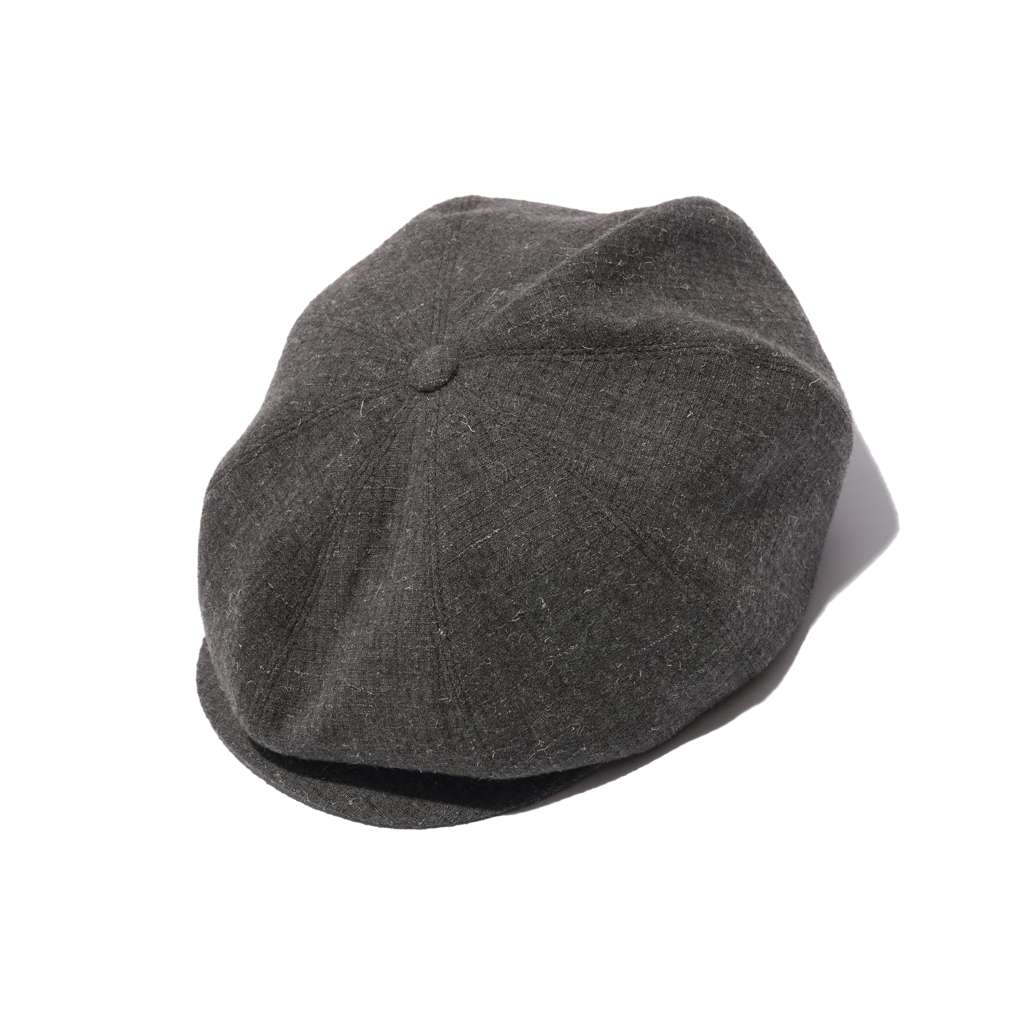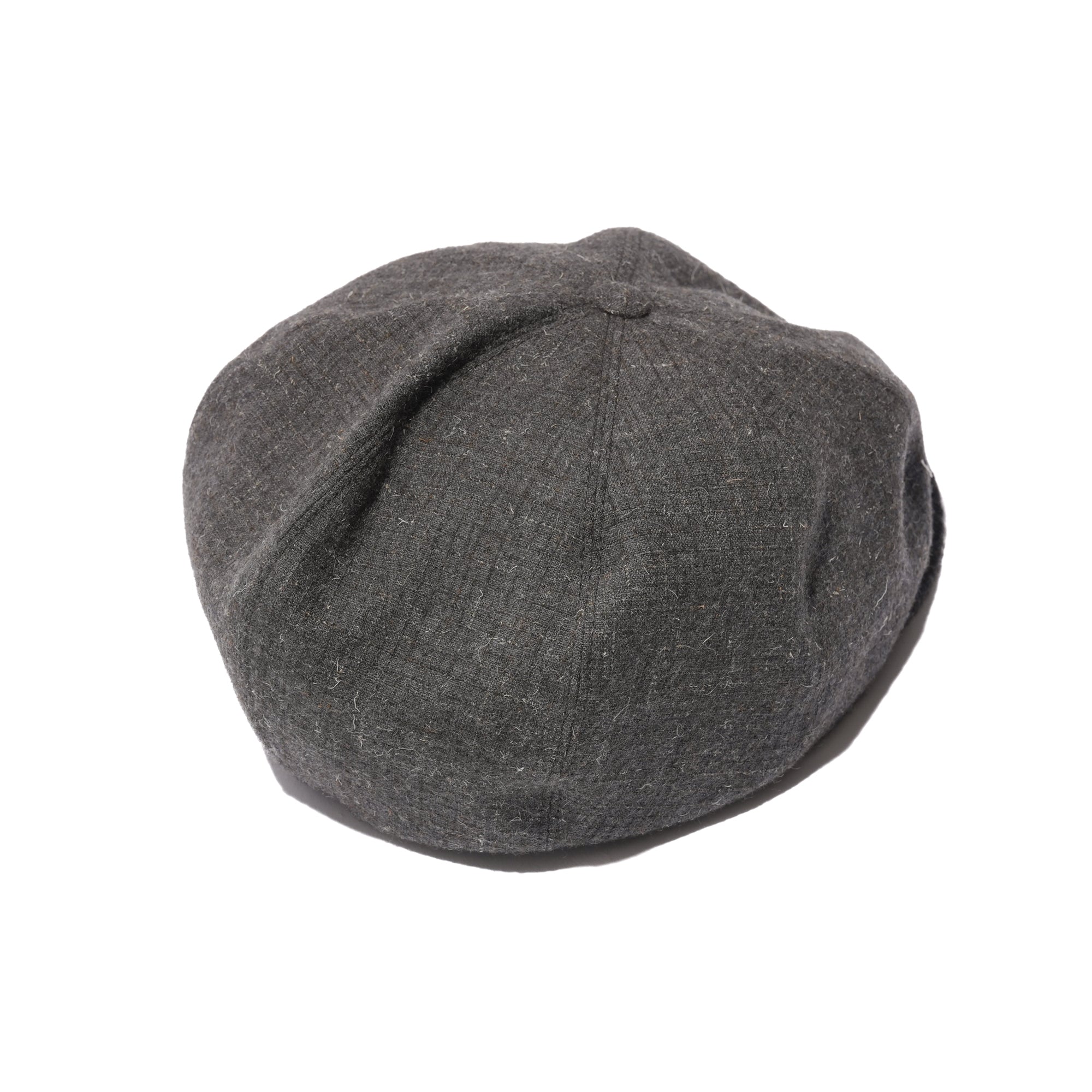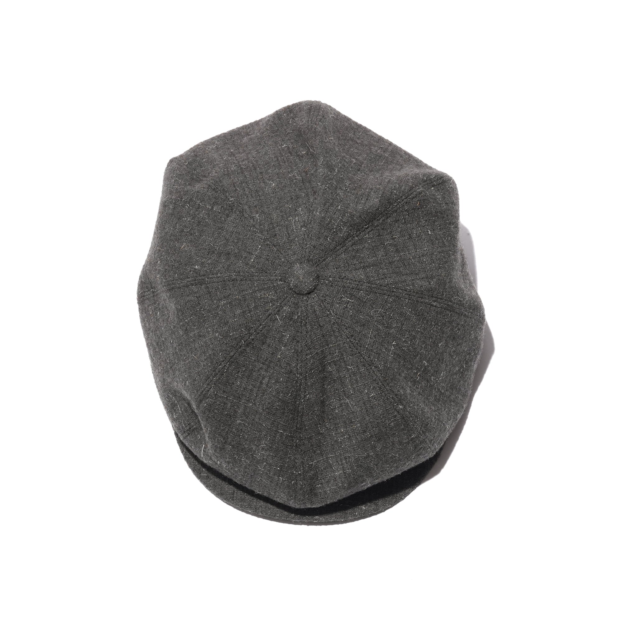 - Inspired by styles from the 1910s–30s, the silhouette was refined through repeated adjustments to achieve an original, well-balanced shape—carefully considering tilt, brim proportions, drape, and side volume for an elegant look. This season’s fabric features a tonal plain weave accented by textured kempi wool yarn, evoking the feel of Japanese kasuri or mid-century nep tweed. Thick kempi yarn forms a subtle check within a wool tropical base, finished with a light brushing for a softly warm appearance.