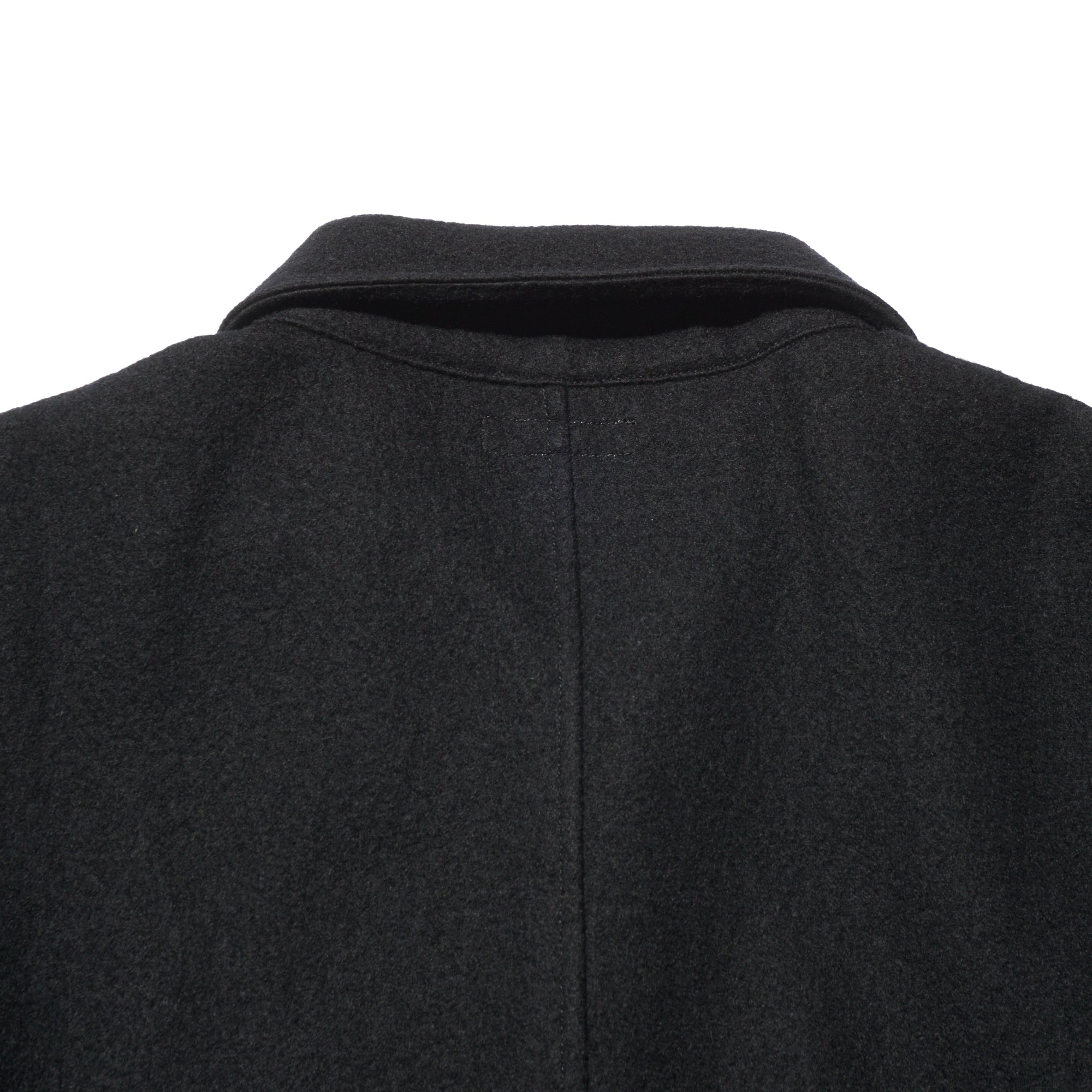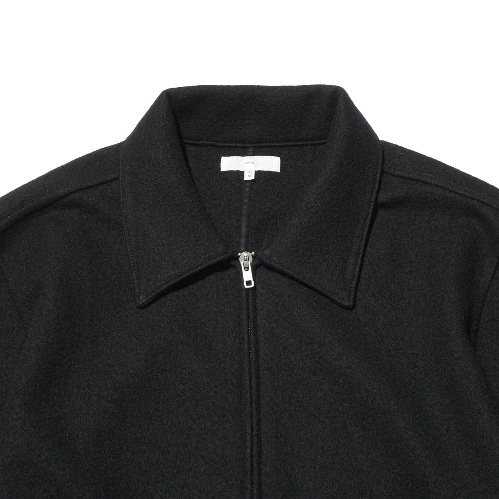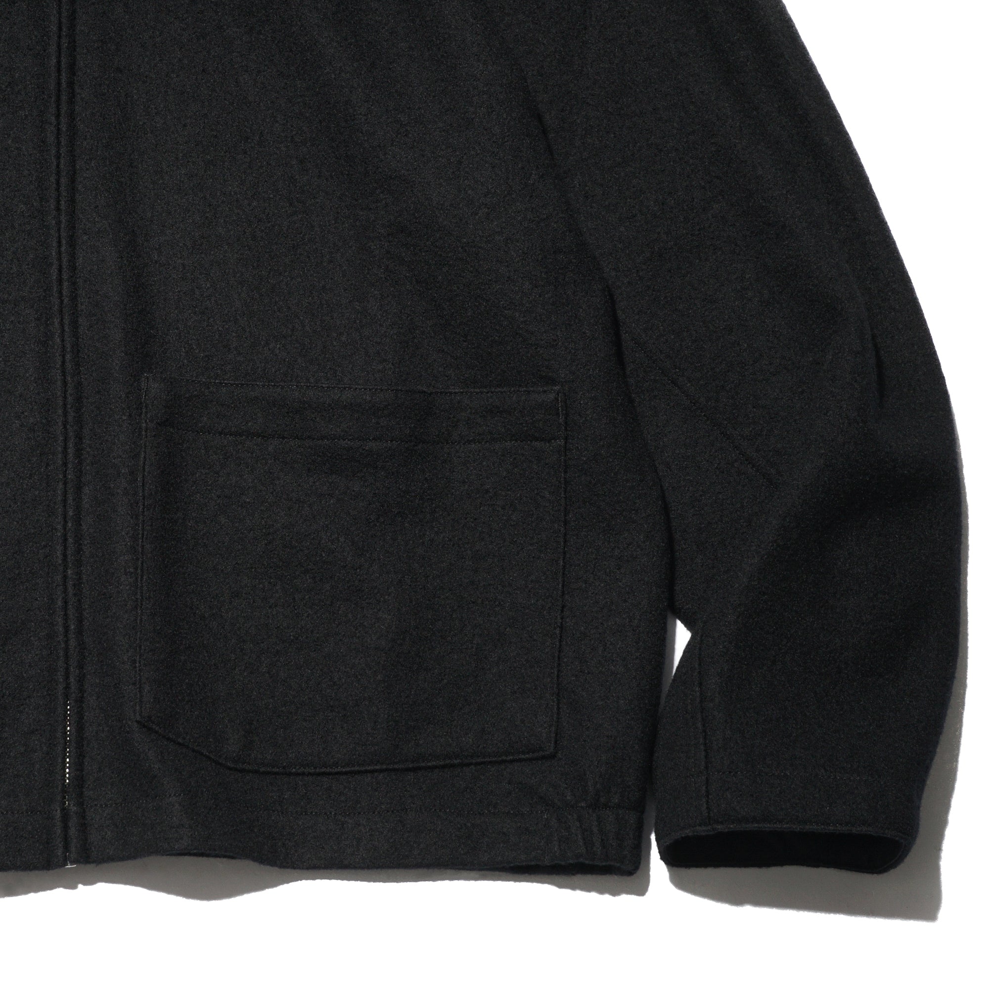 - A wide, boxy-fitting jacket with a pointed collar and a slightly cropped body. Crafted from 100% wool knit in Japan, the heavyweight fabric offers a weighted yet fluid drape. A light yet inviting texture that balances warmth and mobility. High-heat finishing creates an organic texture that is almost worsted. Its 2-piece sleeves follow the natural posture of the arm.