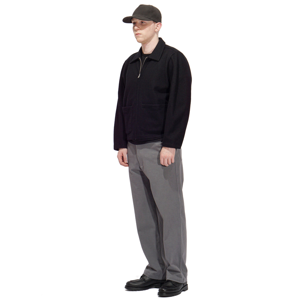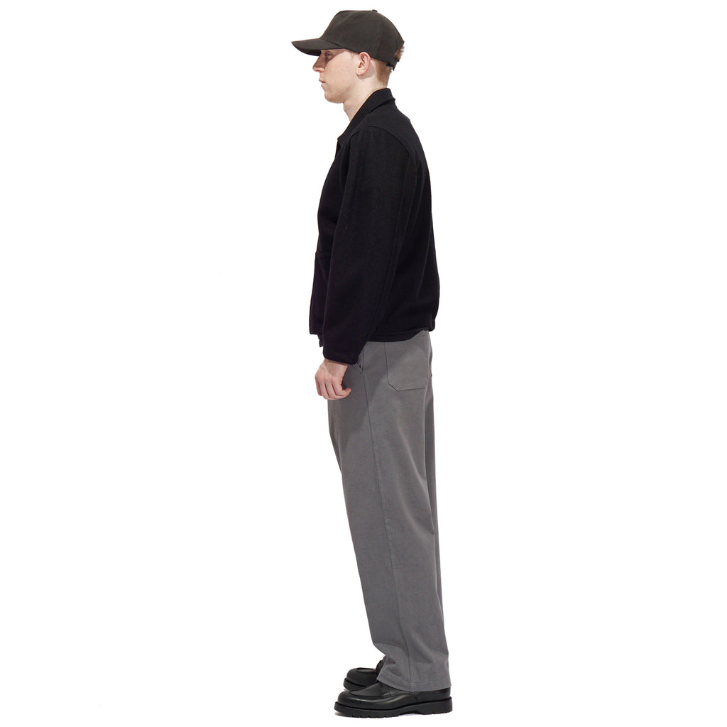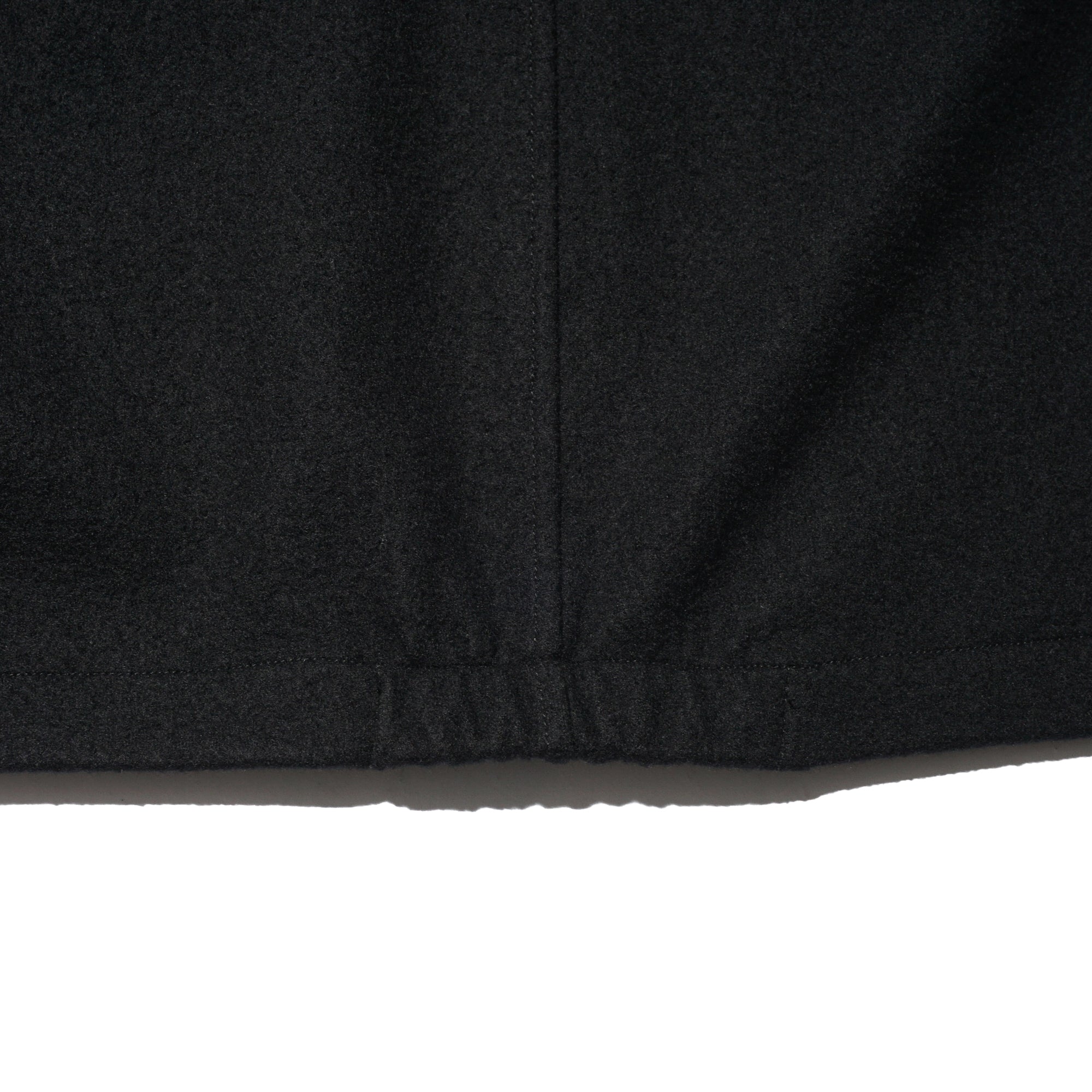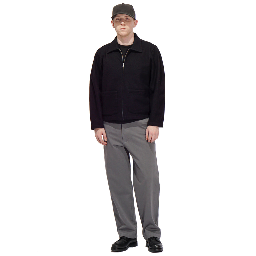 - A wide, boxy-fitting jacket with a pointed collar and a slightly cropped body. Crafted from 100% wool knit in Japan, the heavyweight fabric offers a weighted yet fluid drape. A light yet inviting texture that balances warmth and mobility. High-heat finishing creates an organic texture that is almost worsted. Its 2-piece sleeves follow the natural posture of the arm.