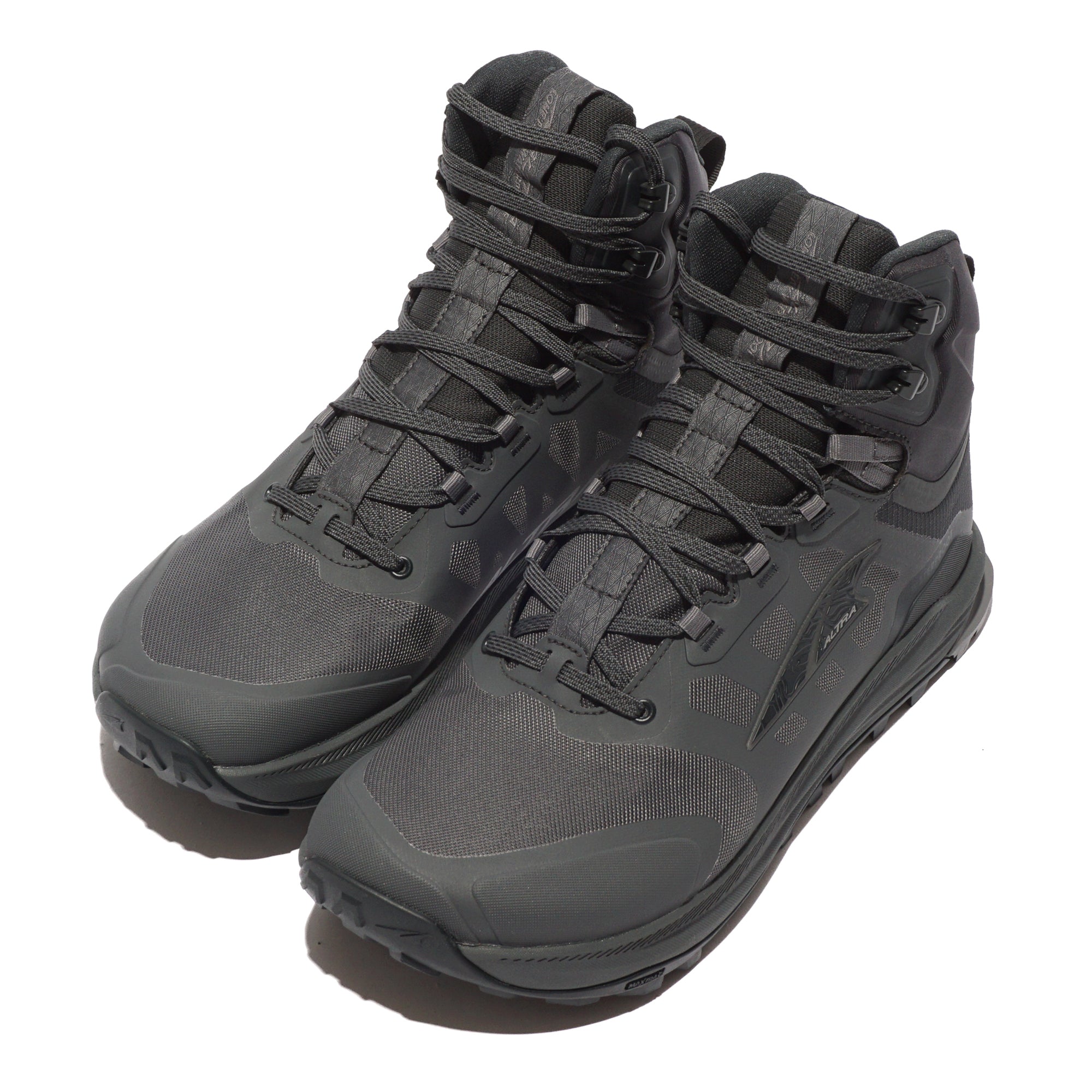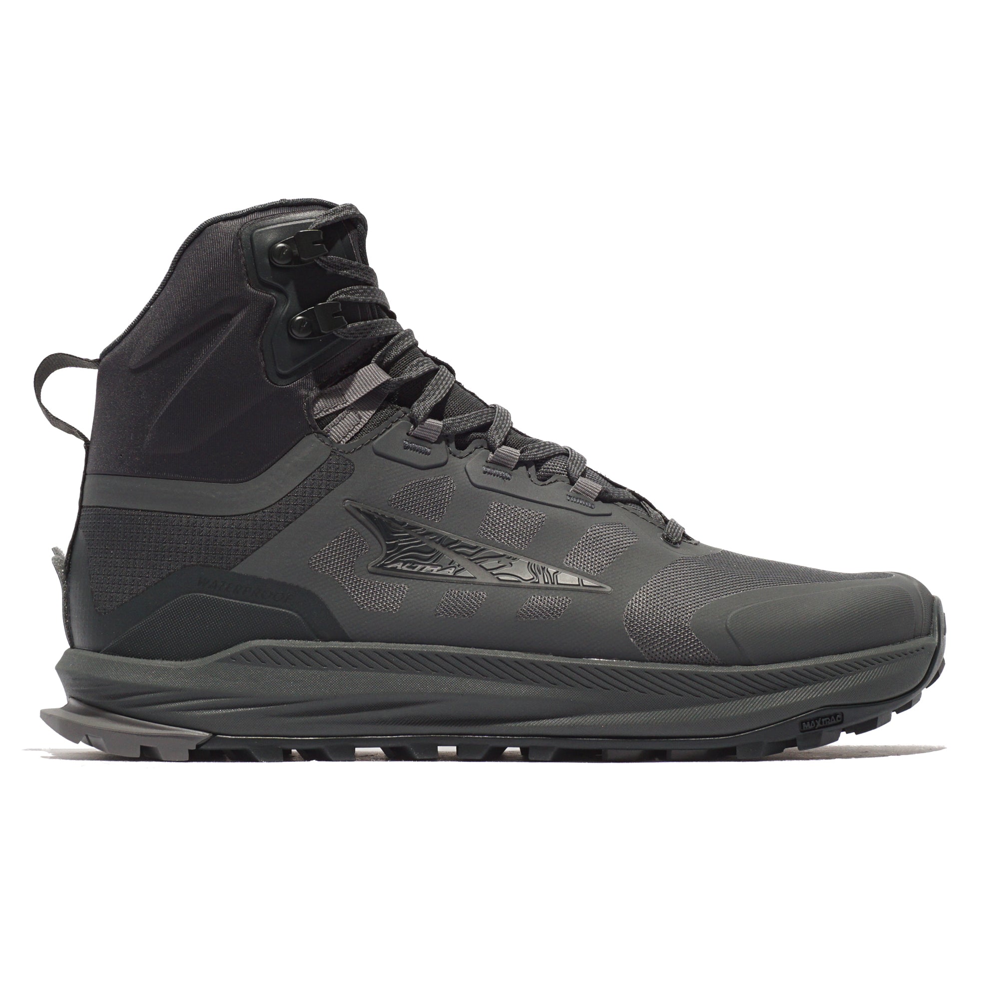 - A mid‑cut, waterproof trail/hiking boots that combine Altra’s signature zero‑drop platform and roomy FootShape™ toe box with a durable Hydroguard™ waterproof membrane and recycled polyester mesh upper to keep your feet dry in wet conditions. They have a comfortable Altra EGO™ midsole for balanced cushioning and ground feel, a grippy MaxTrac™ outsole for traction on varied terrain, StoneGuard™ underfoot protection, and a molded heel collar with integrated lacing for a secure fit, making them ideal for hiking, thru‑hiking, and rugged trail adventures where waterproof protection, natural foot movement, and traction are important.