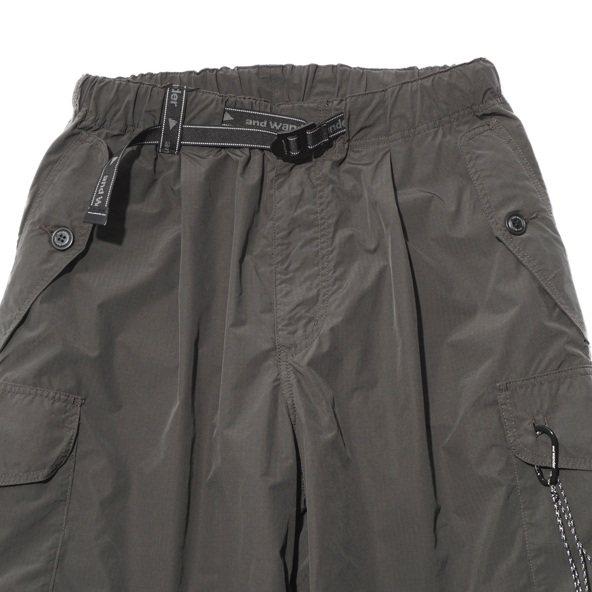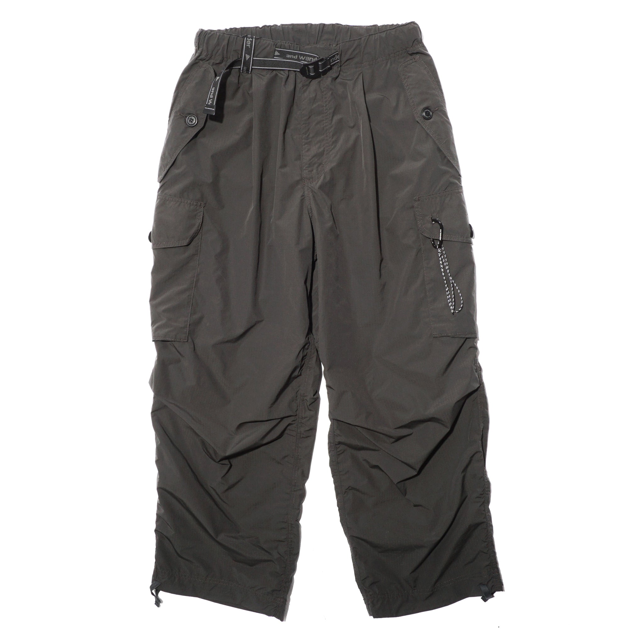 - The Oversized Cargo Pants from And Wander produced in a water repellent fabric with unique elasticity and colour due to the use of a split yarn. The pants come in a loose wide silhouette and feature an integrated belt, two hand pockets, two zippered back pockets, and two zippered cargo pockets provide secure storage, and adjustable elasticated drawcords at the leg openings allow for a personalized fit.