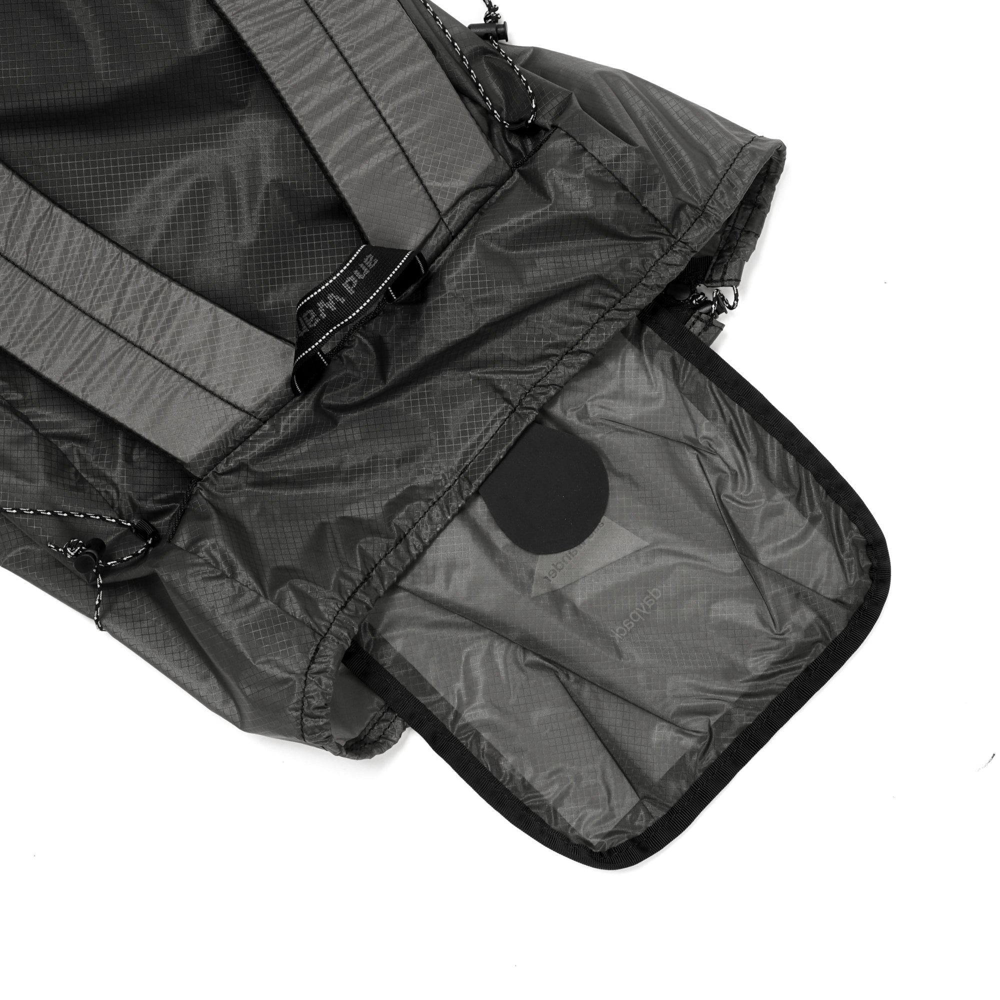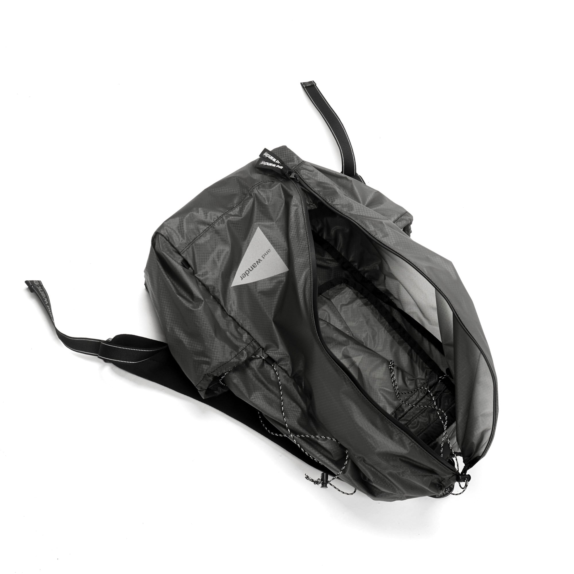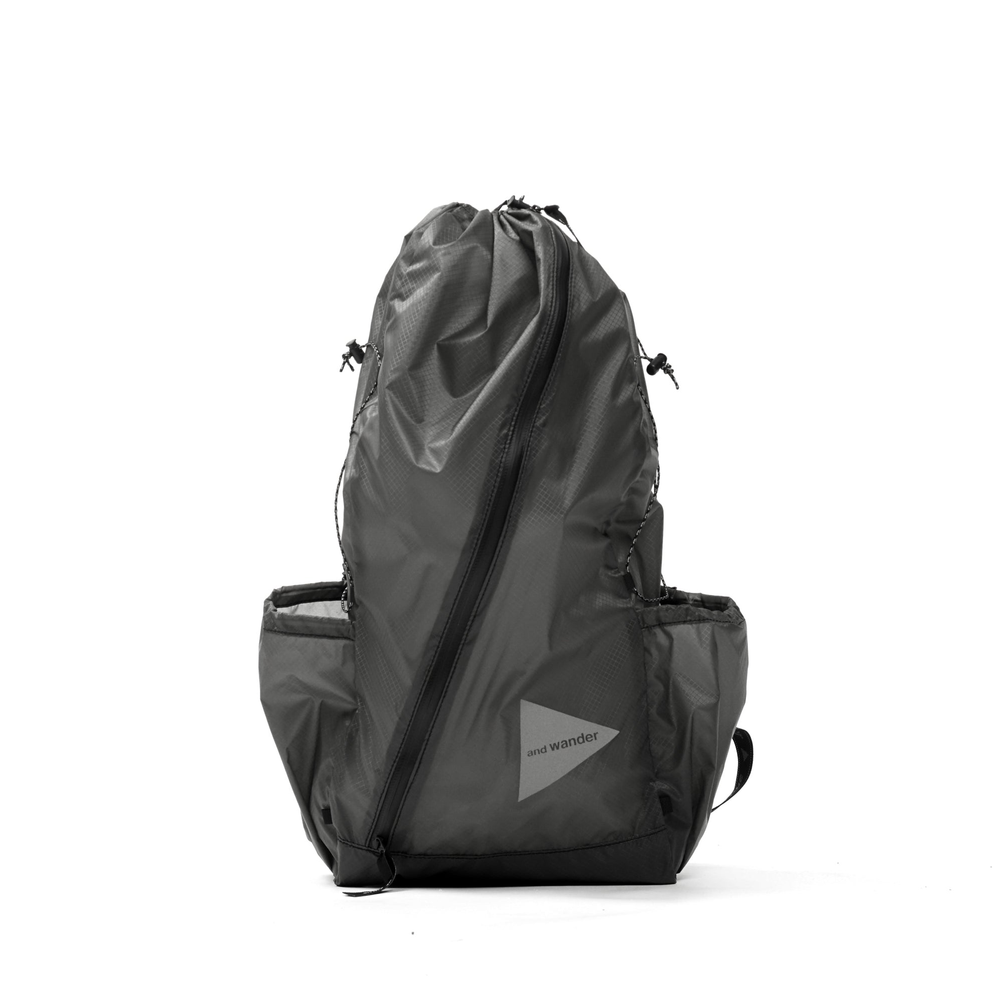 - A lightweight and packable backpack from And Wander produced in INVISTA's silicone coated 30D ripstop Cordura nylon material. The material resists abrasion, tearing and fraying, and has a water resistance of over 2000 mm. The backpack features one large main compartment with a drawstring top opening and a diagonal front zipper for easy access. Pouches and drawstrings at the sides of the bag provide additional storage, and adjustable padded strap provide a comfortable fit. The Sil Daypack features a packable design that allows it to be stored in the inside pocket when not in use, and is finished with a reflective And Wander logo printed on the front.