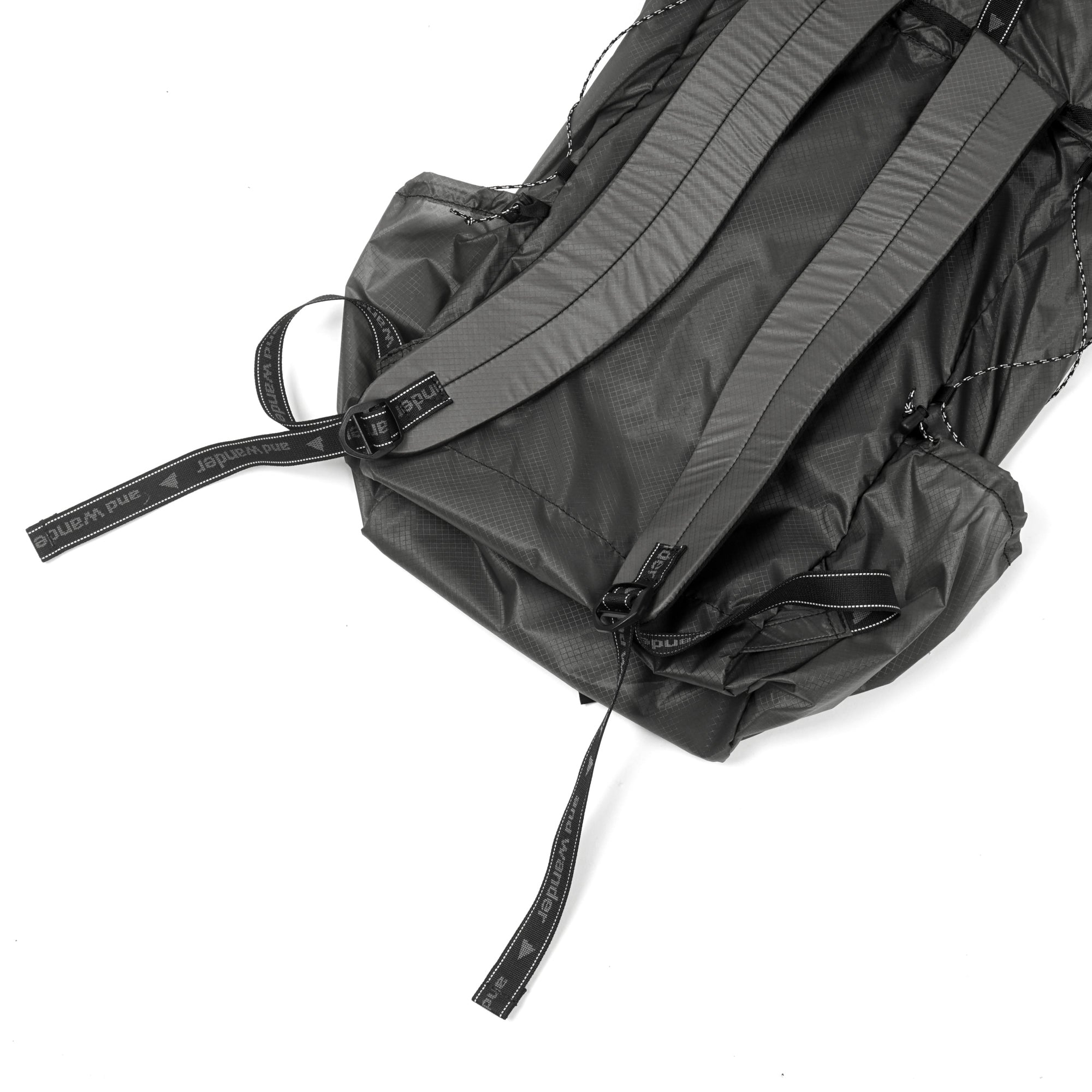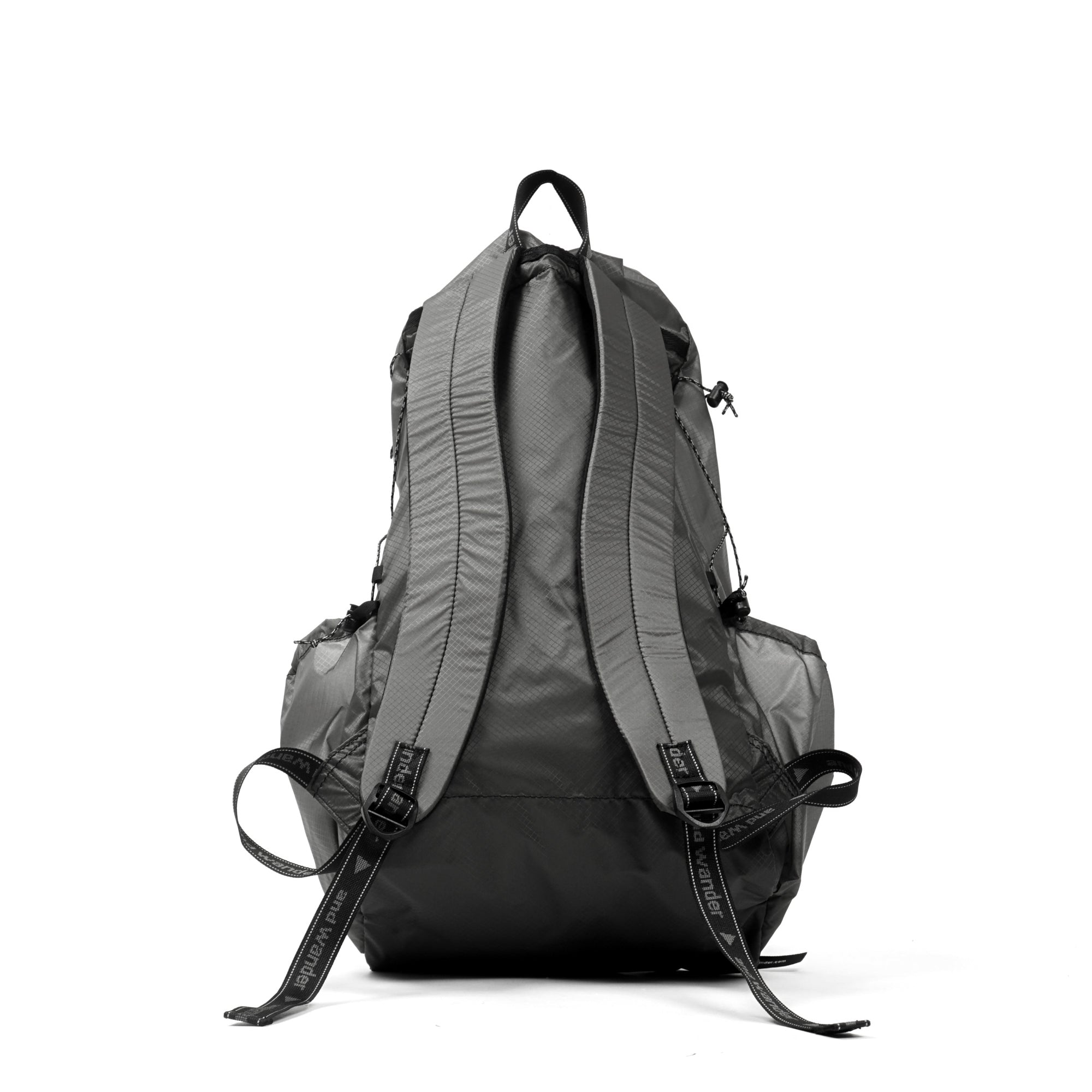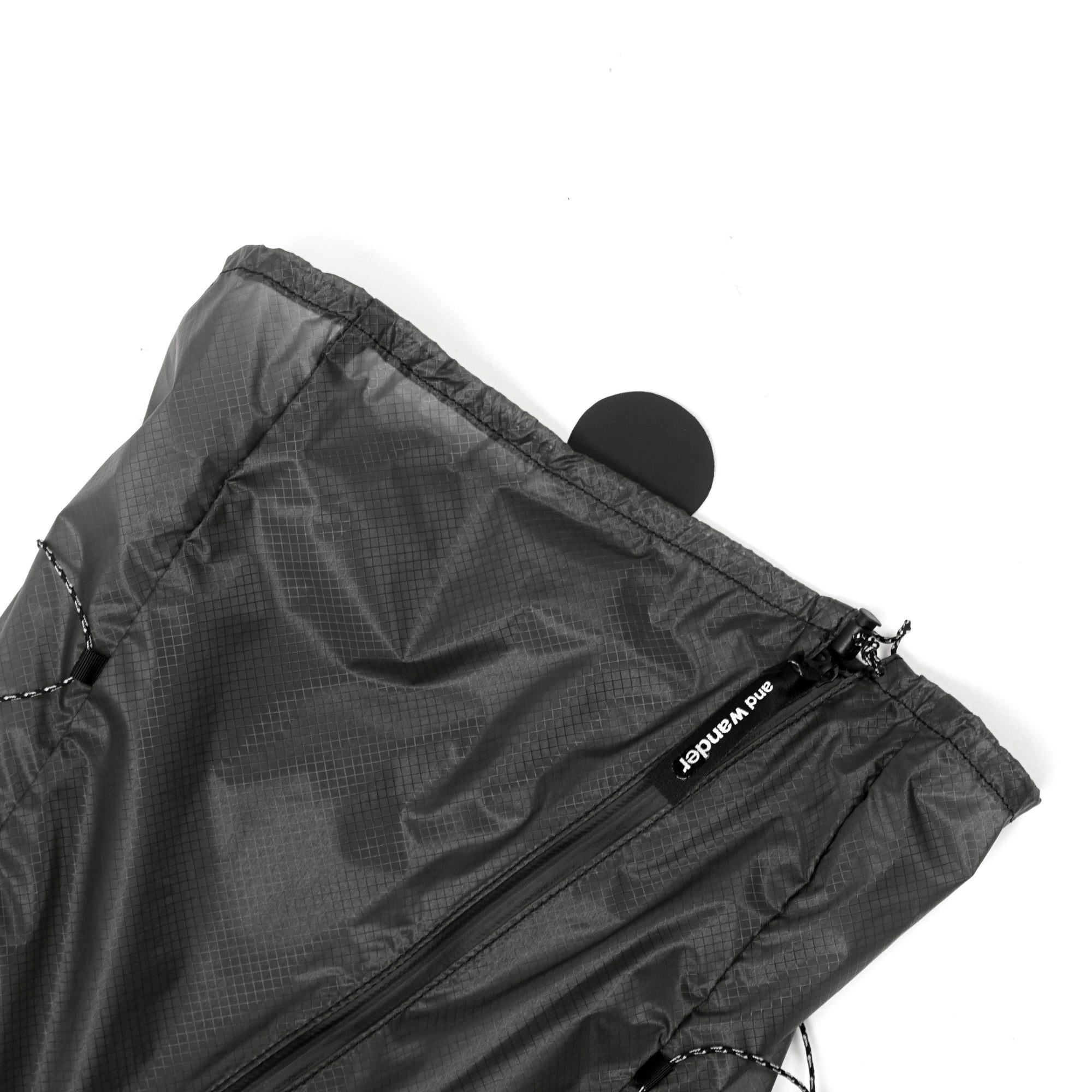 - A lightweight and packable backpack from And Wander produced in INVISTA's silicone coated 30D ripstop Cordura nylon material. The material resists abrasion, tearing and fraying, and has a water resistance of over 2000 mm. The backpack features one large main compartment with a drawstring top opening and a diagonal front zipper for easy access. Pouches and drawstrings at the sides of the bag provide additional storage, and adjustable padded strap provide a comfortable fit. The Sil Daypack features a packable design that allows it to be stored in the inside pocket when not in use, and is finished with a reflective And Wander logo printed on the front.