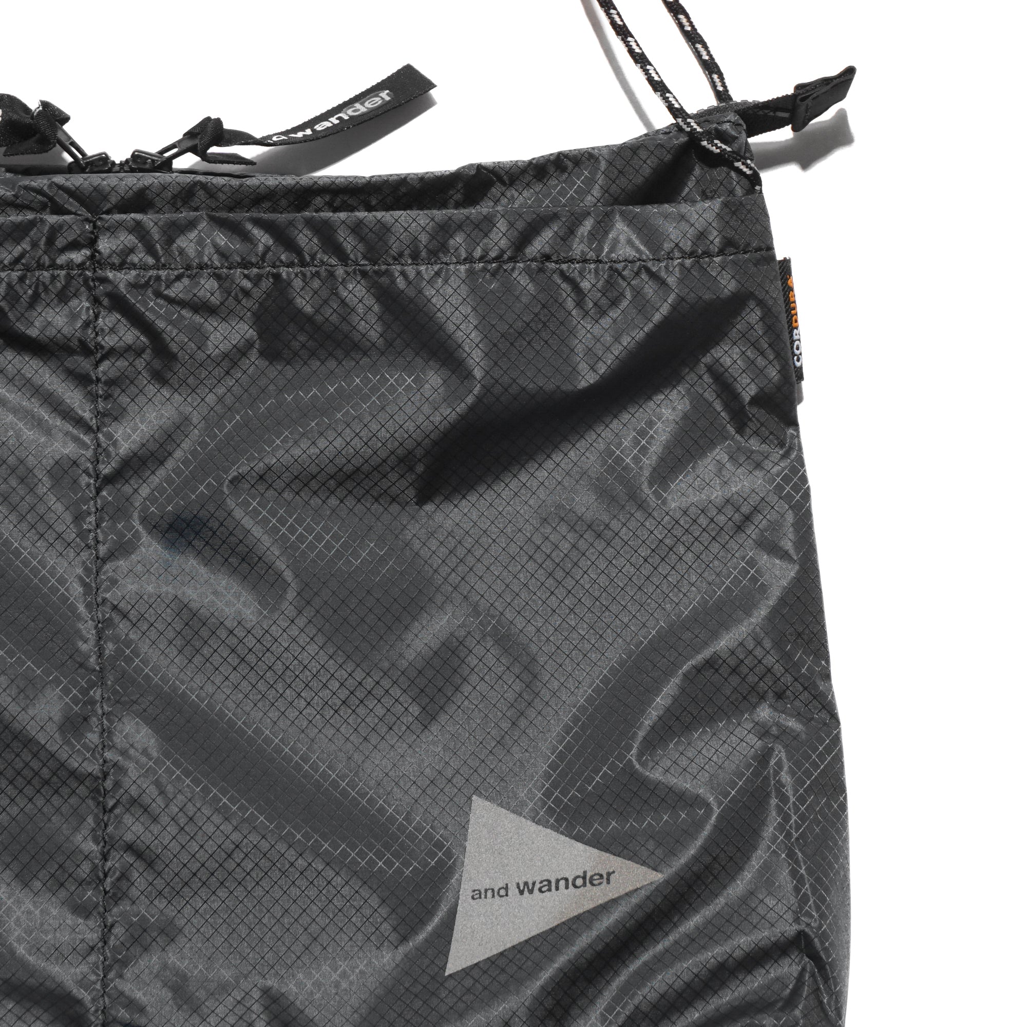 - The And Wander SIL Sacoche bag is lightweight, durable, and water-repellent. It has a zippered main compartment, two front pouches, branded carabiners, and a reflective strap and logo. Versatile and tough for any conditions.