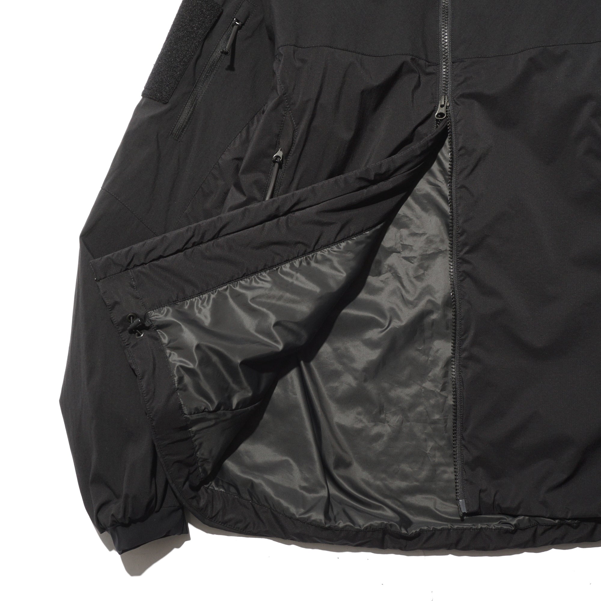 - A lightweight, insulated jacket designed for versatile outdoor and tactical use, combining breathable performance with packable convenience. It features a shell of lightweight Pertex® Quantum Air for good wind resistance and water repellency, and Polartec® Alpha® insulation that delivers active, highly breathable warmth during movement while preventing overheating — ideal for stop-and-go conditions. Functional design elements include anatomically shaped sleeves, reinforced shoulders and arms, multiple external and internal pockets, a hidden hood inside the collar, adjustable hem drawcord.