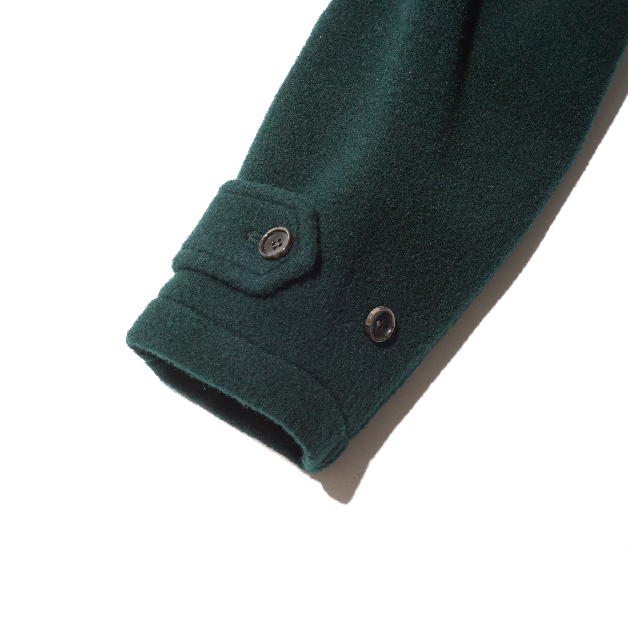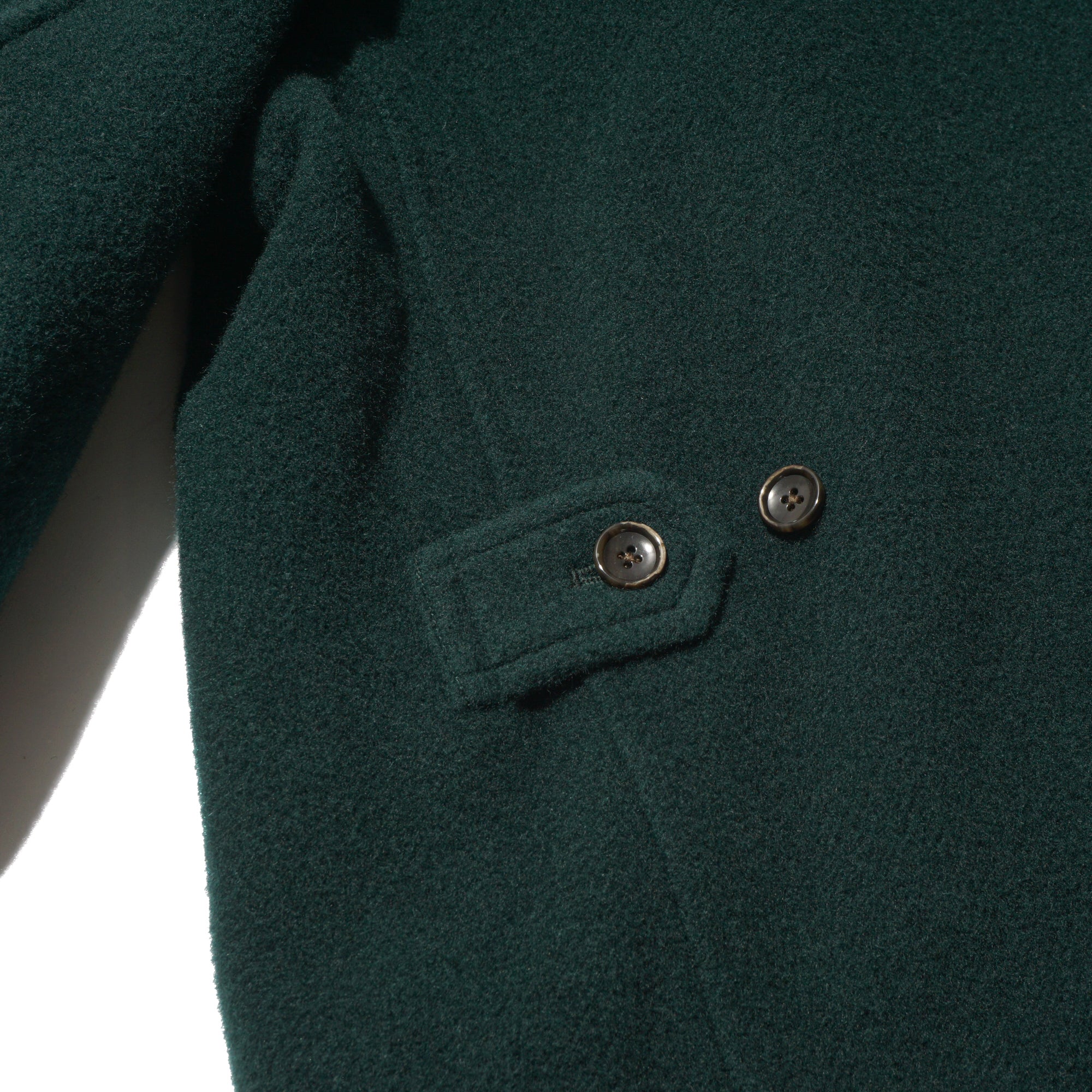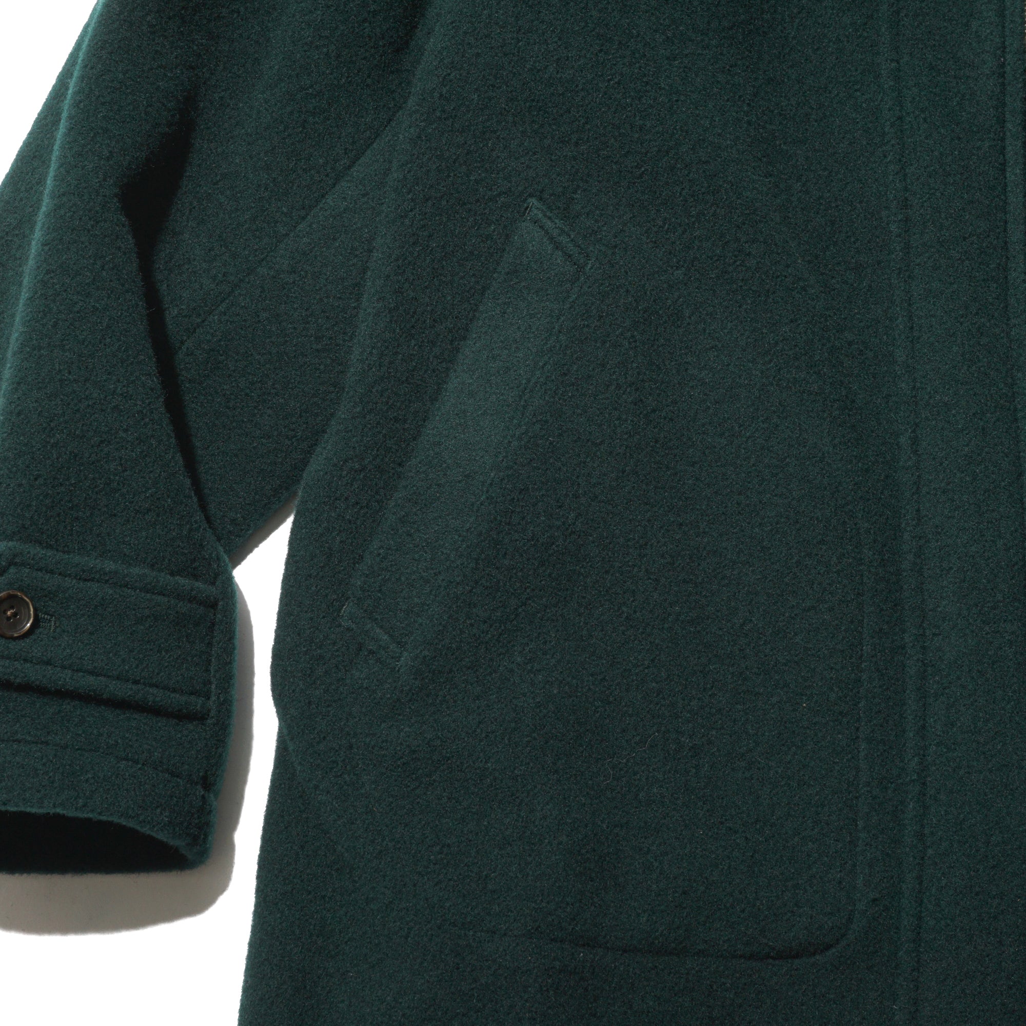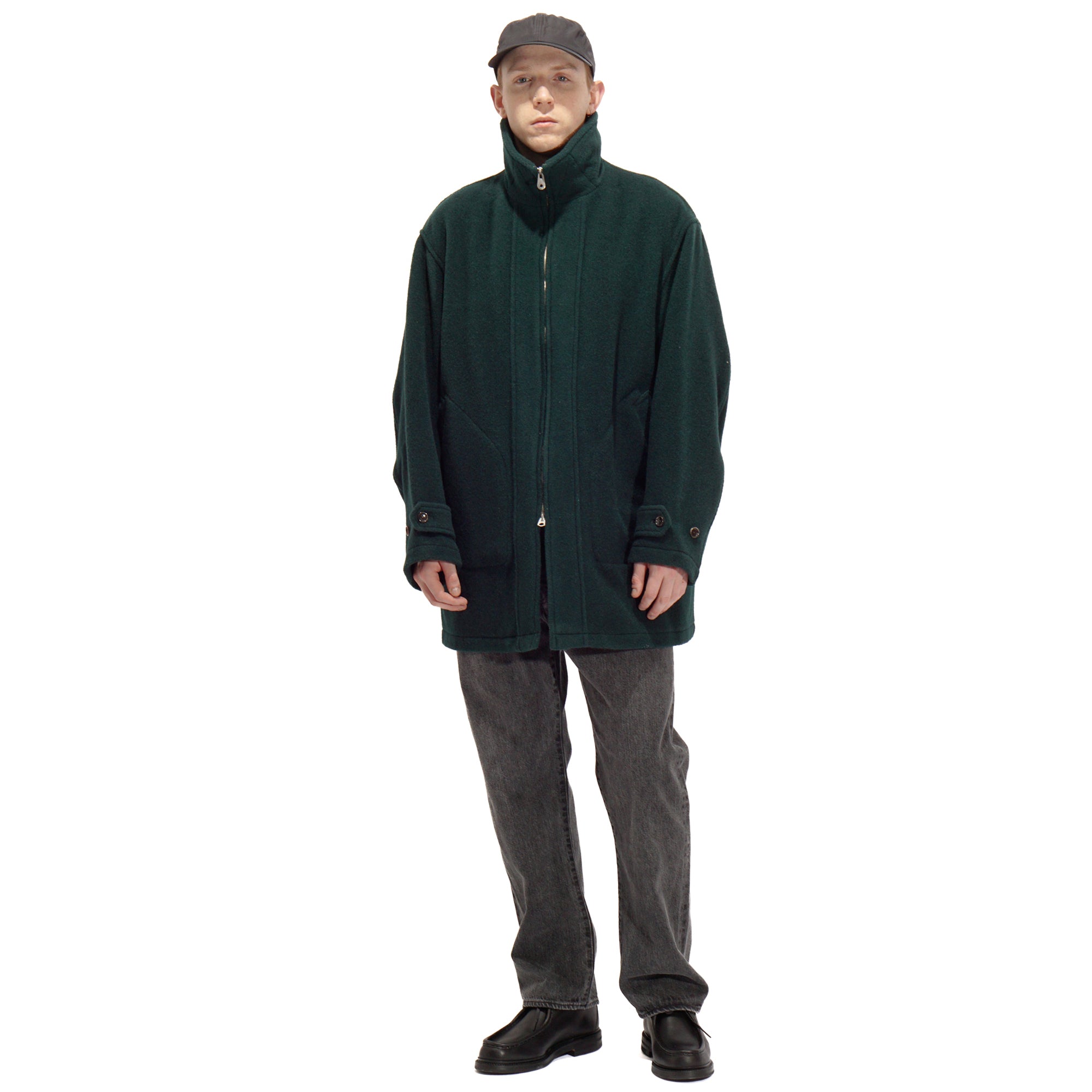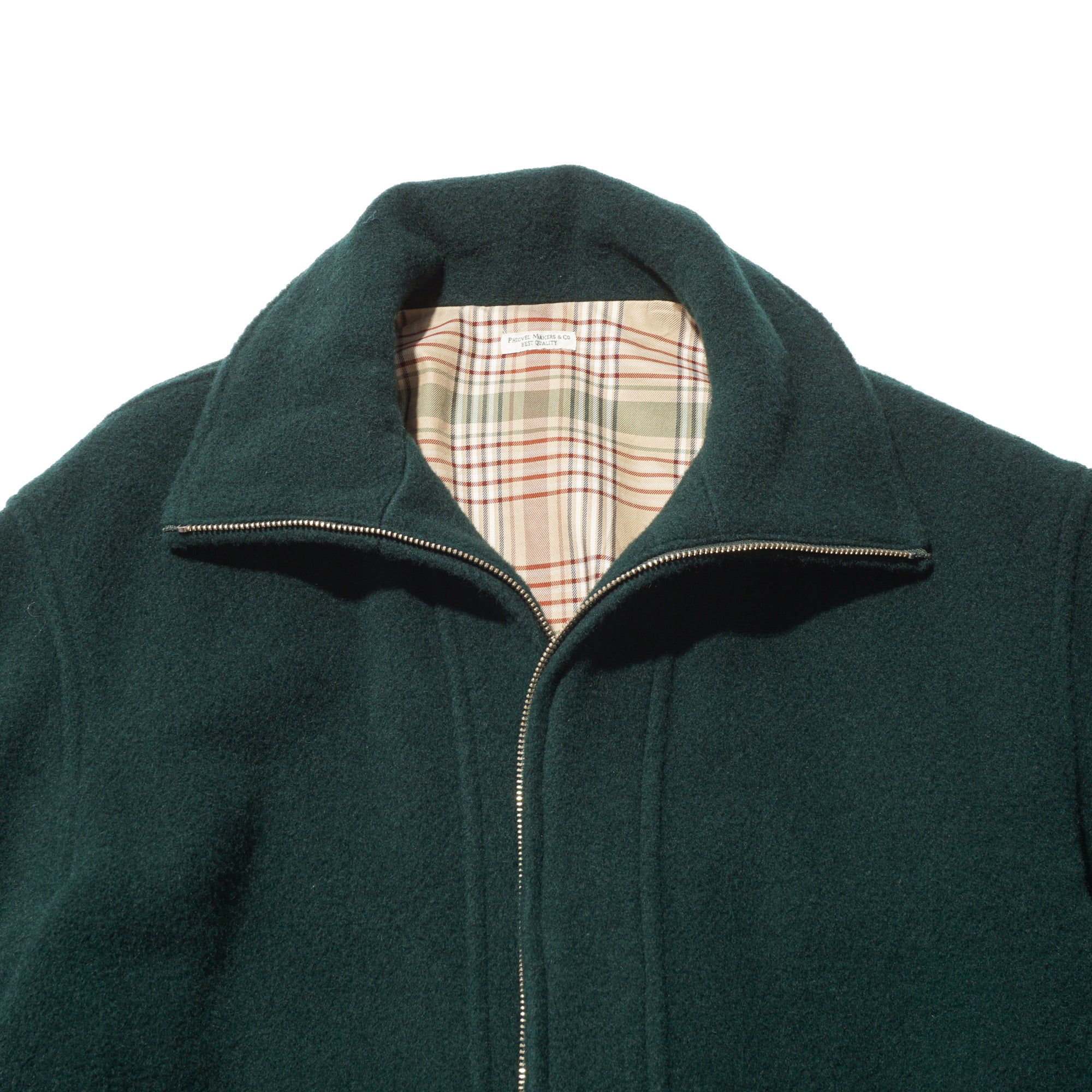 - This is a mid-weight, really comfortable coat that doesn’t feel heavy on your shoulders—the weight drapes nicely toward the bottom. Crafted wool fabric woven from a mix of wool-cashmere and British wool. The Viridian color is great: a green that catches your eye, but still blends with outfits very well. The clean cuts and thoughtful details are also great, like the patch pockets, buttons, cuffs, waist button, and the plaid lining at the shoulders. The Waldes zippers add a subtle vintage touch, and the collar is fantastic—looks sharp both down and up, creating a V-shape around the cheek when fully zipped.