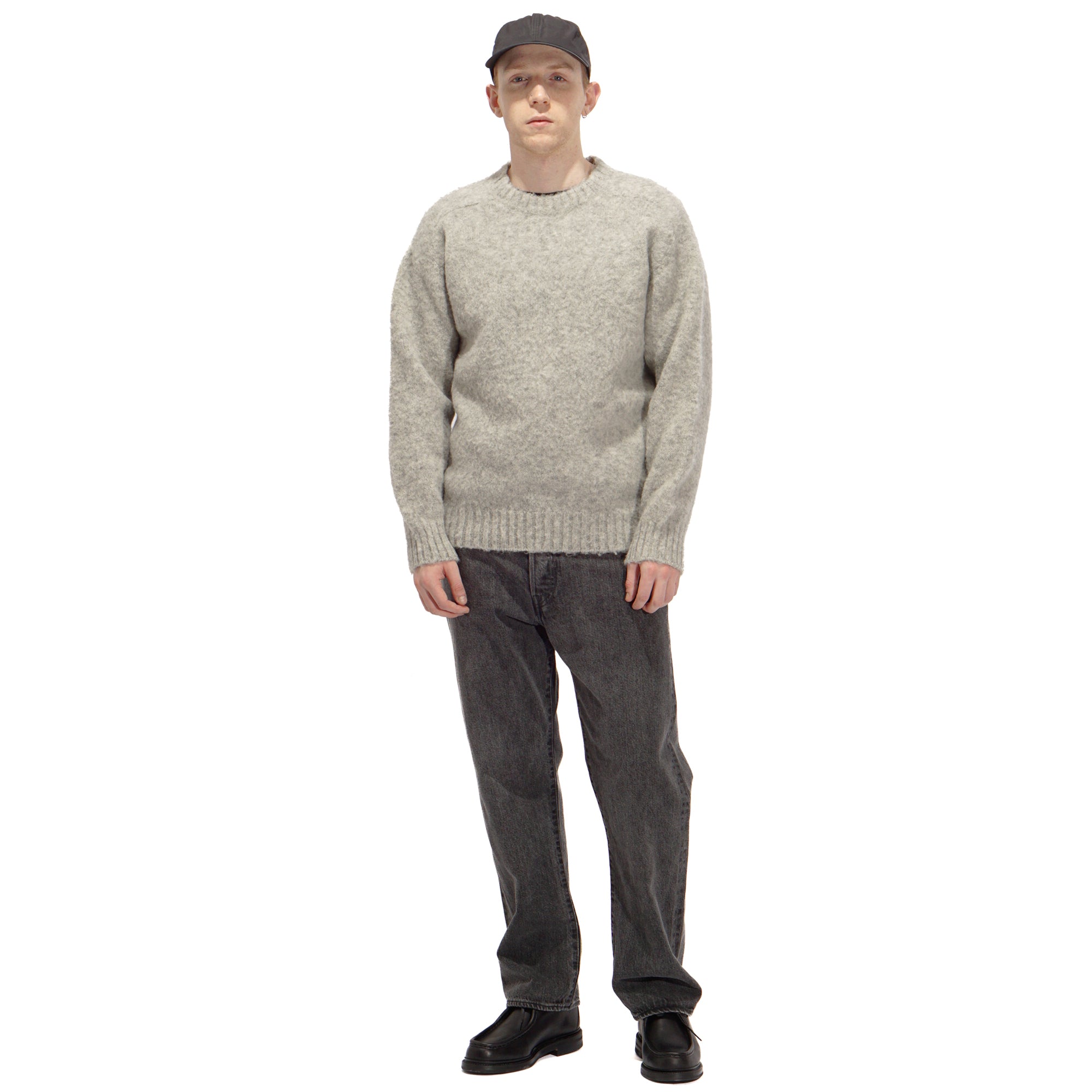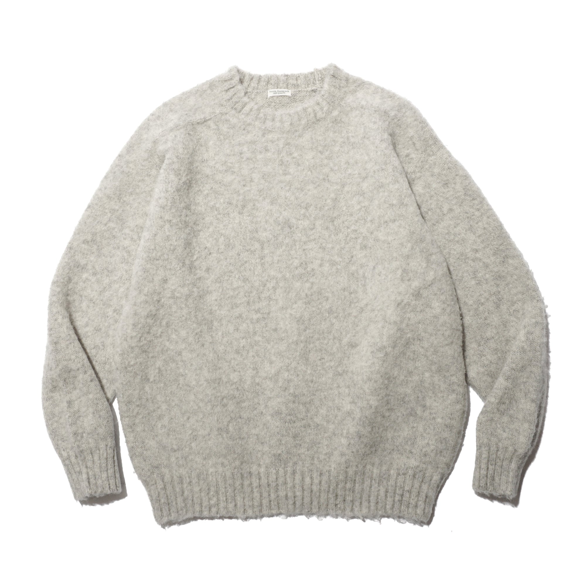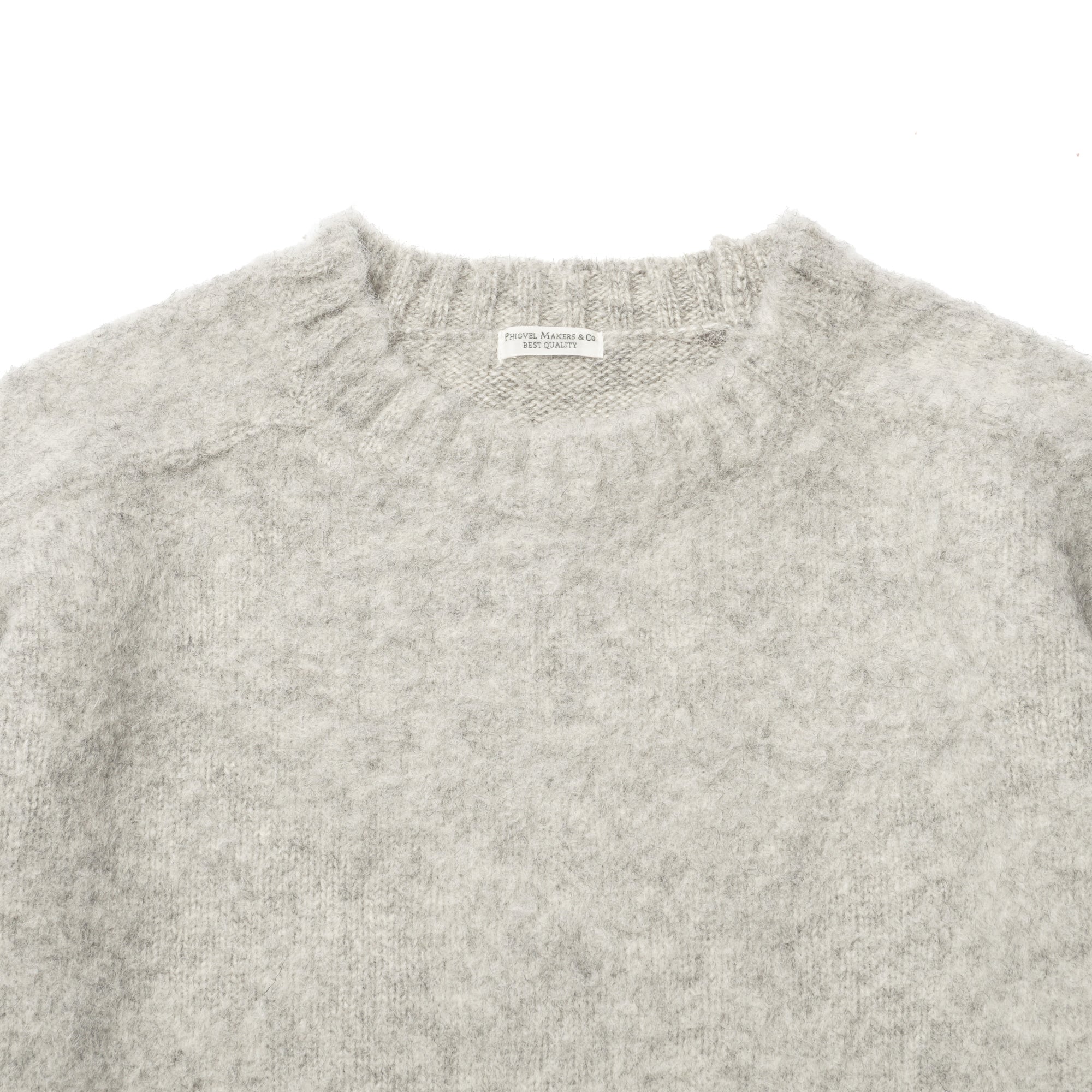 - A structured yet surprisingly lightweight sweater. Crafted from long, soft Shetland yarns, known for their warmth, durability, and natural, textured character. Finished in a brushed shaggy-dog style, the fabric traps air to enhance insulation while remaining breathable and comfortable. The 5-gauge jersey knit adds a cozy, textured feel. The collar sits perfectly, and the square block pattern is designed so that when your arms are down, it naturally folds around the armpits, giving the piece a subtle vintage look.