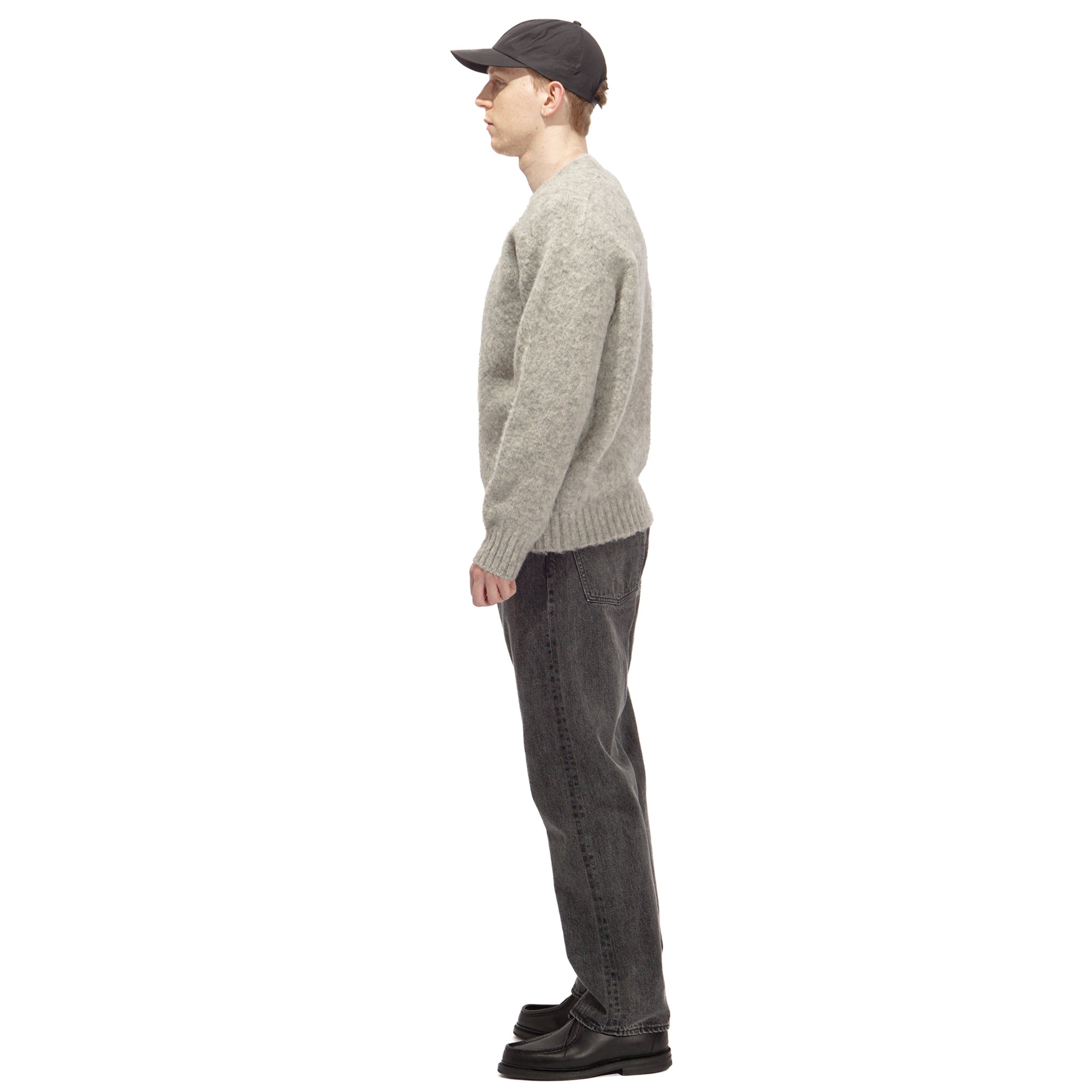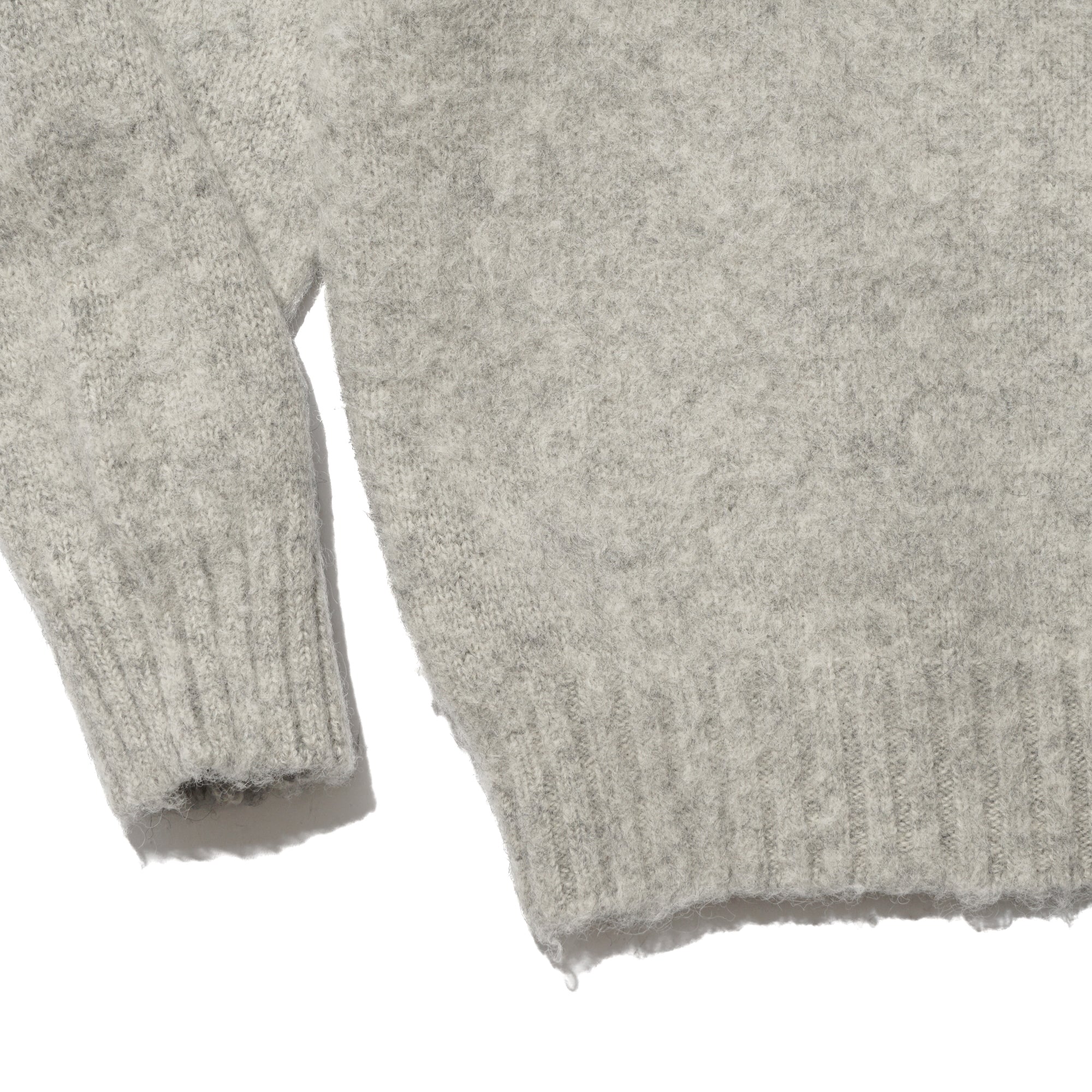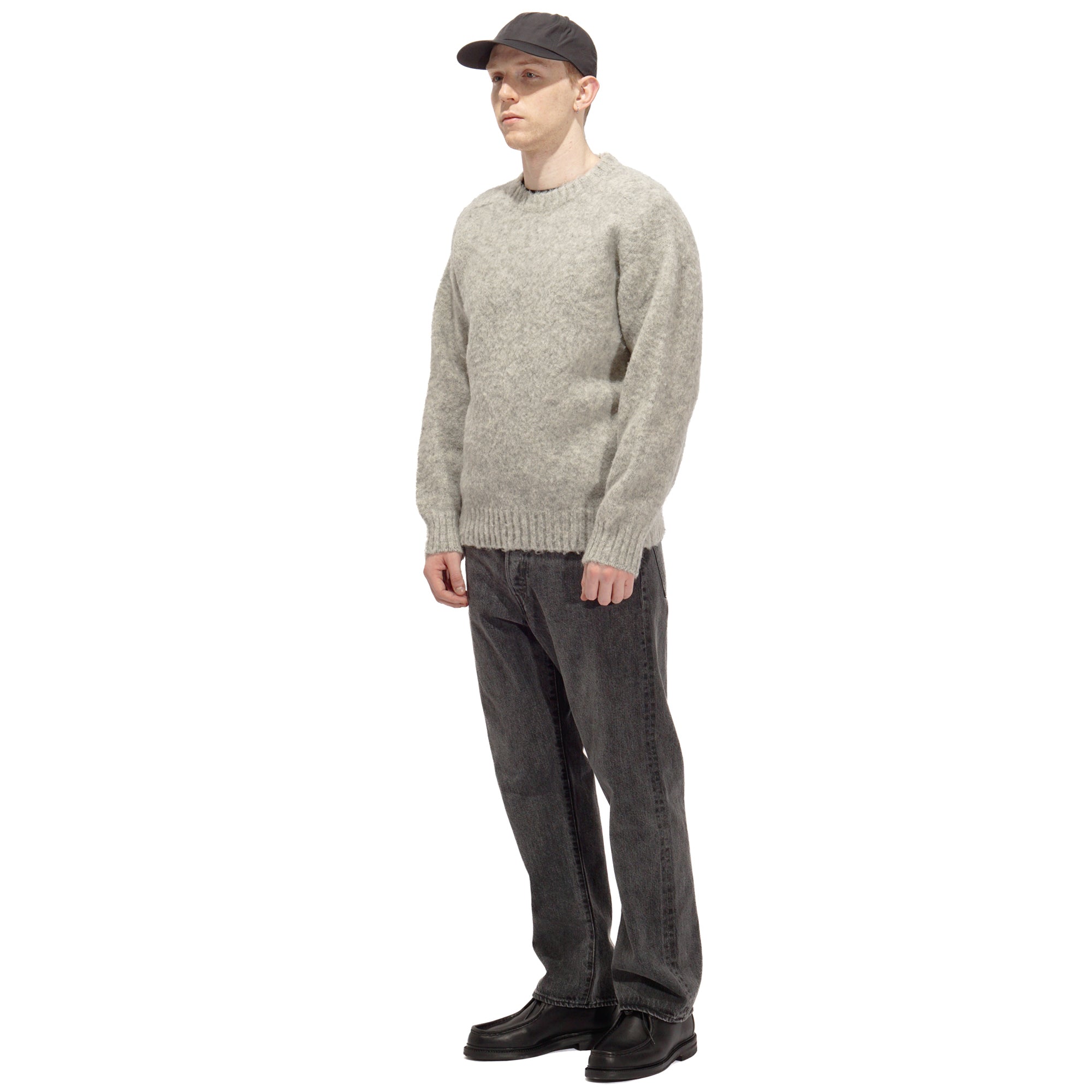 - A structured yet surprisingly lightweight sweater. Crafted from long, soft Shetland yarns, known for their warmth, durability, and natural, textured character. Finished in a brushed shaggy-dog style, the fabric traps air to enhance insulation while remaining breathable and comfortable. The 5-gauge jersey knit adds a cozy, textured feel. The collar sits perfectly, and the square block pattern is designed so that when your arms are down, it naturally folds around the armpits, giving the piece a subtle vintage look.