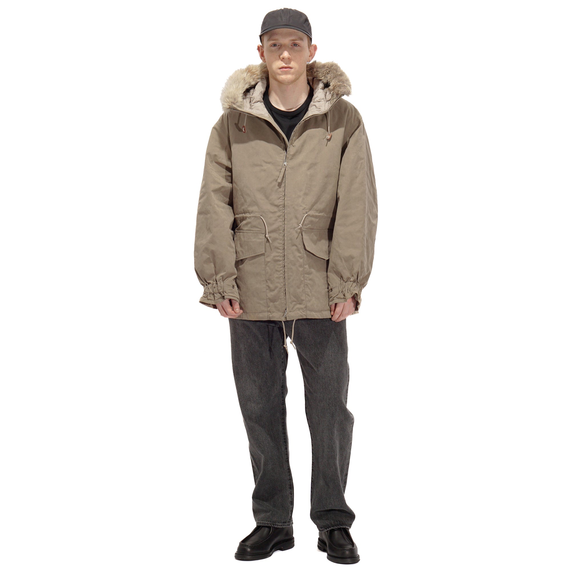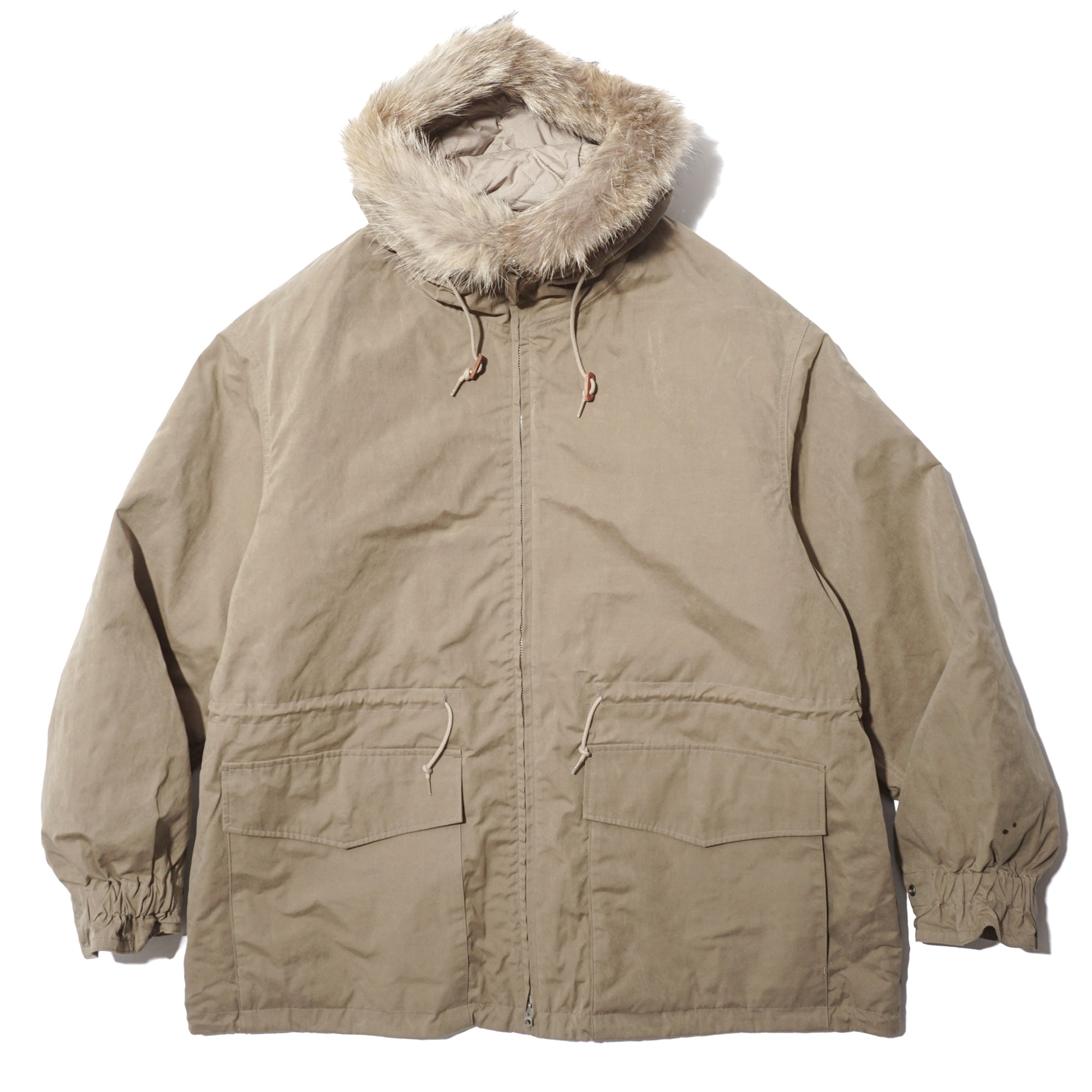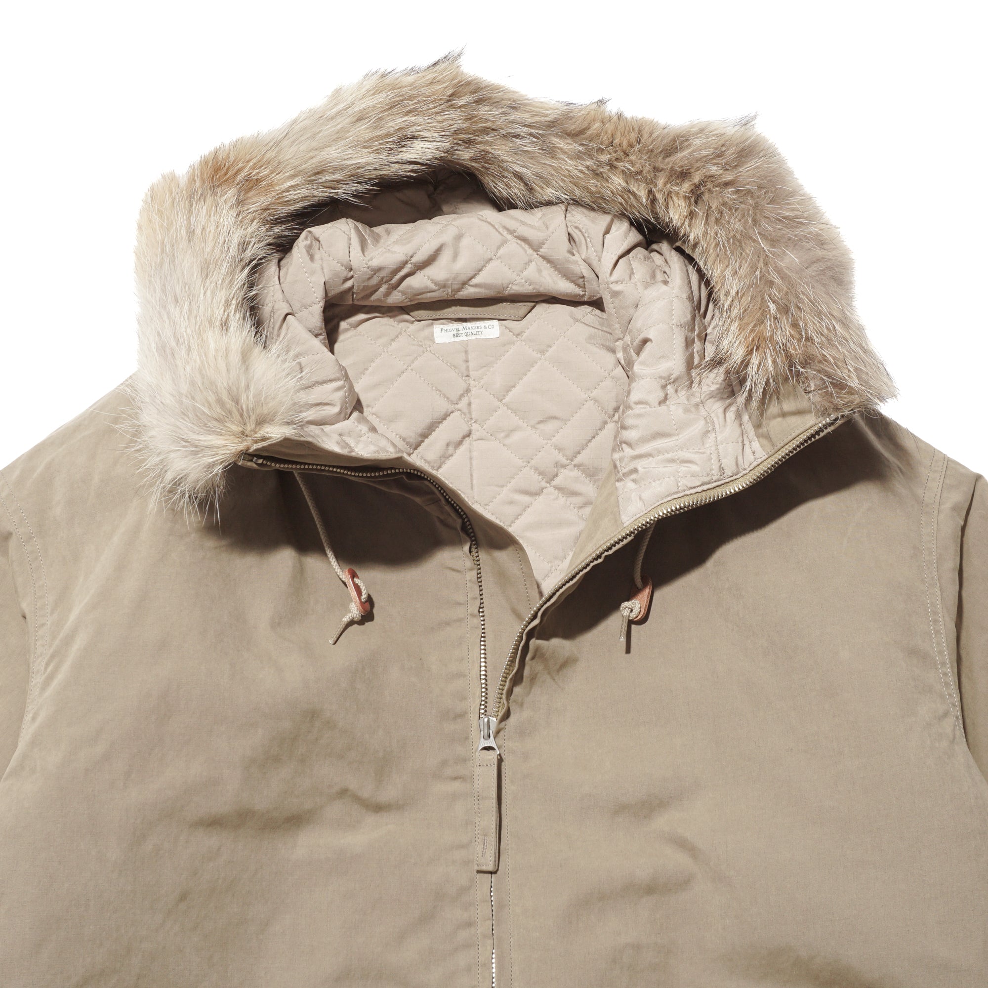 - This is a great example of Neo-Classic style—looks like a traditional parka, but way more wearable. It’s surprisingly lightweight, so you can layer it easily and still stay comfortable. Crafted from imported fabric by OLMETEX—an Italian mill known for high-performance outerwear textiles—the piece features a distinctive wax-like material woven from three different yarns. OLMETEX fabrics frequently incorporate advanced weaving techniques, water-repellent treatments. This piece reinterprets the Phigvel's “ANTARCTIC RESEARCH” concept, inspired by vintage expedition gear and scientific cold-weather uniforms. The hood is trimmed with removable coyote fur, and the interior is finished with a lightweight quilted lining filled with thin padding for added warmth.