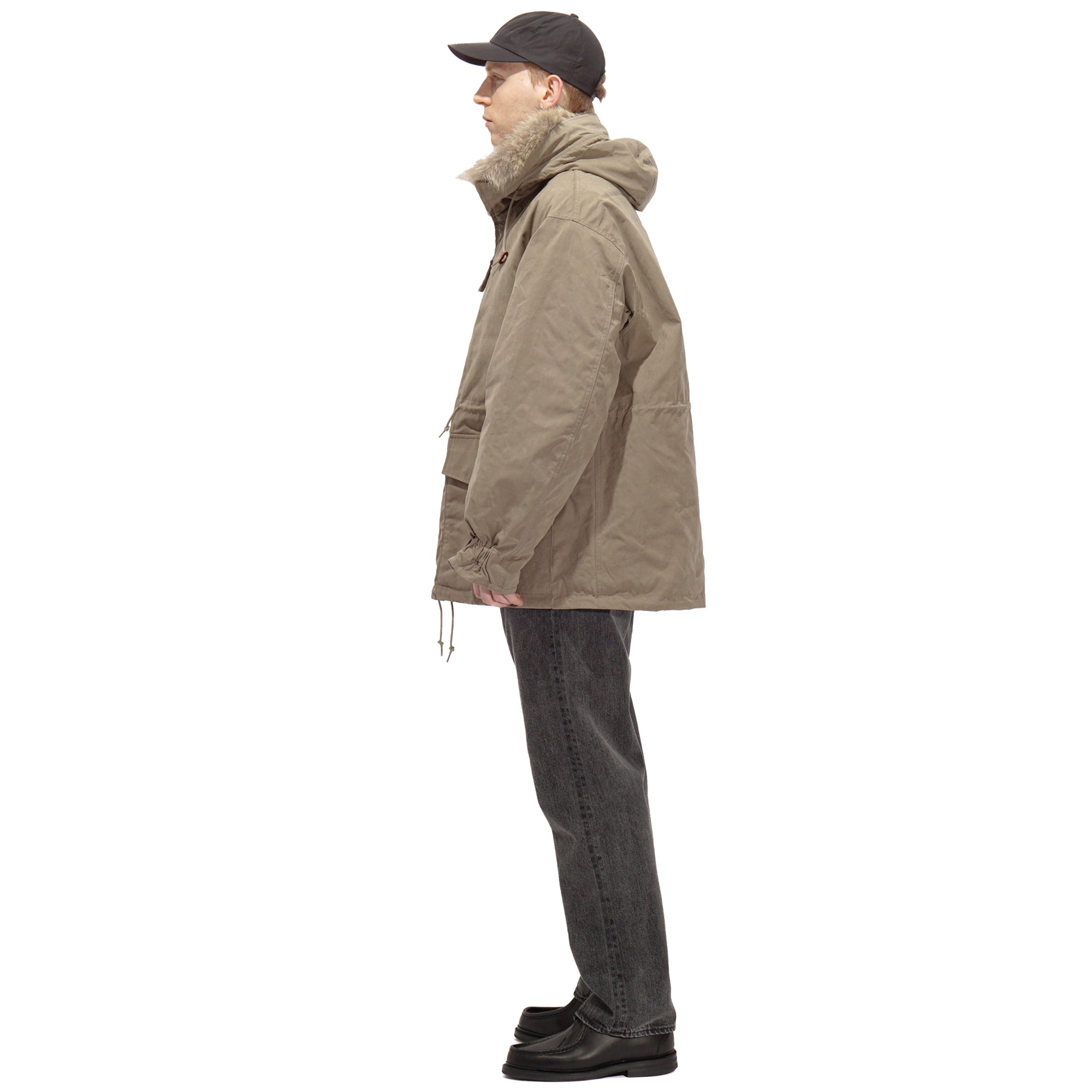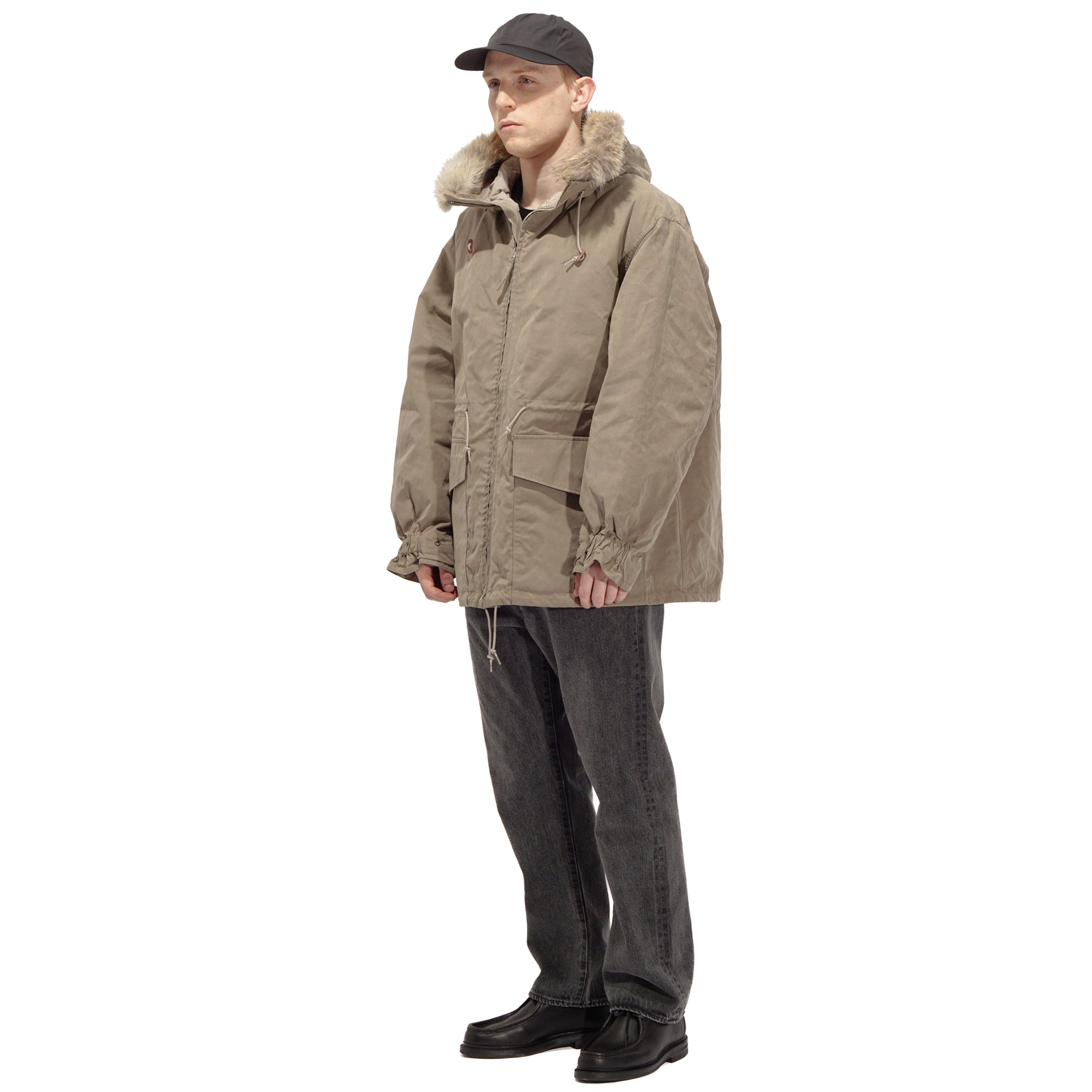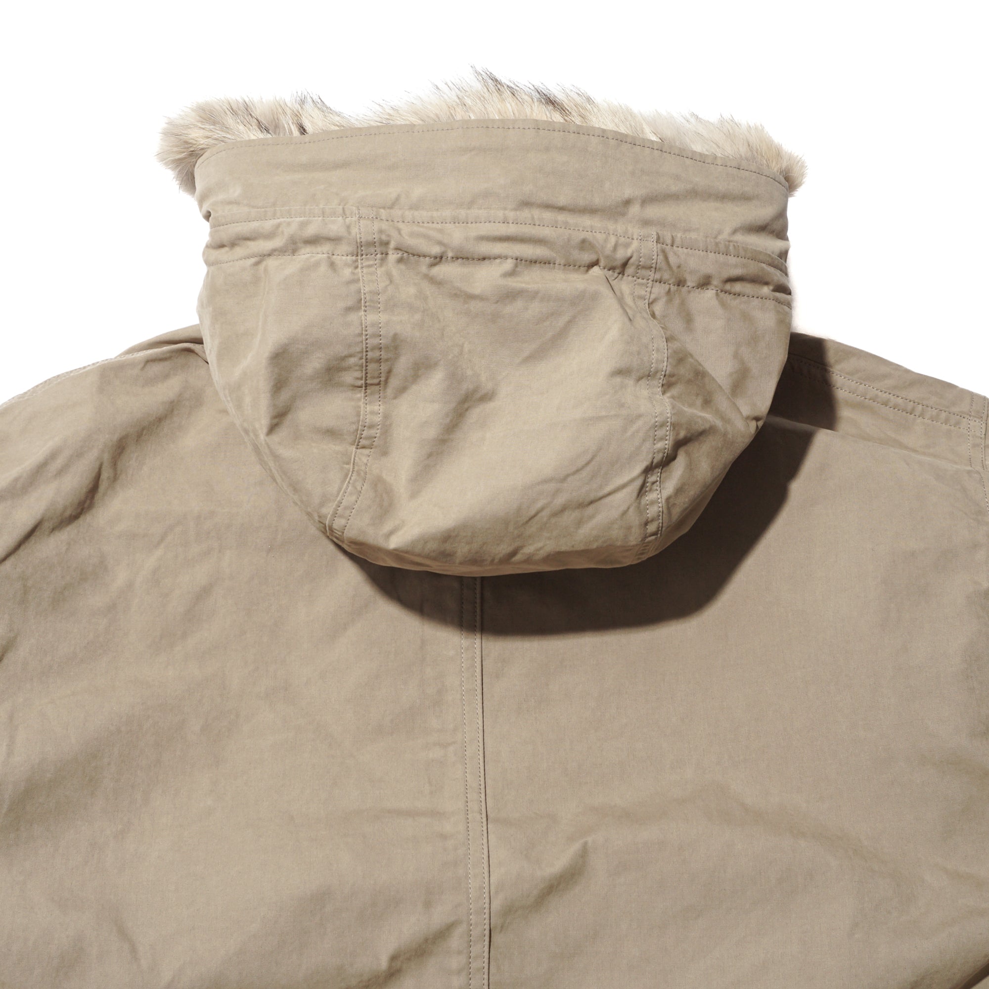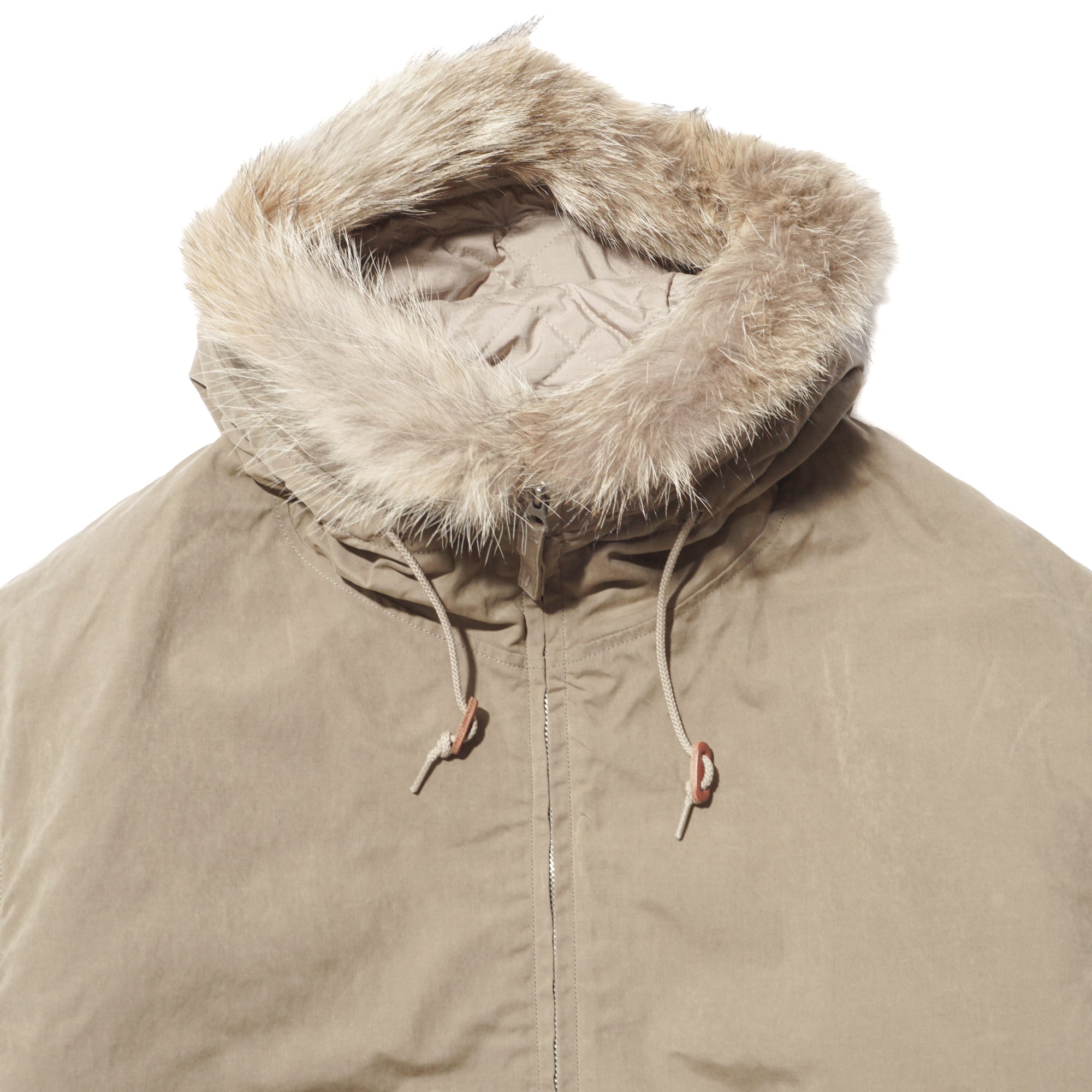 - This is a great example of Neo-Classic style—looks like a traditional parka, but way more wearable. It’s surprisingly lightweight, so you can layer it easily and still stay comfortable. Crafted from imported fabric by OLMETEX—an Italian mill known for high-performance outerwear textiles—the piece features a distinctive wax-like material woven from three different yarns. OLMETEX fabrics frequently incorporate advanced weaving techniques, water-repellent treatments. This piece reinterprets the Phigvel's “ANTARCTIC RESEARCH” concept, inspired by vintage expedition gear and scientific cold-weather uniforms. The hood is trimmed with removable coyote fur, and the interior is finished with a lightweight quilted lining filled with thin padding for added warmth.