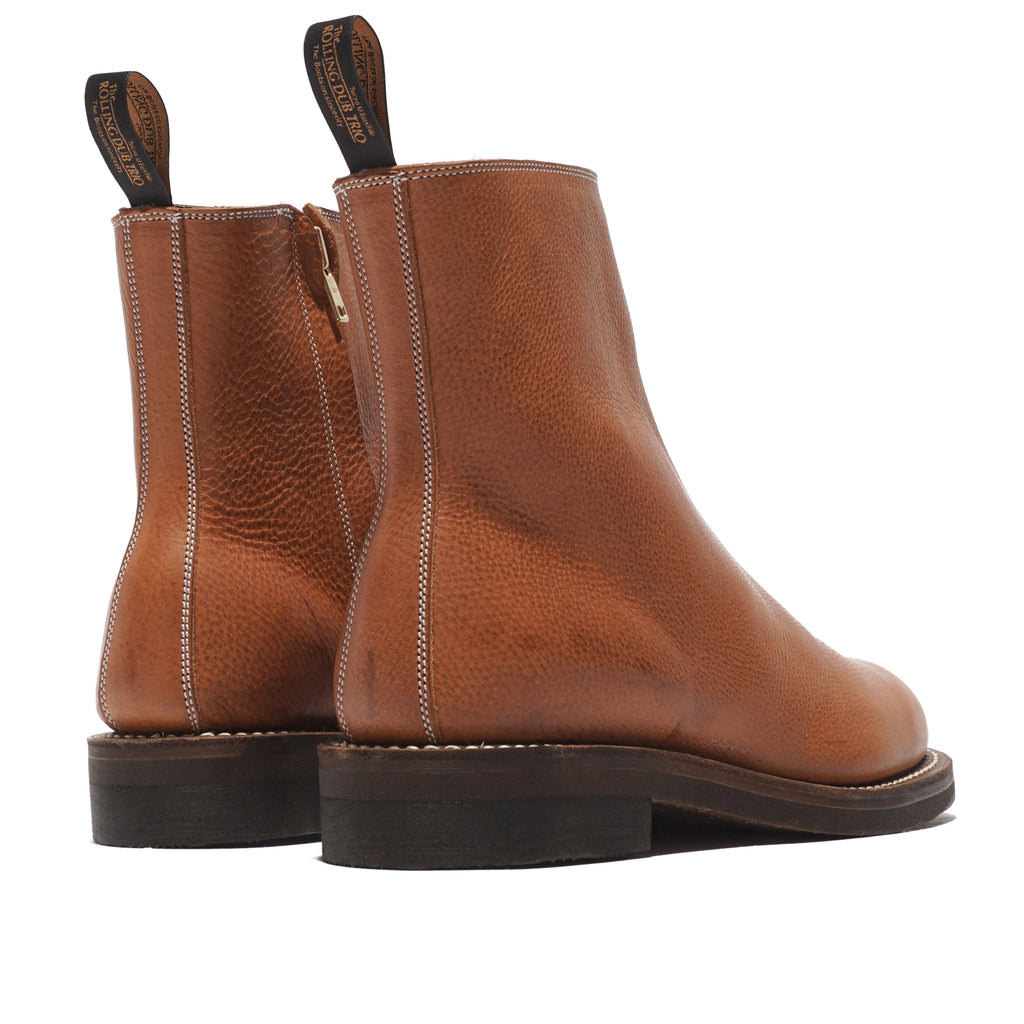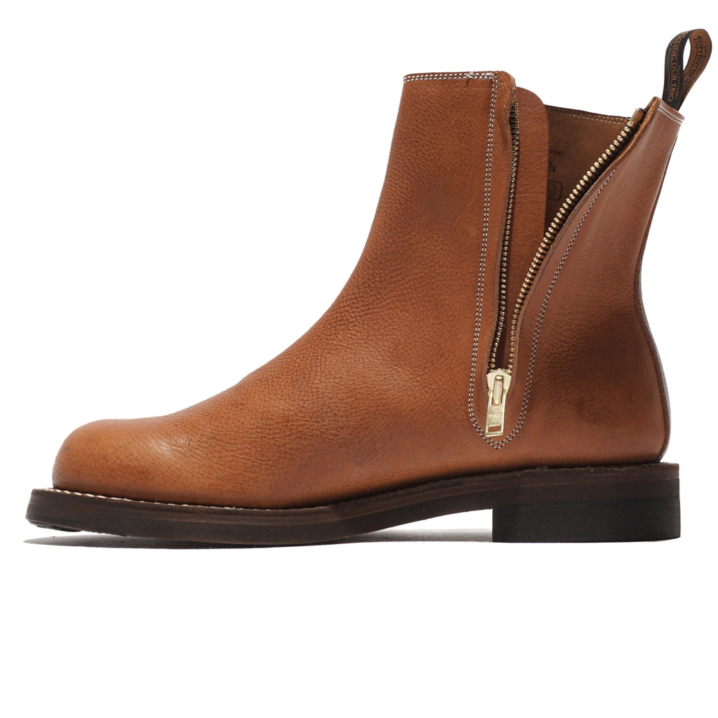 - A side-zip boot that demands exceptional craftsmanship, as the entire upper is cut from a single, seamless piece of leather. Only the most advanced crimping and lasting techniques can shape it correctly — and that one-piece pattern is what creates the signature wave-like creasing from instep to fore-ankle as it ages. This rendition is built in Italian core-through vacchetta bucket leather — thicker, more textured, and more silver-side scratch-resistant than Chromexcel — developing rich depth and nuance that’s unique to each pair, with natural left/right wrinkle variation being an inherent characteristic rather than a flaw.