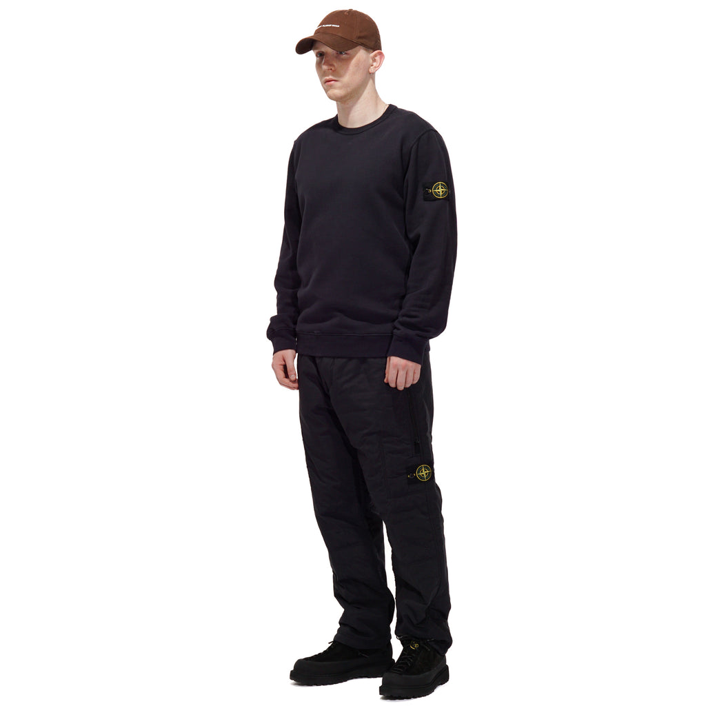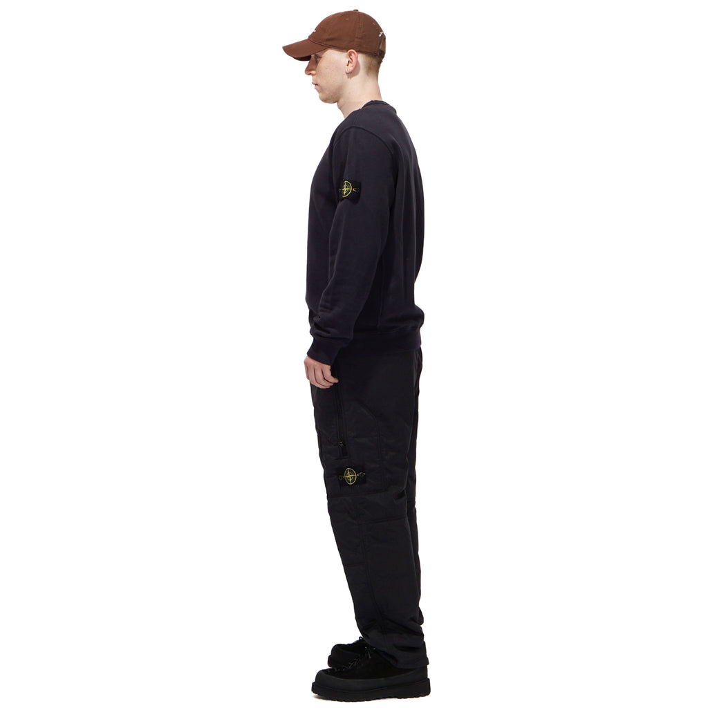 - A regular fit crewneck sweatshirt in brushed organic cotton fleece featuring ribbed triangular inserts at the shoulders and sides. The sweatshirt is finished with garment dyed.