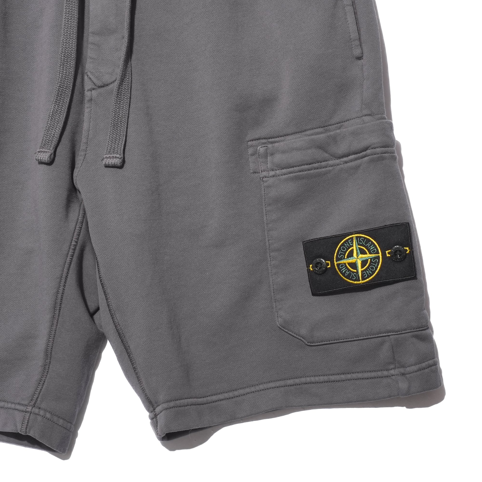 - Regular fit Bermuda shorts crafted from garment-dyed organic cotton fleece. Designed with standing hand pockets, a back pocket with fixed flap and hidden snap, and a patch pocket on the left leg with concealed zip and Stone Island badge. Finished with overlock seams, an elasticated waistband with drawstring, and a zip fly.