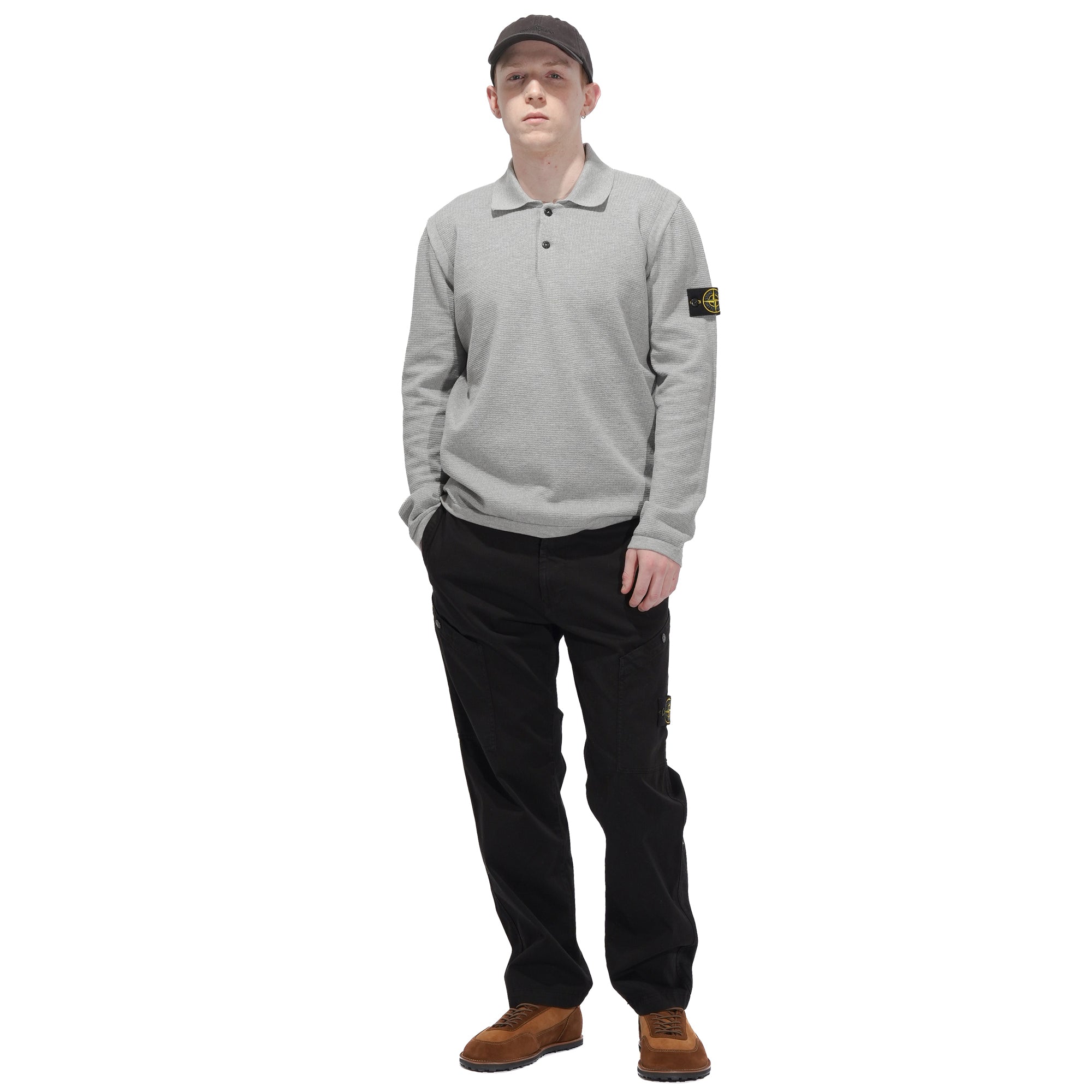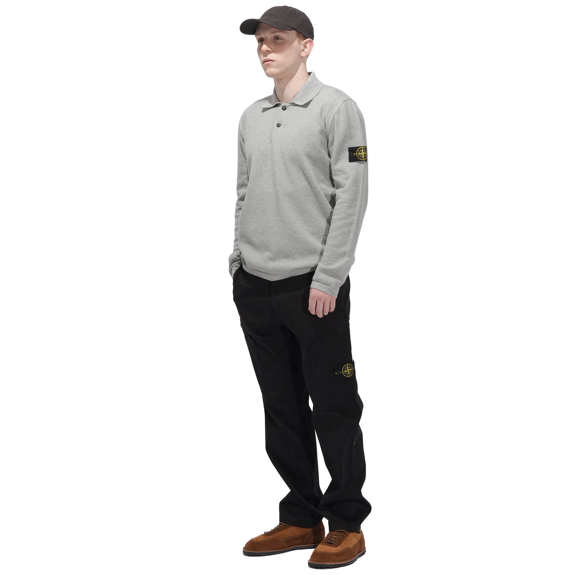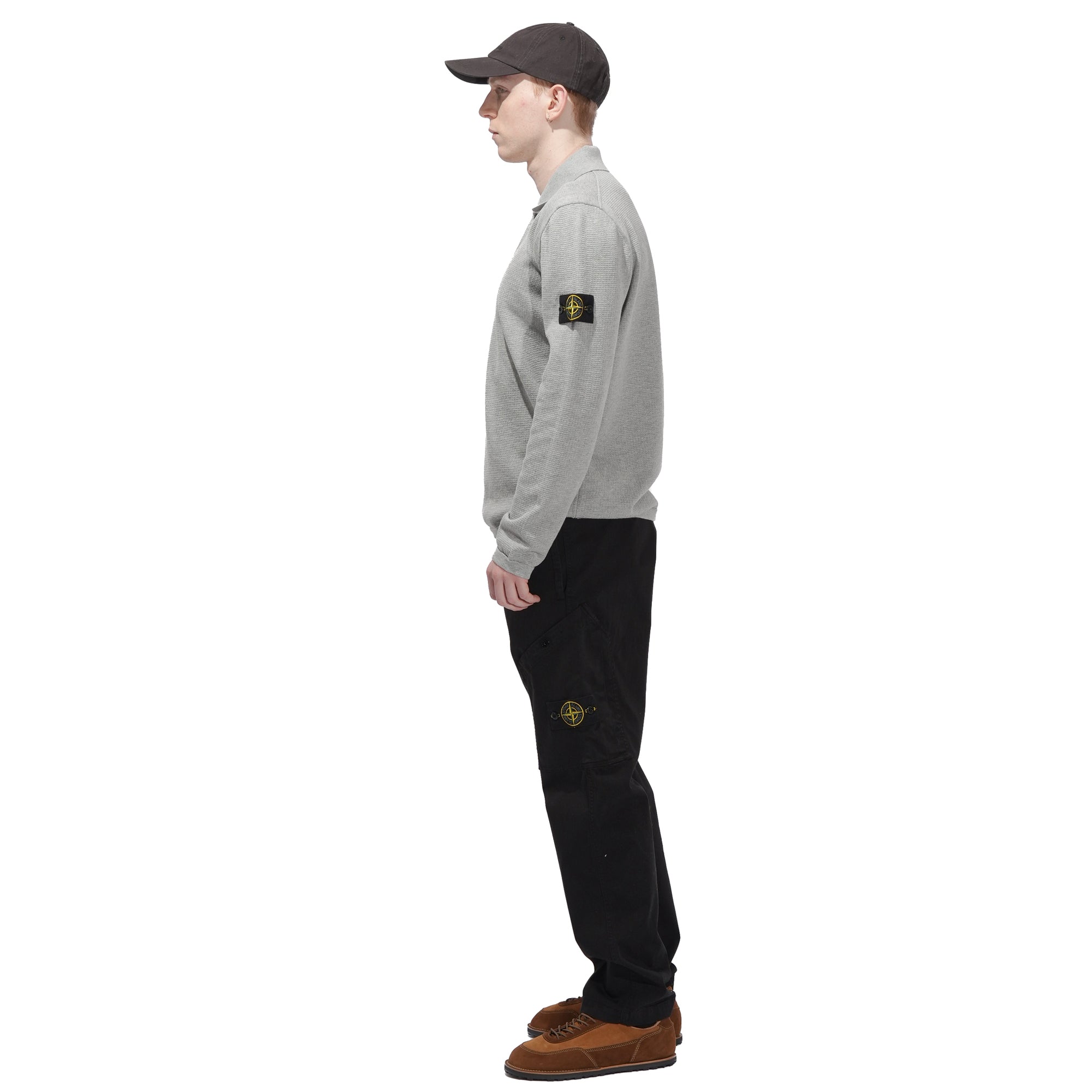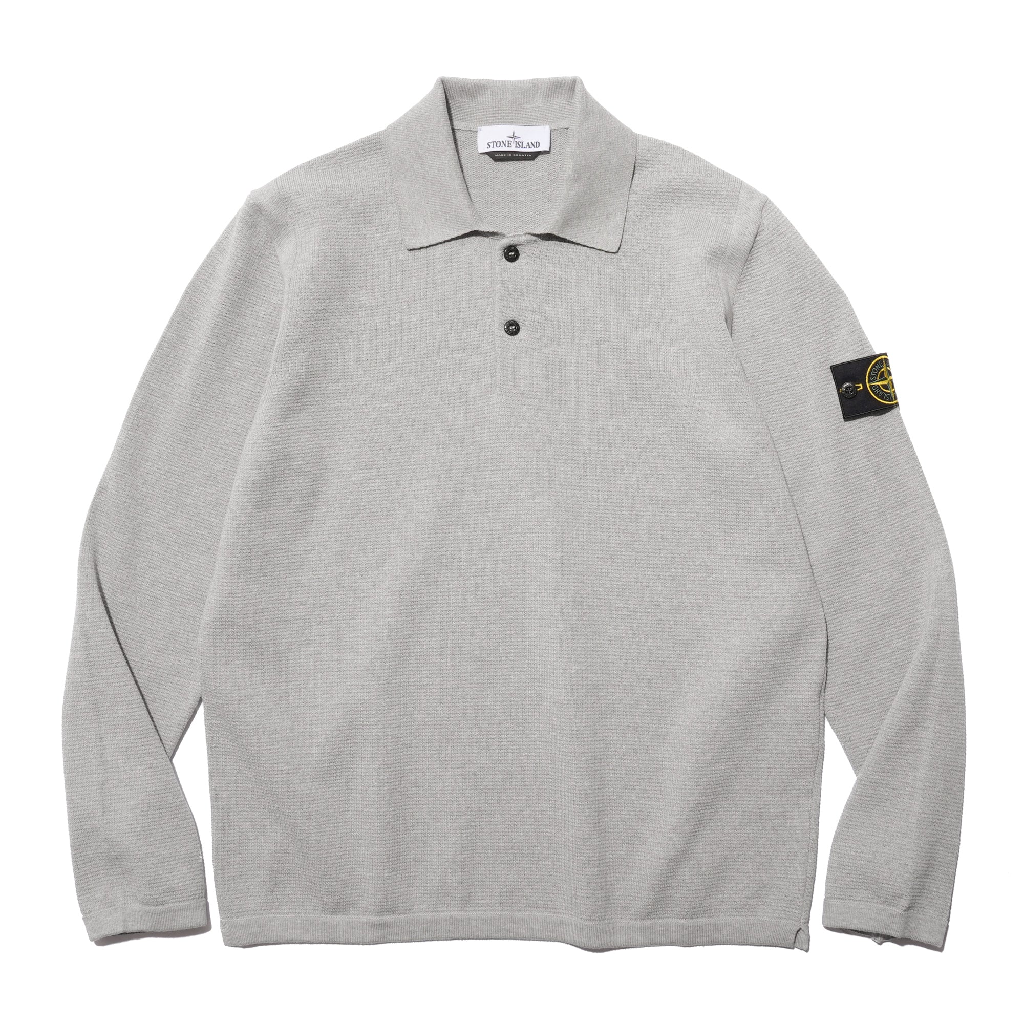 - Knitted in micro-stitch soft organic cotton for a smooth, lightweight feel. Designed in a fine gauge 14 knit, it features a ribbed collar with a two-button fastening and ribbed cuffs and hem for subtle structure. Contrast-knit bands accent the armholes, while raised seam detailing across the back shoulders adds depth to the design. Finished with raglan sleeves on the back and the Stone Island badge on the left sleeve, the piece balances refined knitwear construction with a relaxed silhouette.