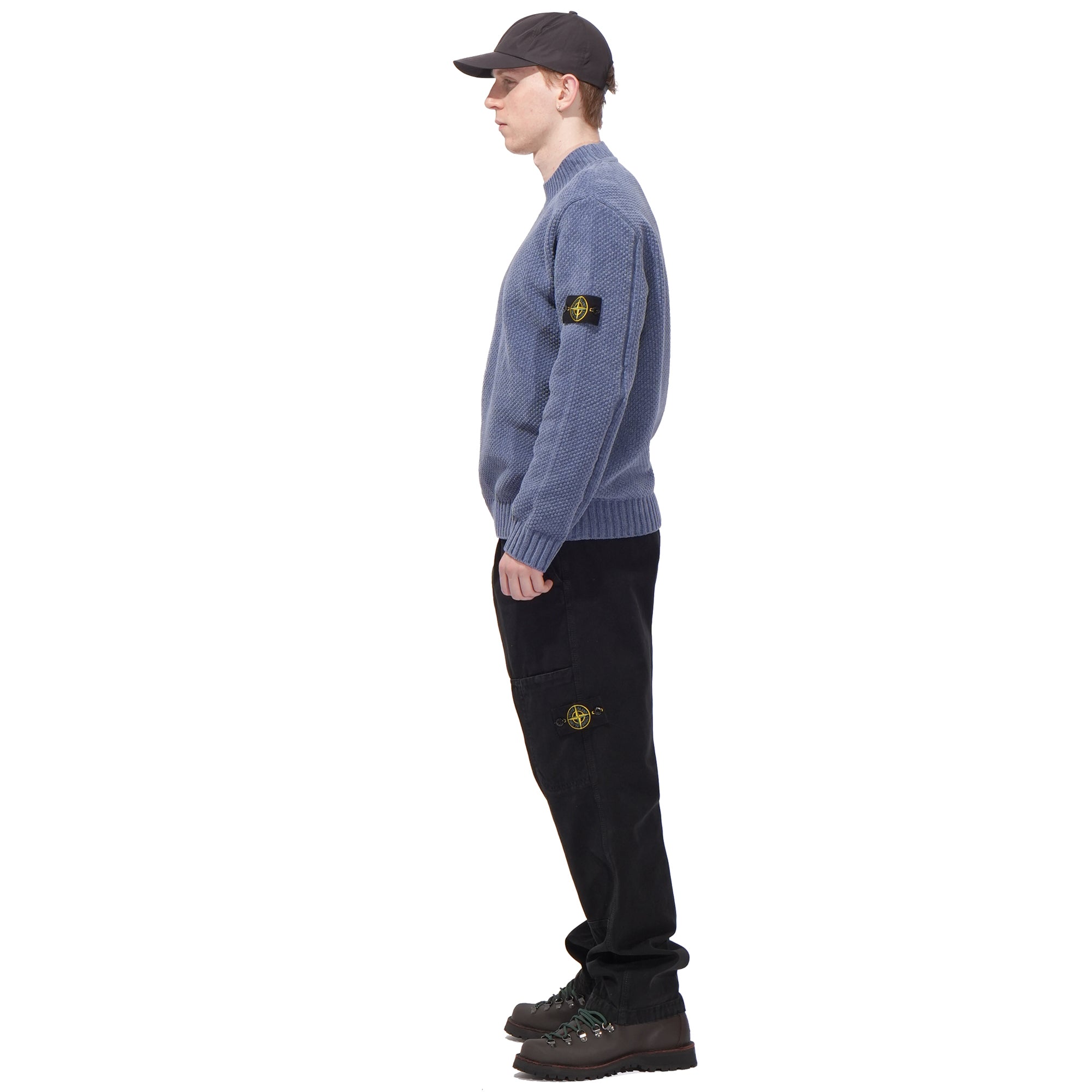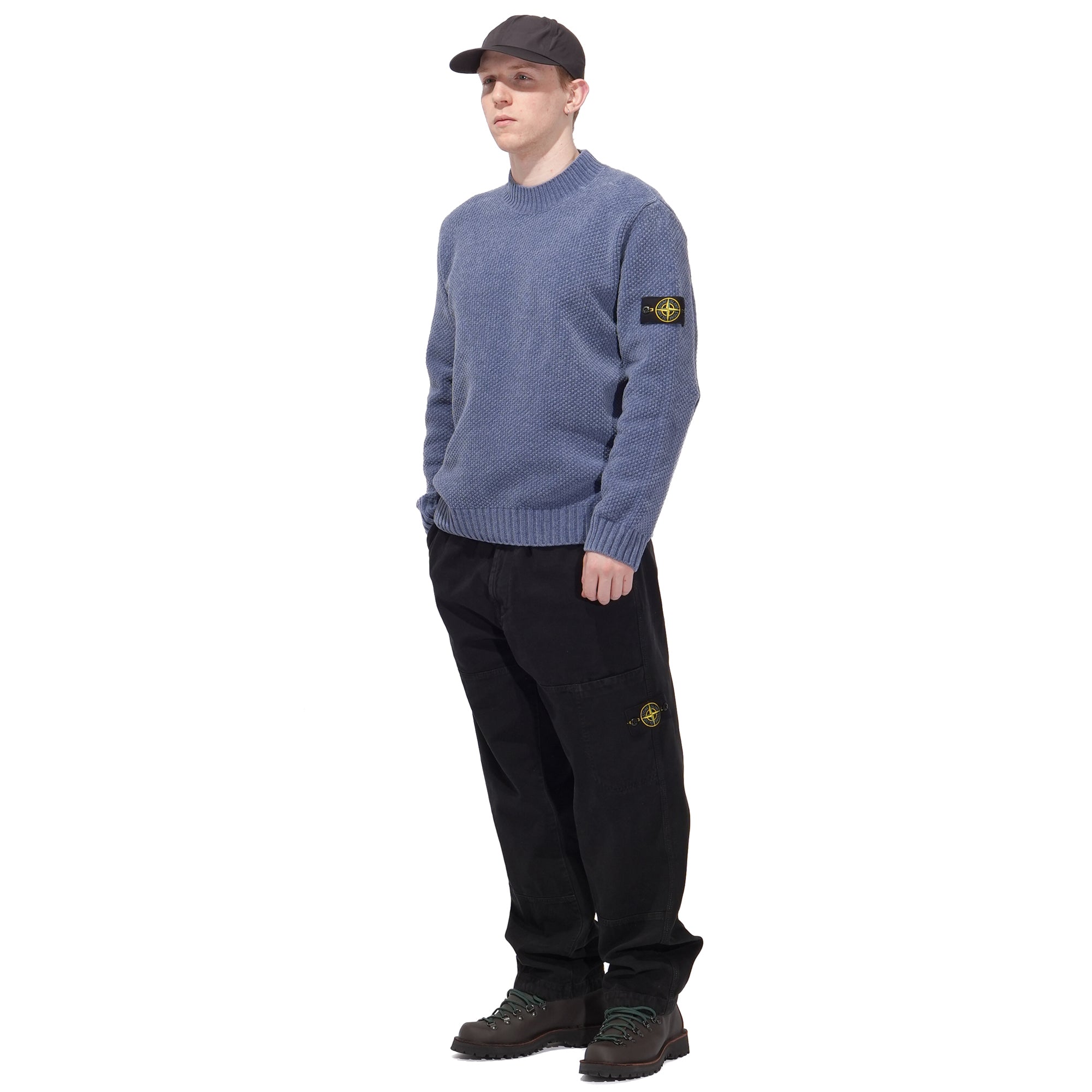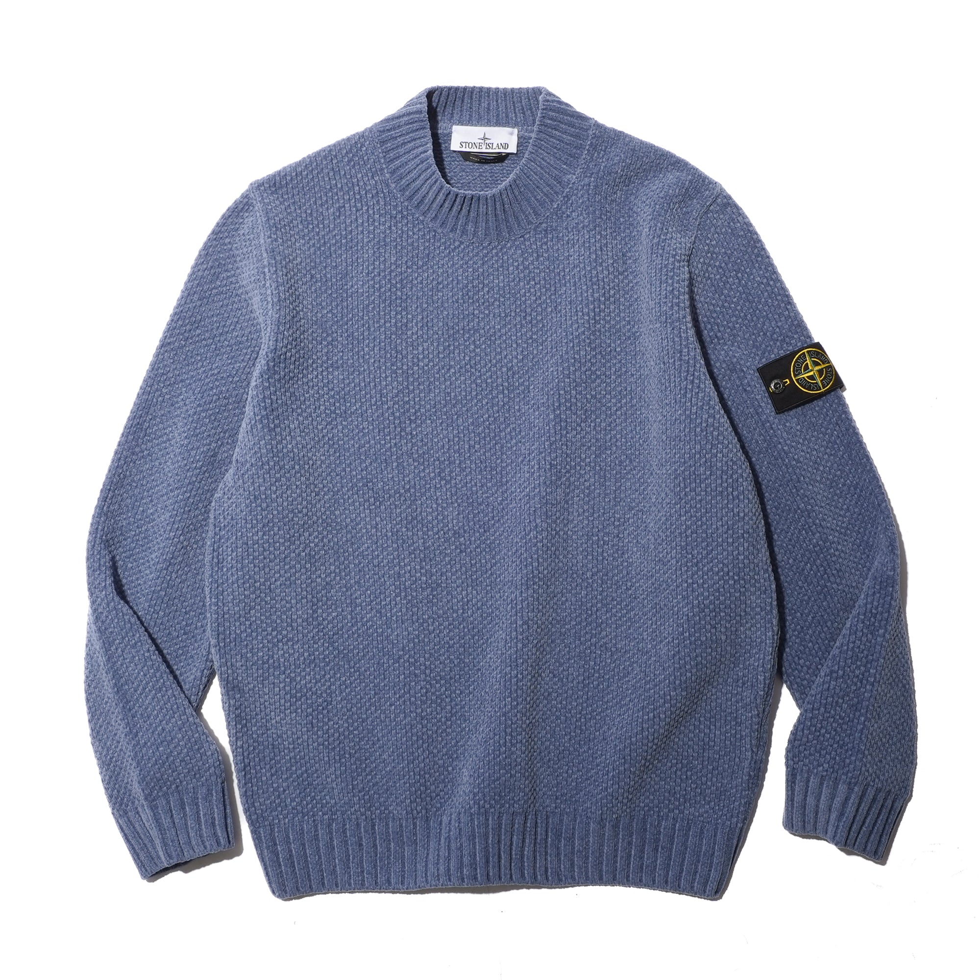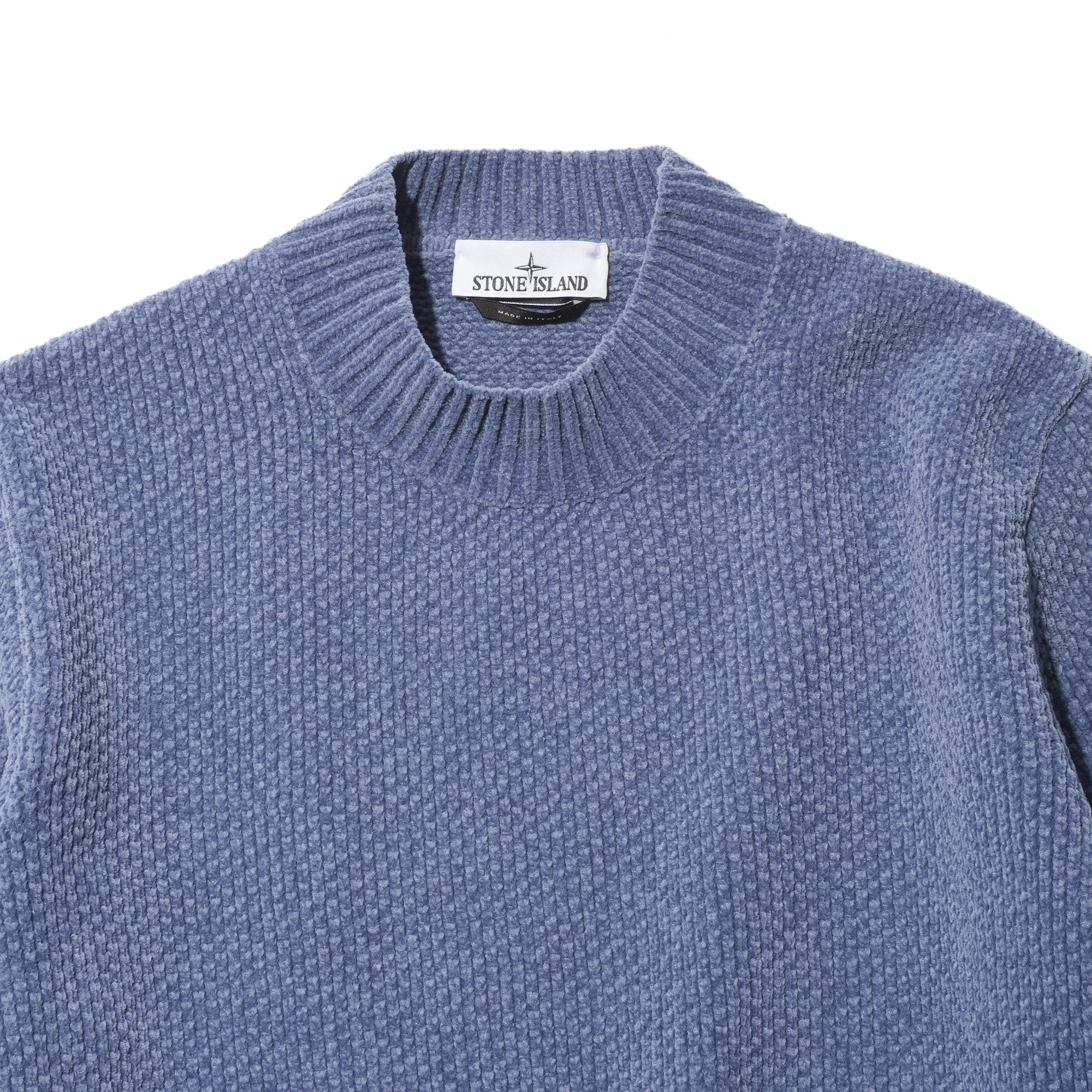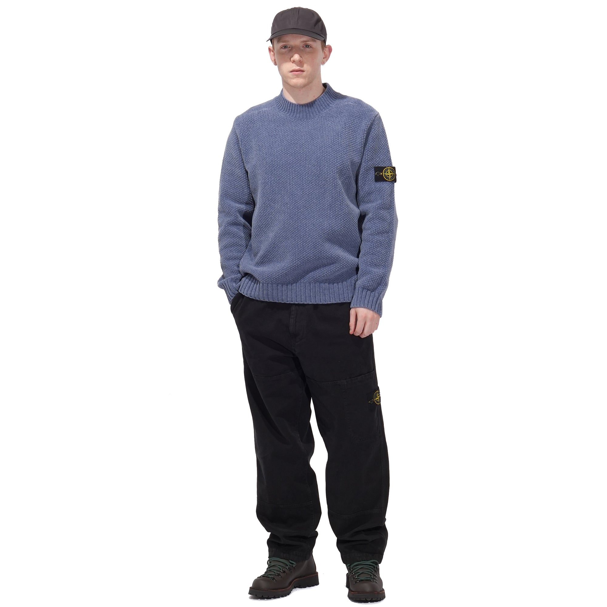 - A relaxed fit mock neck jumper in cotton chenille, knitted in a moss stitch texture. Designed with a ribbed mock neckline, cuffs, and hem. Gauge 5 construction. Finished with the Stone Island badge on the left sleeve.