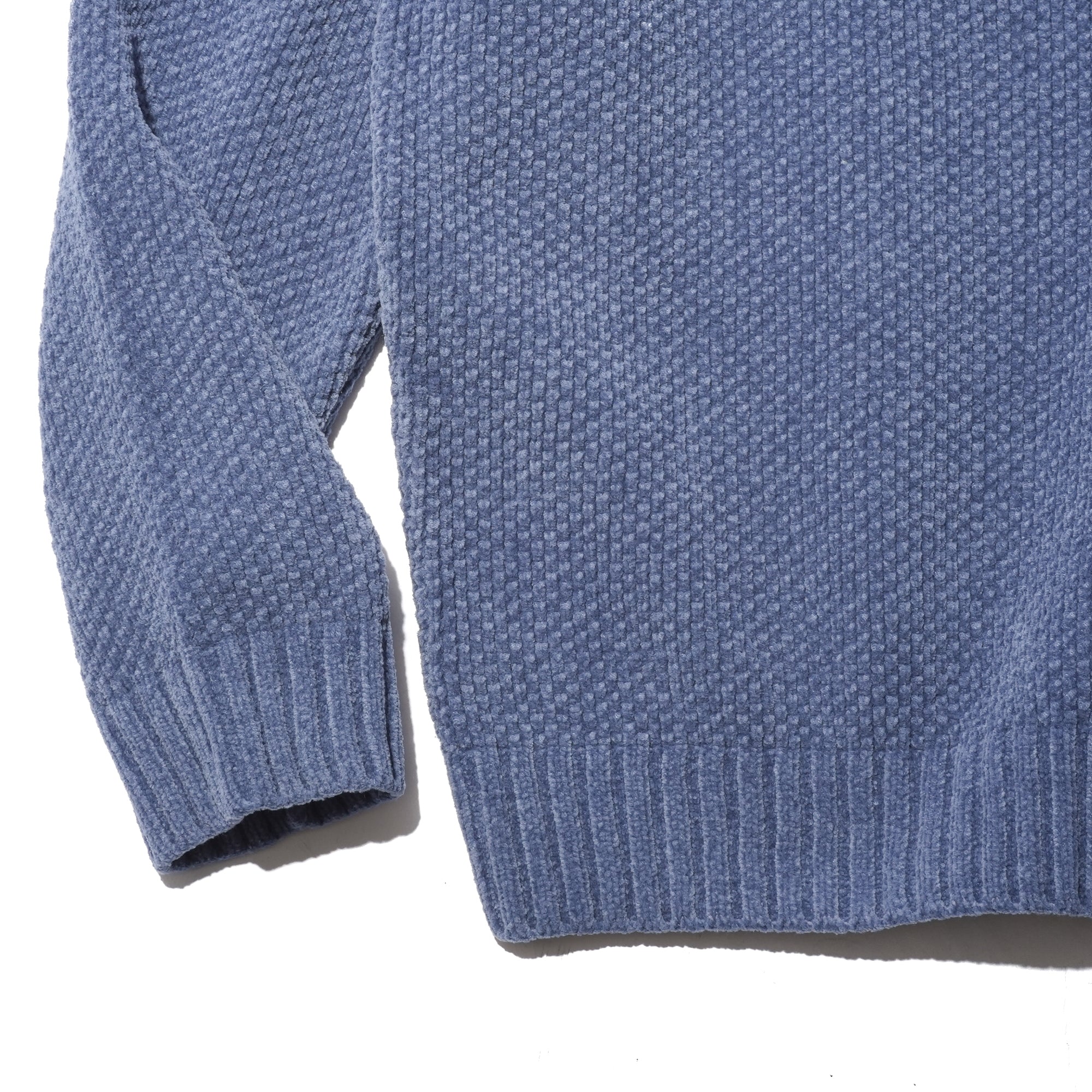 MOSS STITCH COTTON CHENILLE MOCK NECK "DARK BLUE"