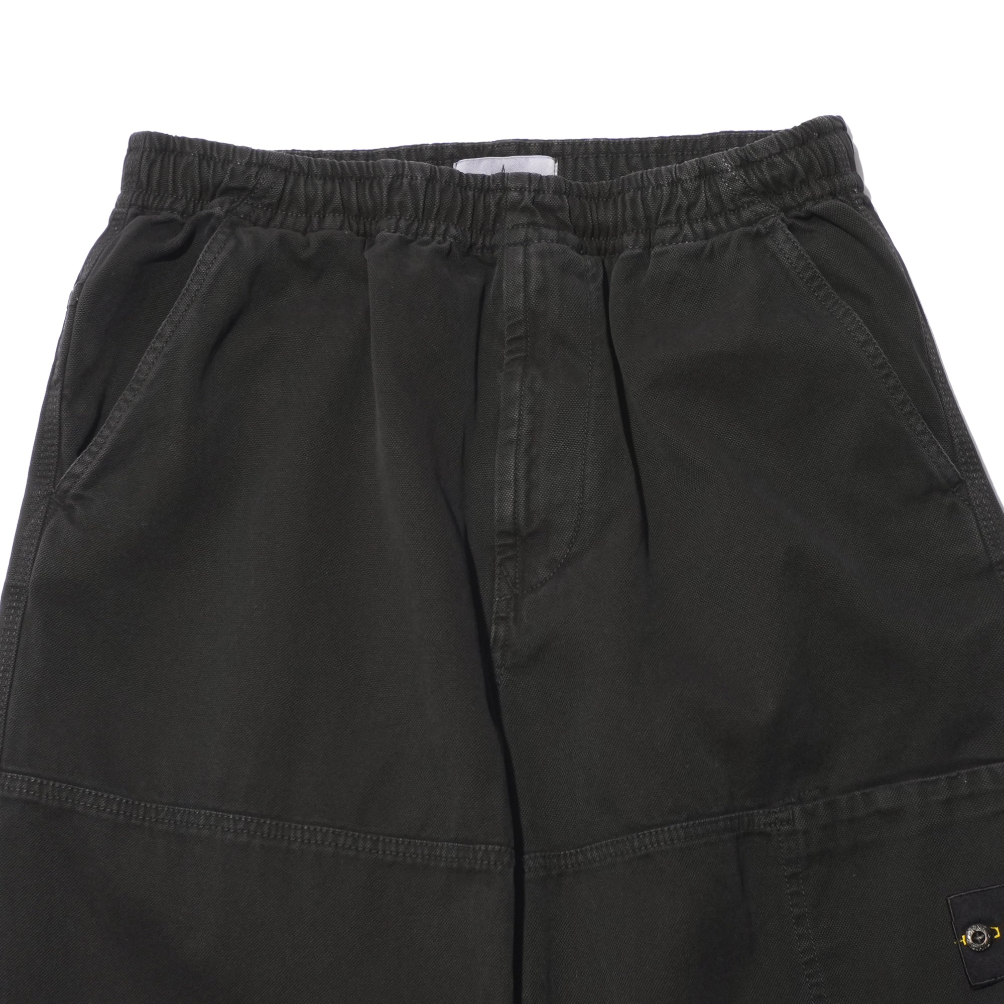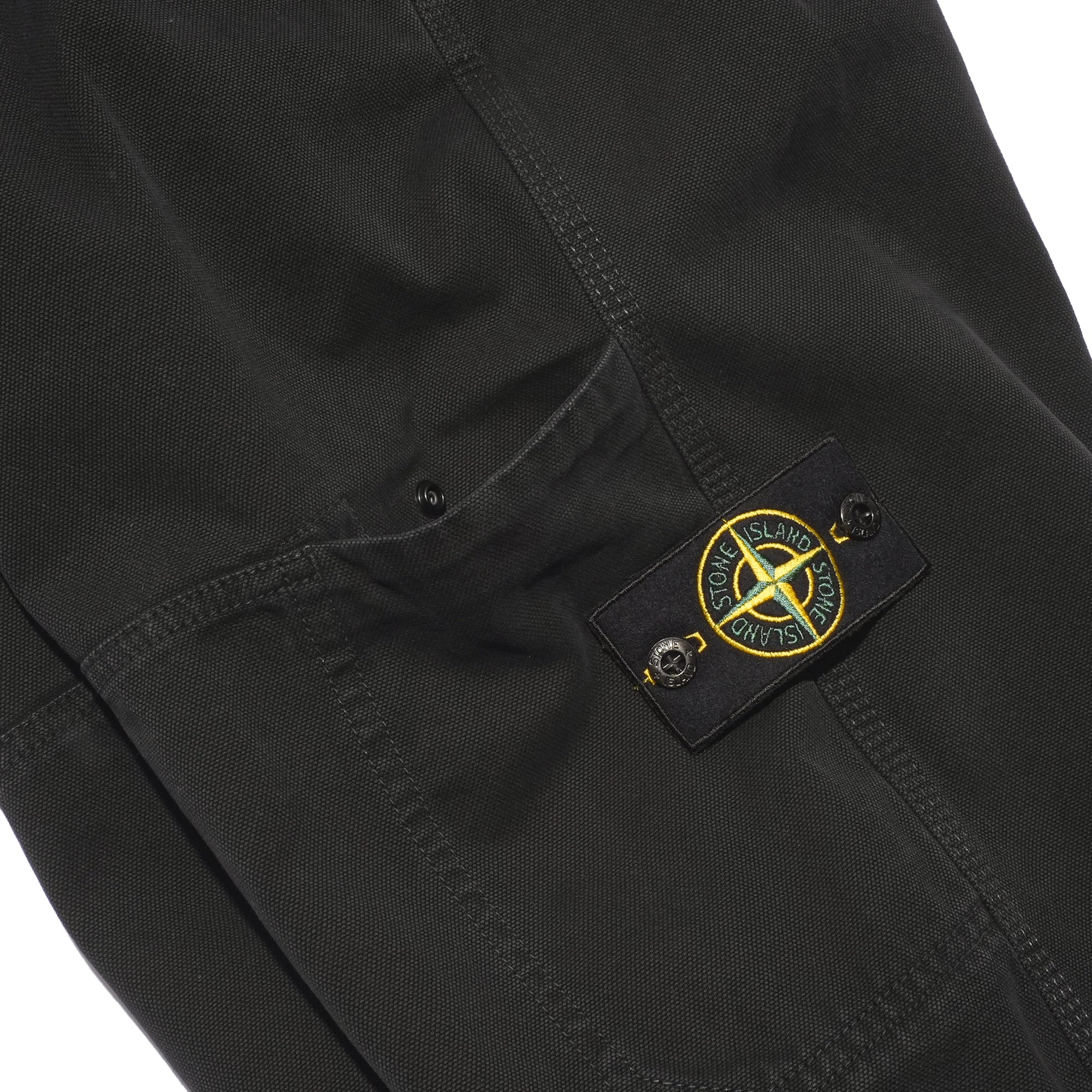 - Relaxed fit cargo trousers crafted from organic panama cotton. Garment dyed with the exclusive ‘OLD’ treatment, then faded for a subtly worn, three-dimensional look. Designed with a panelled construction, angled hand pockets, and a cargo pocket on the front left leg with concealed snap closure, plus a back snap pocket. Finished with the Stone Island badge on the left leg, internal drawstring cuffs, an elasticated waistband with internal drawstring, and a zip fly.