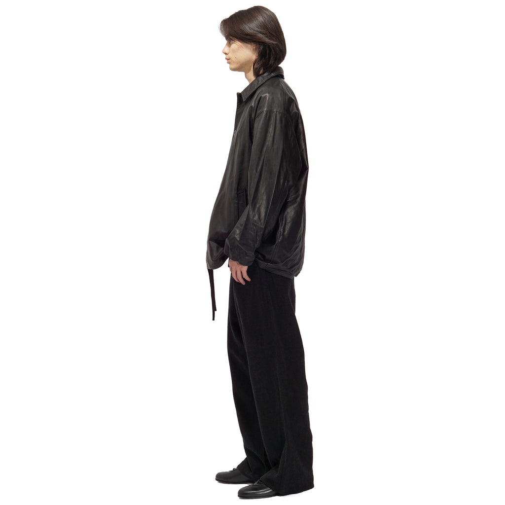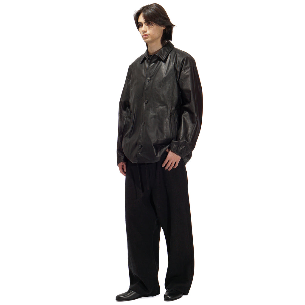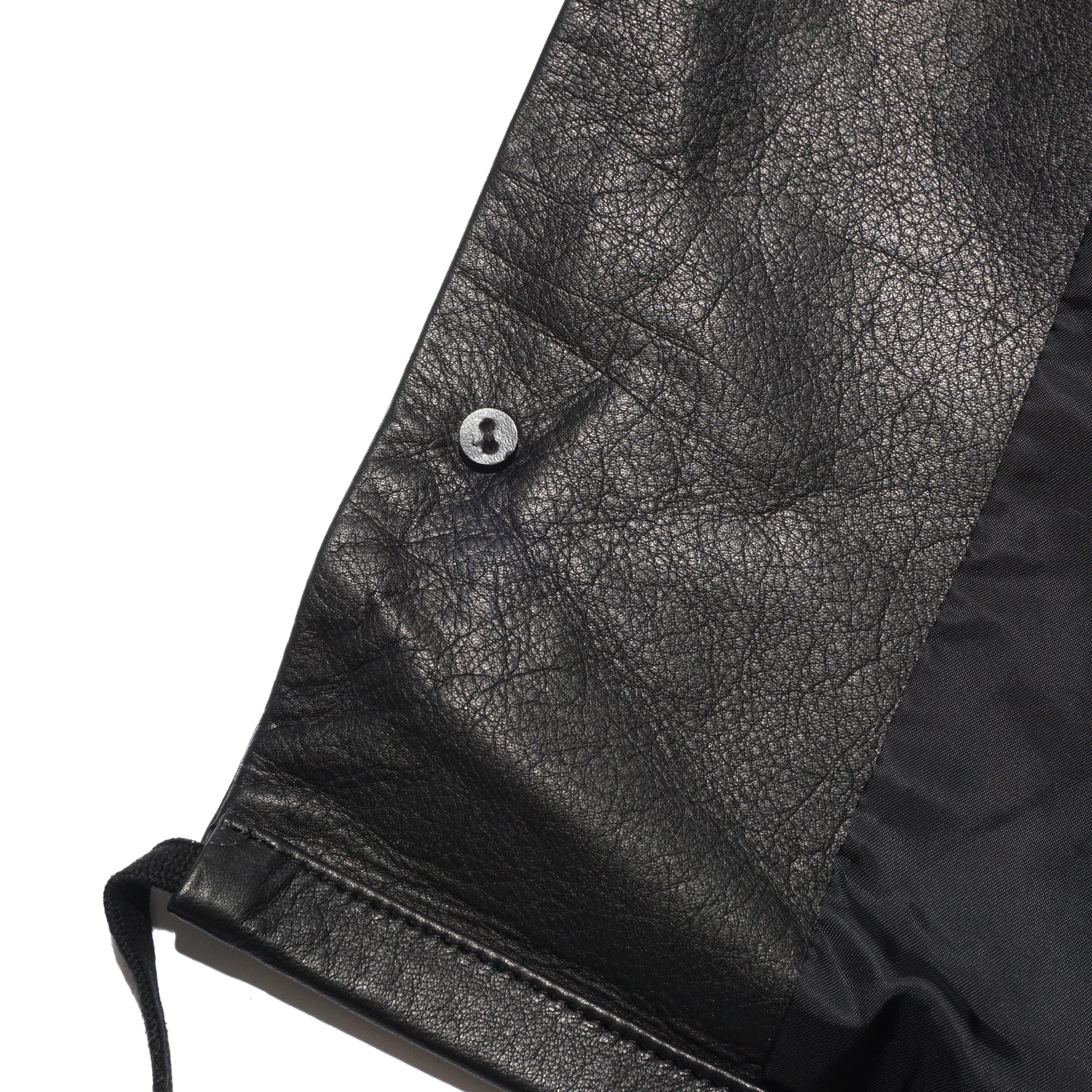 - The jacket is crafted from Japanese full‑grain cowhide leather, produced via the prestigious “Kawanishi Tanneries” tanning method (water‑washing, lime‑soaking, de‑ashing, double dyeing & fattening) which results in rich colour, soft hand‑feel, and depth of finish. Because the leather is minimally surface‑finished (little top‑coating or “blow‑finish”), the texture of the hide—the grain, marks, variations—is intentionally preserved, giving the jacket character that deepens over time with wear. The lining is 100% cupro, offering a smooth, high‑quality interior finish. The overall result is a premium piece meant to age, patina and become personalised by the wearer.