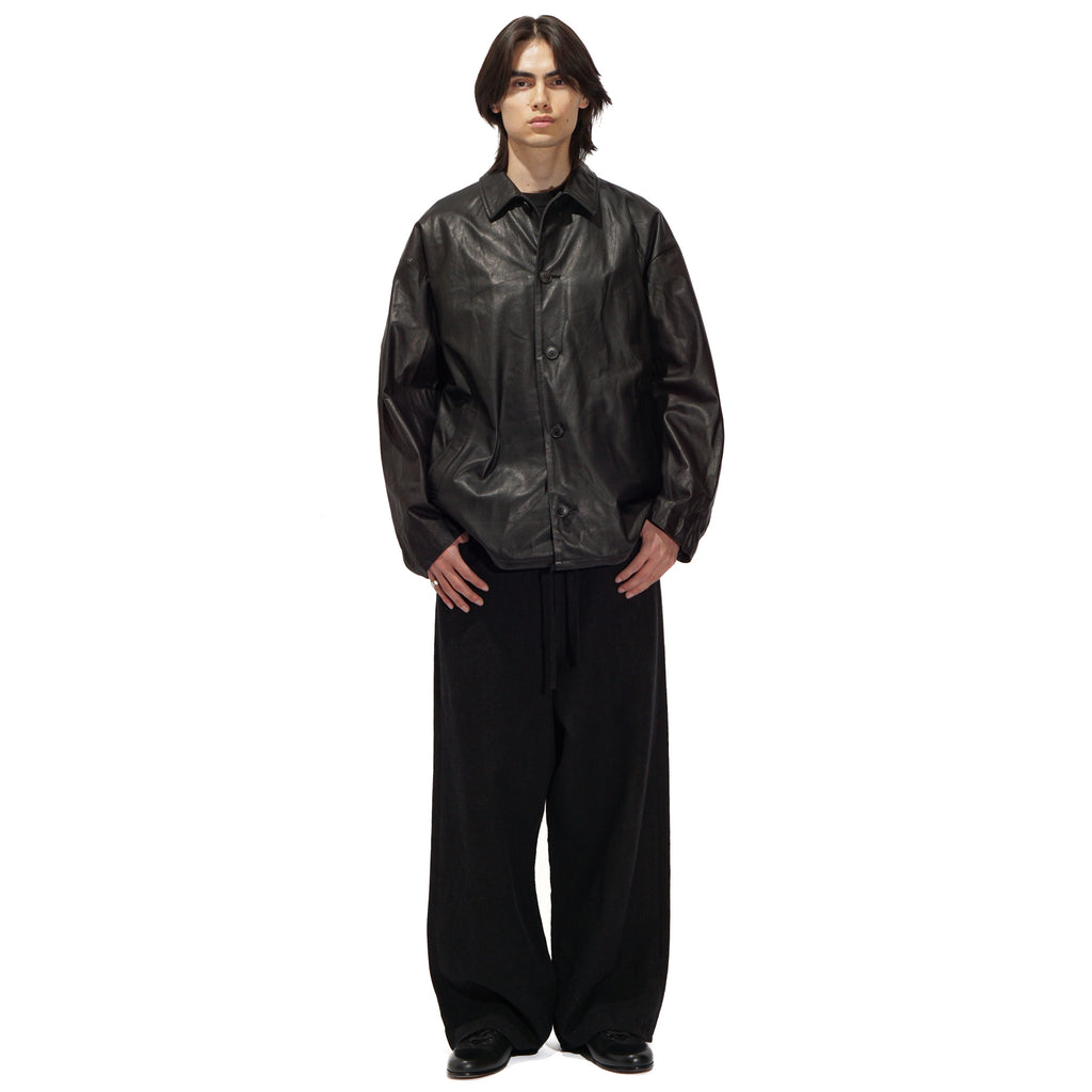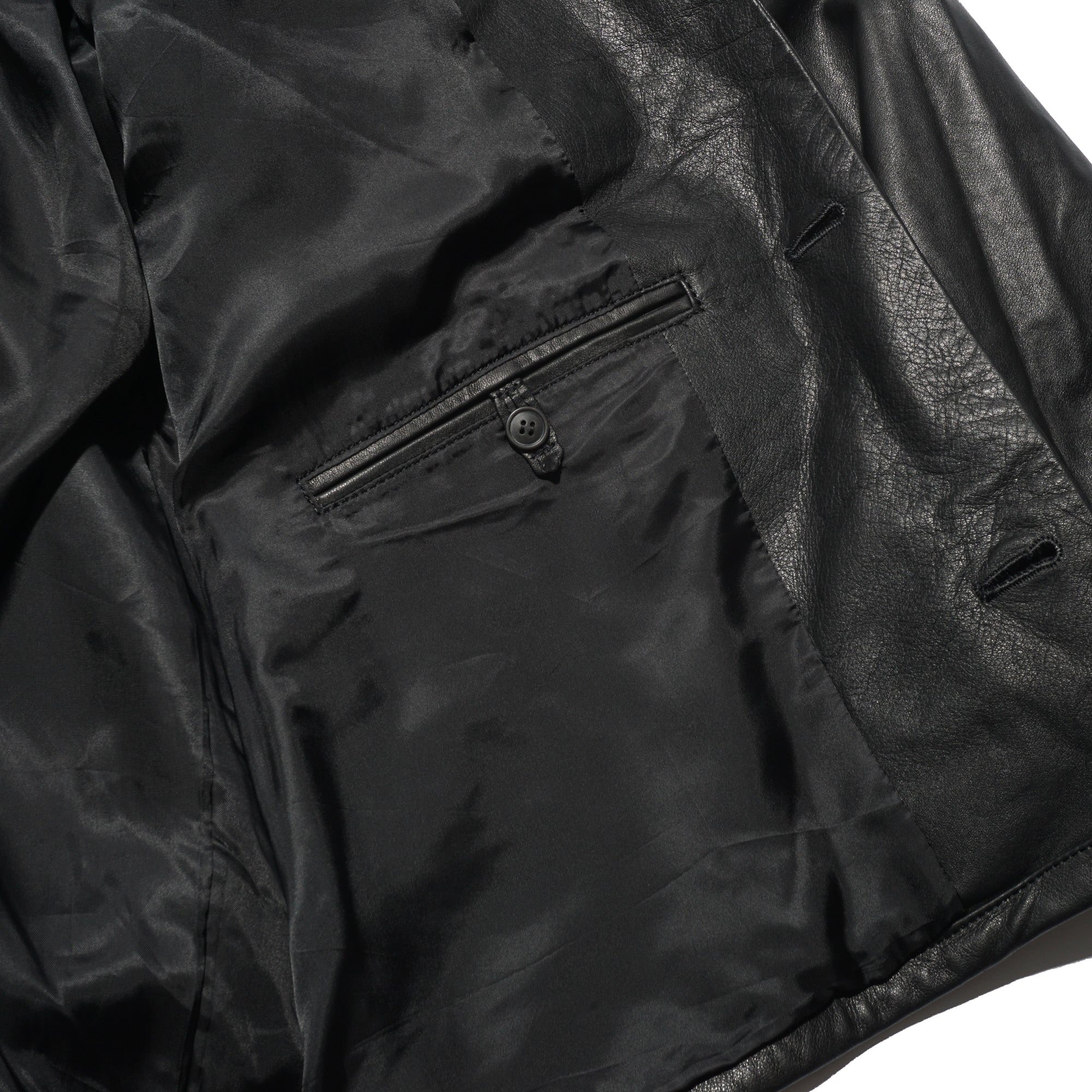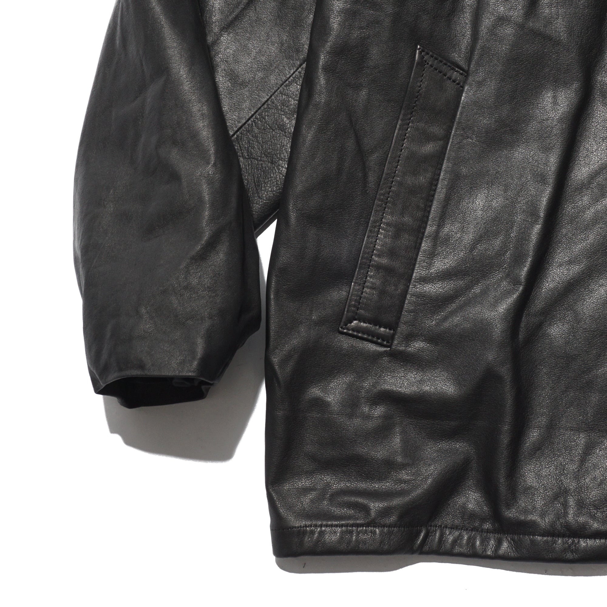 - The jacket is crafted from Japanese full‑grain cowhide leather, produced via the prestigious “Kawanishi Tanneries” tanning method (water‑washing, lime‑soaking, de‑ashing, double dyeing & fattening) which results in rich colour, soft hand‑feel, and depth of finish. Because the leather is minimally surface‑finished (little top‑coating or “blow‑finish”), the texture of the hide—the grain, marks, variations—is intentionally preserved, giving the jacket character that deepens over time with wear. The lining is 100% cupro, offering a smooth, high‑quality interior finish. The overall result is a premium piece meant to age, patina and become personalised by the wearer.